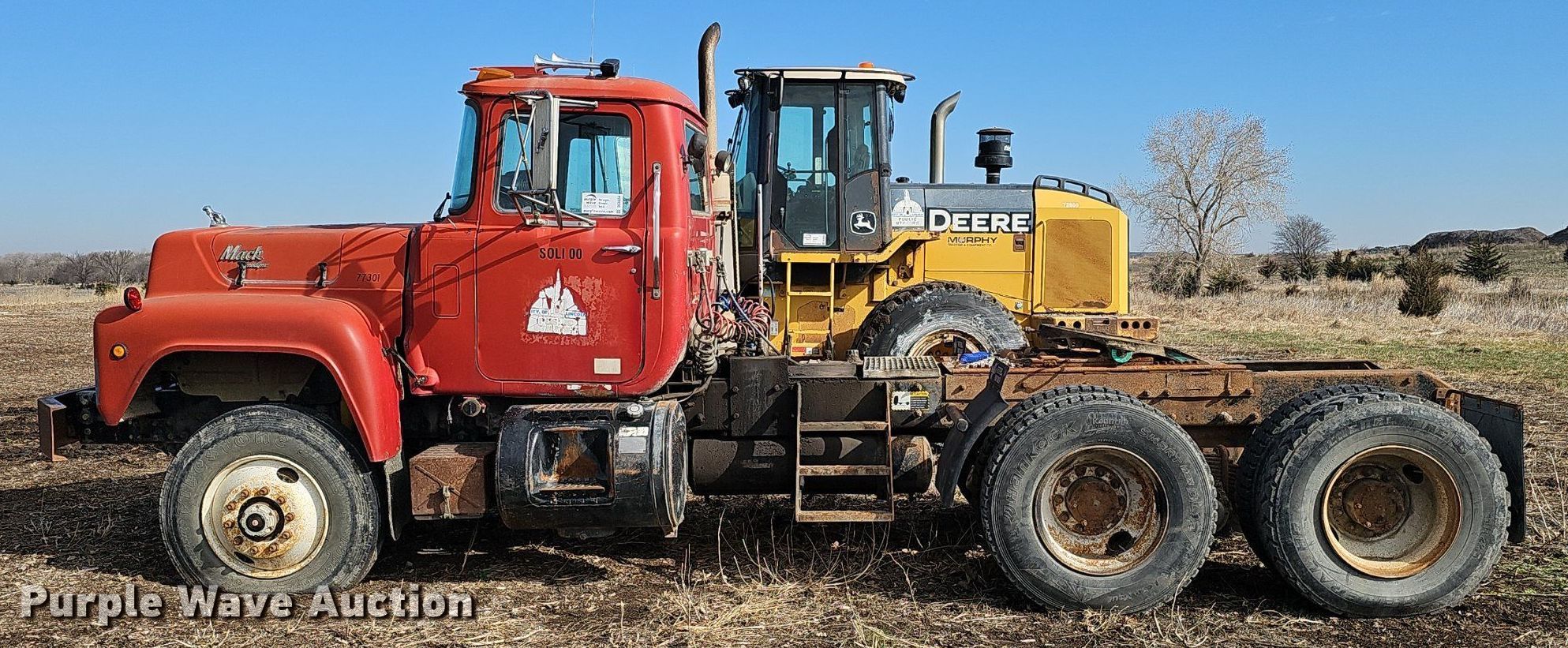 1991 Mack RD688S semi truck. Miles: 148,890 on odometer, Hours: 3,795 on meter, VIN: 1M2P141Y4MM010015. Engine Mack, Displacement: 11.0L, Cylinders: 6, Fuel type: Diesel. Transmission Automatic. Chassis Axles: Tandem, Suspension: Camelback, Brakes: Air, PTO, Wet kit, Wheelbase: 182". Interior Heat, Heated mirrors. Features Deck plate: Aluminum, Fifth wheel type: Air operated, Sliding, Fuel tank: Single. Tires Size: 11R22.5. Notes Flat tires, Non-operational engine , Non-operational unit. Nebraska title. Title distribution may be delayed up to 14 days from verification of funds. City of Lincoln Landfill. 5101 North 48th Street. Lincoln, NE 68504