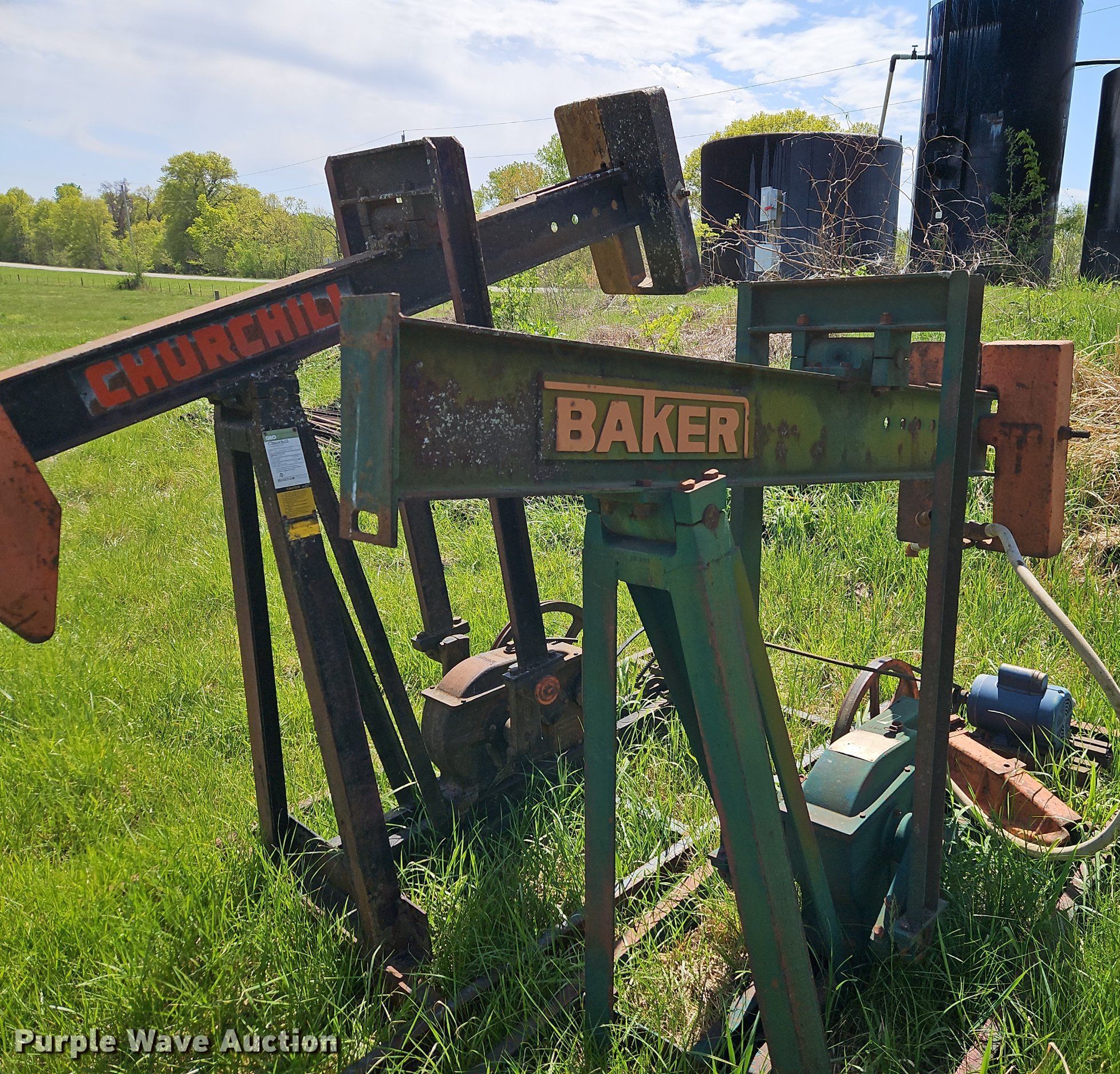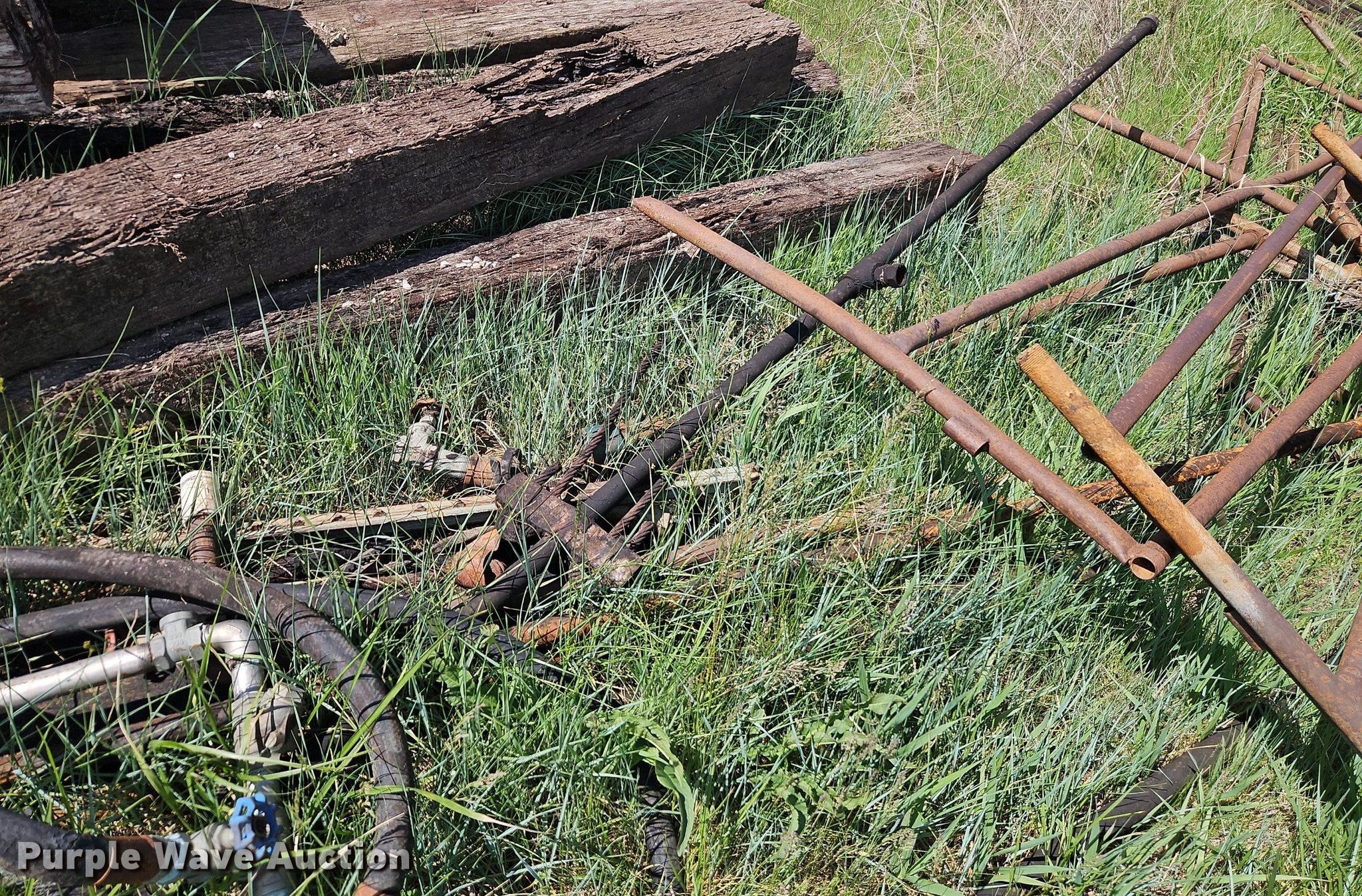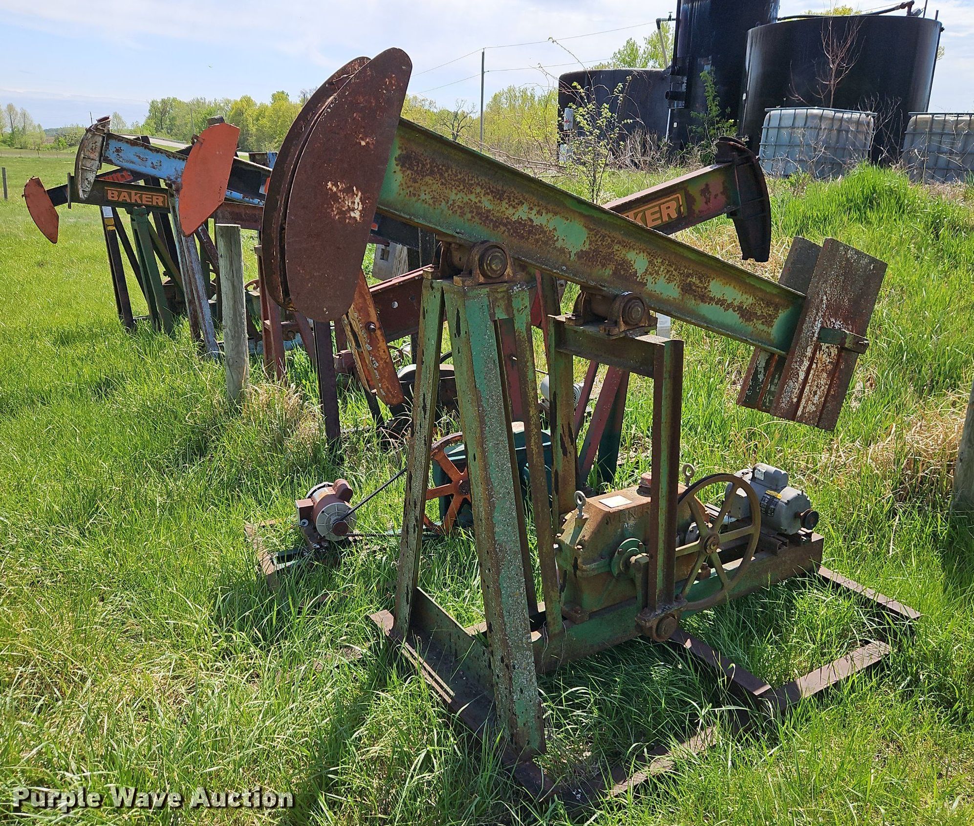 Purple Wave is selling a used Oilfield Equip. in Kansas. This item is a Oilfield equipment with the following: Approx. 21 joints of pipe, Approx. 25' L x 2" diameter, (101) joints of pipe, 25' L x 1" diameter, (7) pump jacks, (2) Churchill, (2) Baker, (11) joints of tubing, 1" diameter, (7) pumping hoses, 1" plumbing, Check valves, Ball valves, (6) railroad ties, (6) disconnects boxes, Posts, Time clocks, Electric wiring, (8) pipe panels, Approx. 8' x 4', Fiberglass tank, Capacity: Approx. 100 BBL, Gun barrel tank, 6' x 12', Capacity: Approx. 60 BBL, Steel tank, 9.5' x 8', Capacity: Approx. 100 BBL, Unit #: 2023FP3-01 - Ledford