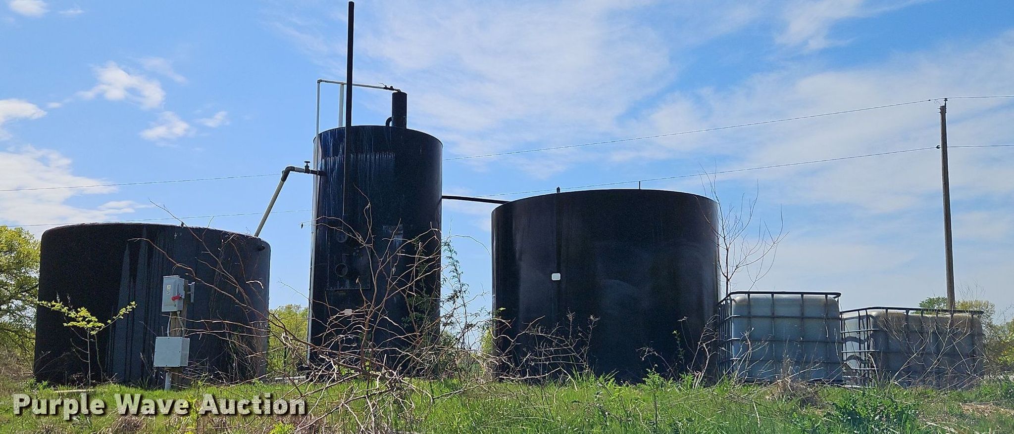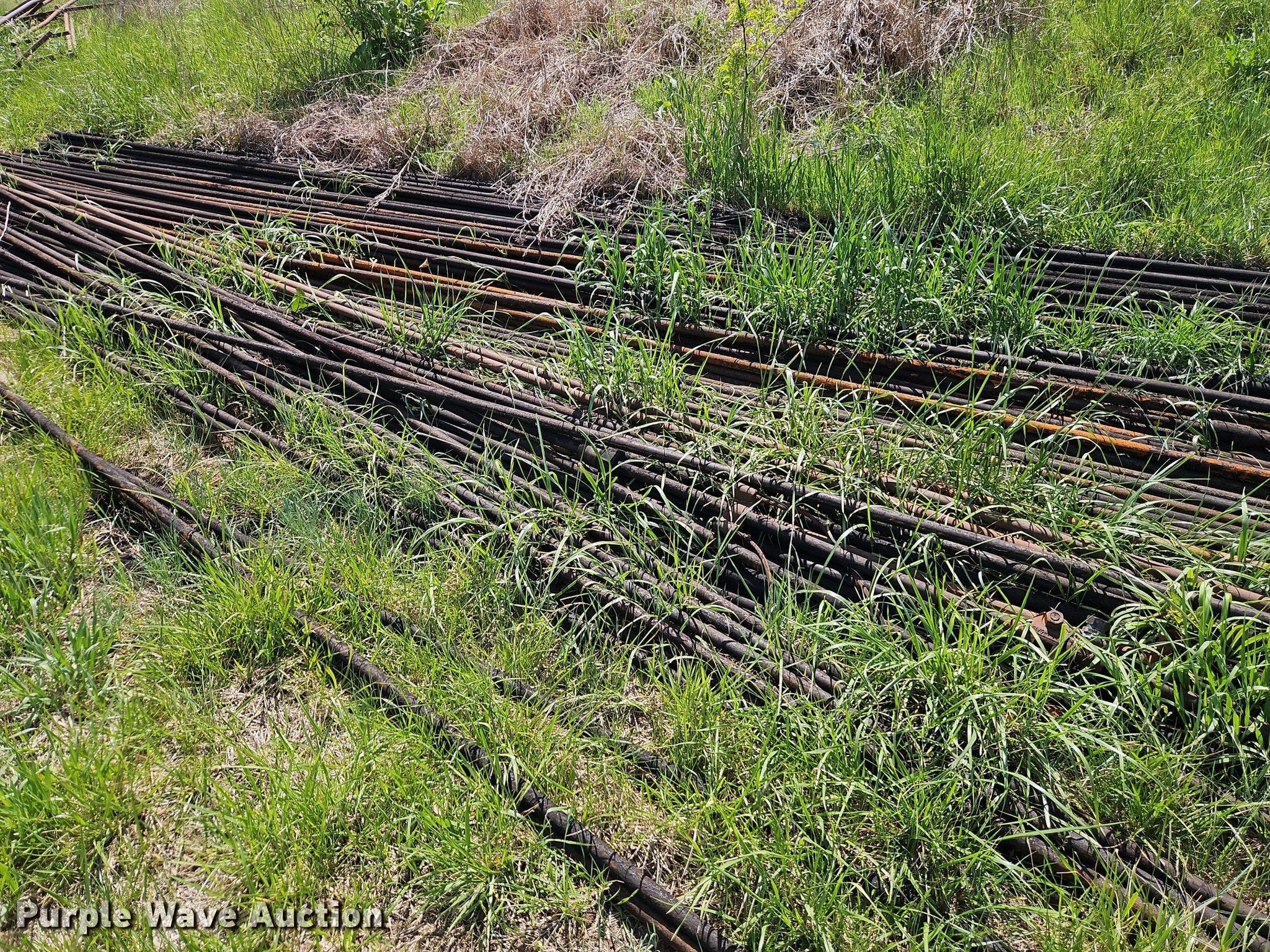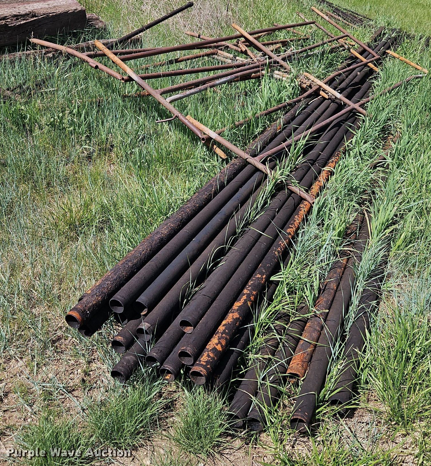 Purple Wave is selling a used Oilfield Equip. in Kansas. This item is a Oilfield equipment with the following: Approx. 21 joints of pipe, Approx. 25' L x 2" diameter, (101) joints of pipe, 25' L x 1" diameter, (7) pump jacks, (2) Churchill, (2) Baker, (11) joints of tubing, 1" diameter, (7) pumping hoses, 1" plumbing, Check valves, Ball valves, (6) railroad ties, (6) disconnects boxes, Posts, Time clocks, Electric wiring, (8) pipe panels, Approx. 8' x 4', Fiberglass tank, Capacity: Approx. 100 BBL, Gun barrel tank, 6' x 12', Capacity: Approx. 60 BBL, Steel tank, 9.5' x 8', Capacity: Approx. 100 BBL, Unit #: 2023FP3-01 - Ledford