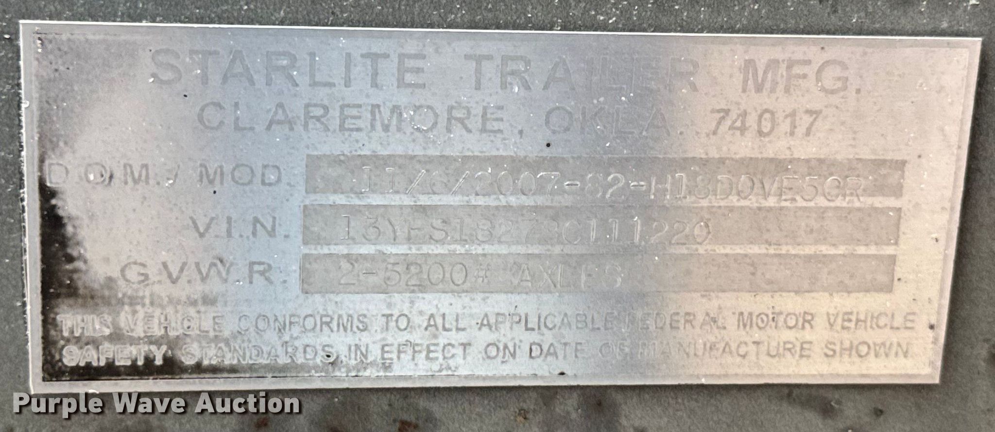 Purple Wave is selling a used Equip. Trailer in Kansas. This item is a 2008 Starlite equipment trailer with the following: VIN: 13YFS18278C111220