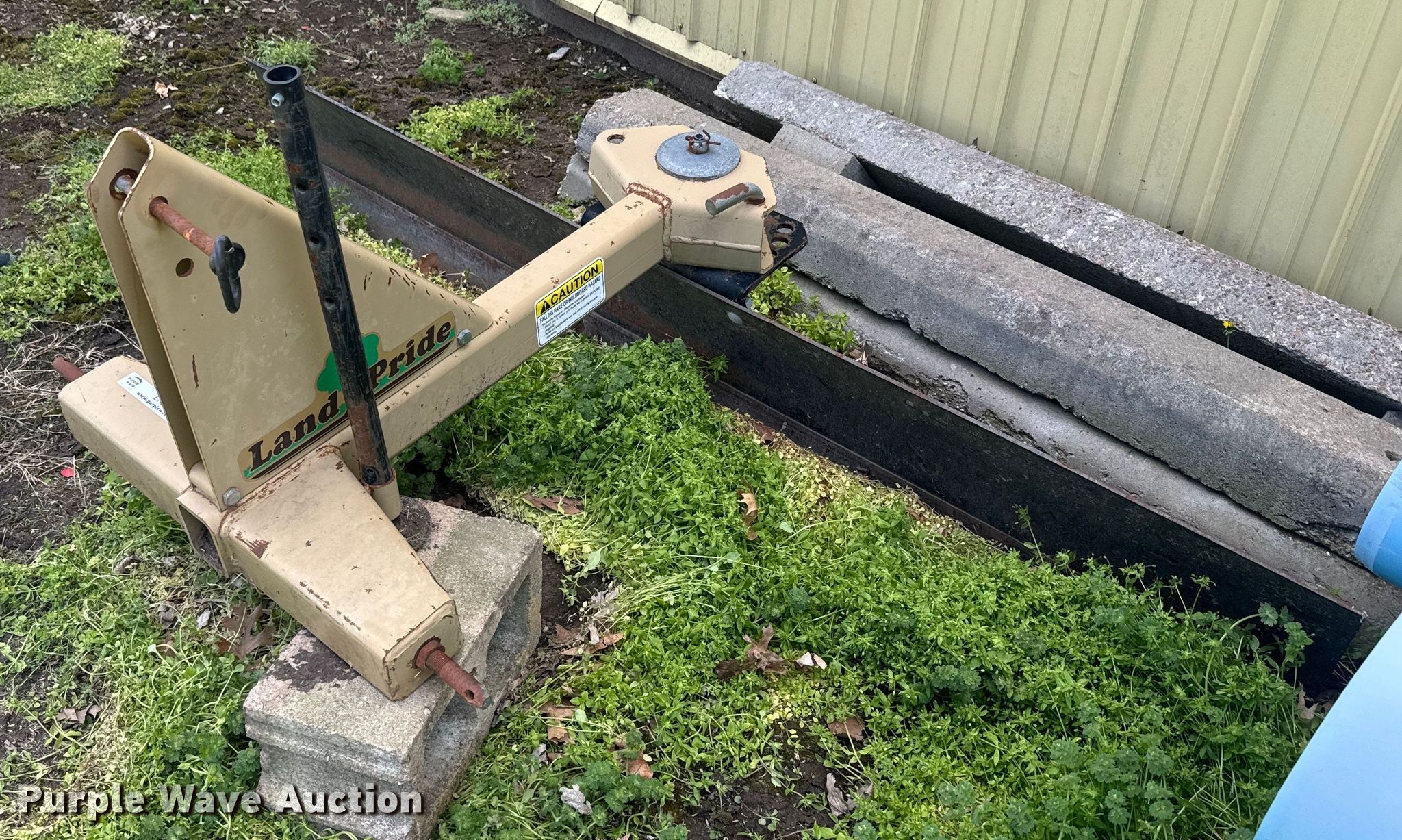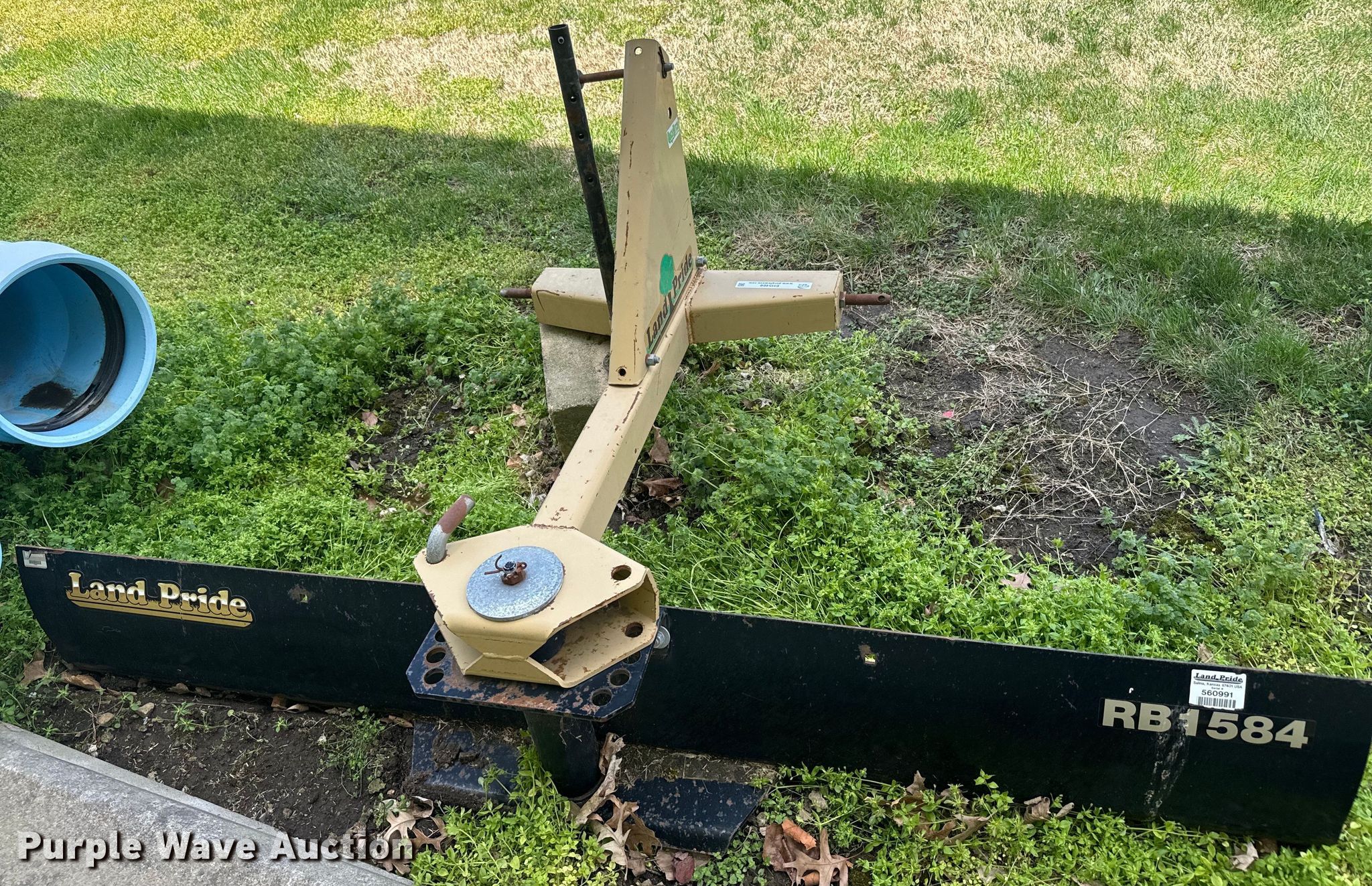 Purple Wave is selling a used Ag Equip. Other in Kansas. This item is a Three point attachments with the following: Land Pride RB1584 blade, Width: 84", Hitch: Three point, King Kutter platform, Dimensions: 30" x 34", Hitch: Three point