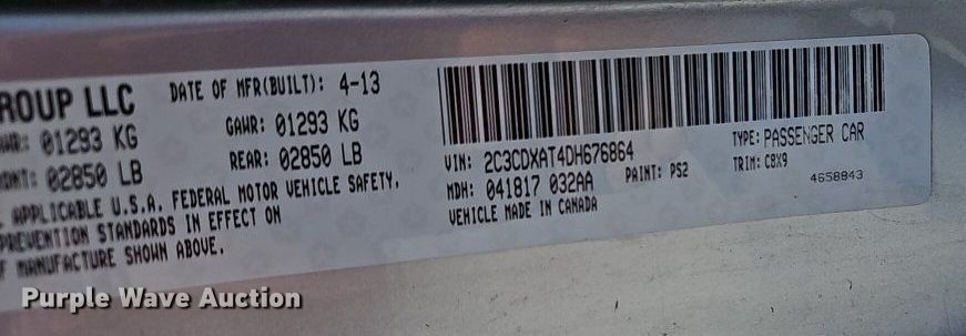 Purple Wave is selling a used Passenger Vehicle in Missouri. This item is a 2013 Dodge Charger Police with the following: Miles: 177,984 on odometer, VIN: 2C3CDXAT4DH676864