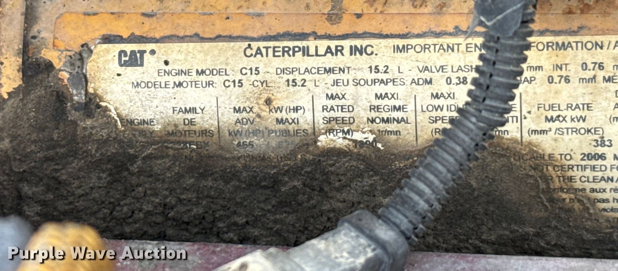 2007 Kenworth T600 dump truck. Miles: 869,962 on odometer, Hours: 469 on meter, VIN: 1XKADB9X17J169084. Engine Caterpillar C15, Serial: NOMYS90205, Displacement: 15.2L, Cylinders: 6, Fuel type: Diesel, HP: 475, kW: 354, Engine brake. Transmission Manual, Speed: 10. Chassis Axles: Tandem, Differential lock: Inter-axle, Suspension: Air Dump valves, Brakes: Air, PTO. Interior AC, Heat, Cruise control. Features Dump bed 15' L x 8' W, Side height: 3", Side board height: 6", Bed type: Steel, Roll tarp, Ram: Single, End gate: Air operated. Tires Size: 11R22.5. Notes Dash warning indicator: Check engine, ABS. Oklahoma title. Seller is a government entity who will be assigning and distributing the title. Please contact the seller for distribution questions. Pontotoc County, OK. 14210 County Road 3610. Ada, OK 74820