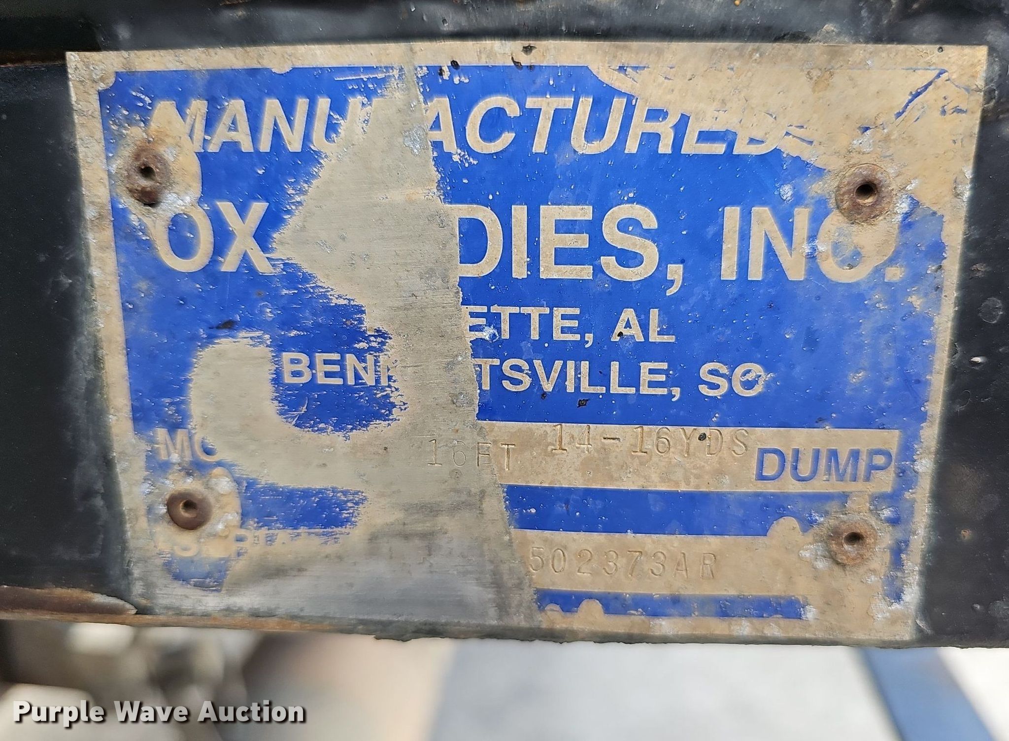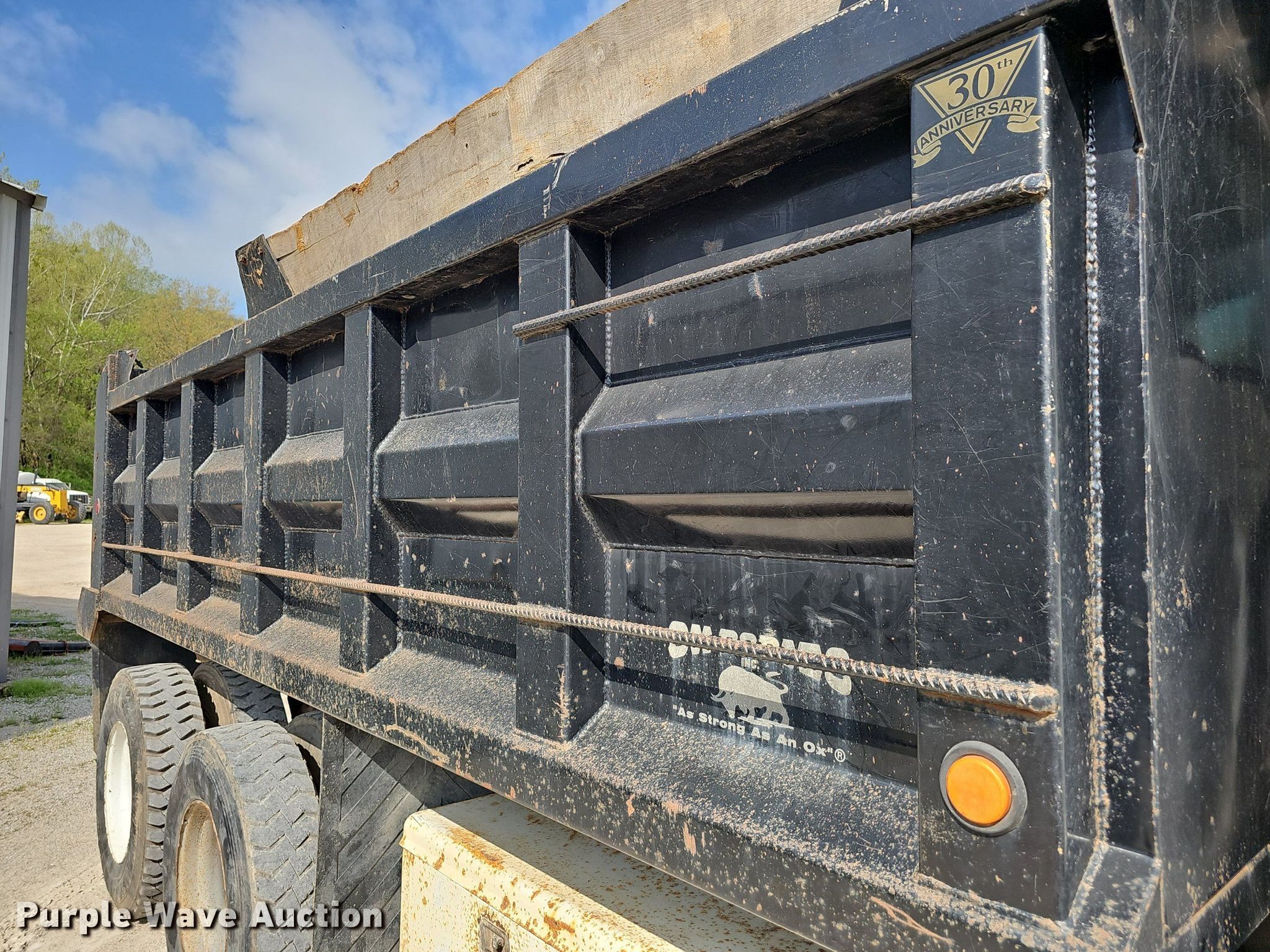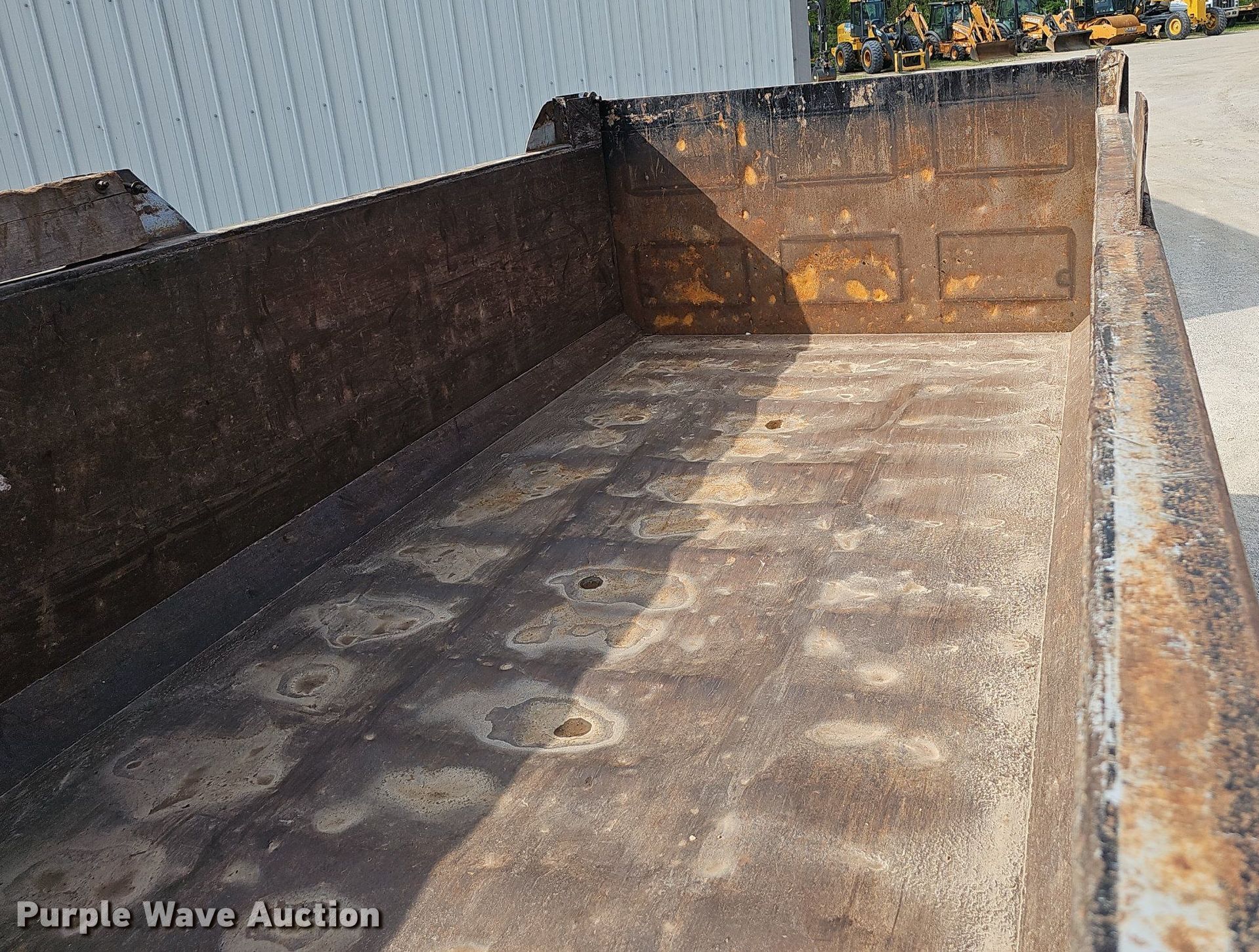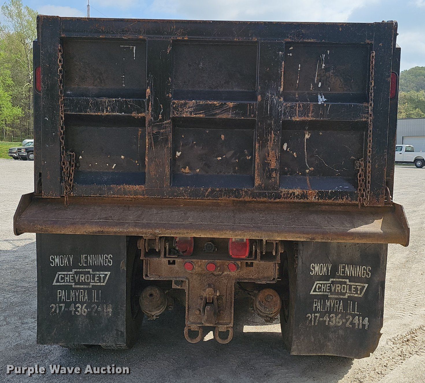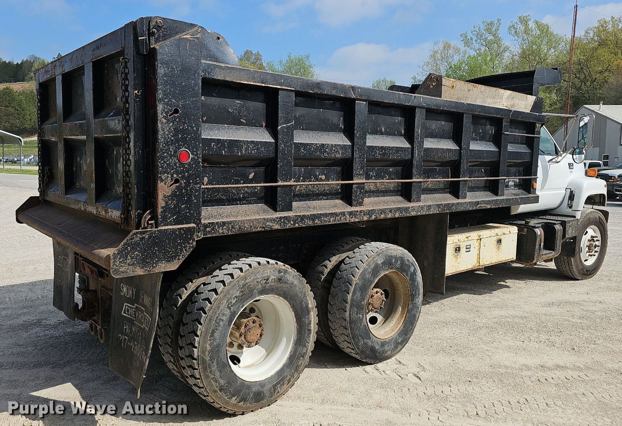 2002 Chevrolet C8500 dump truck. Miles: 202,003 on odometer, VIN: 1GBT7H4C72J504610. Engine Caterpillar 3126, Displacement: 7.2L, Cylinders: 6, Fuel type: Diesel. Transmission Eaton Fuller, Manual, Speed: 10. Chassis Double frame, Axles: Tandem, Differential lock: Inter-axle, Suspension: Spring over walking beam, Brakes: Air, PTO, GVWR: 56,000 lbs FAWR: 16,000 lbs, IAWR: 20,000 lbs, RAWR: 20,000 lbs. Interior AC, Heat. Features Dump bed Ox bodies 16ft, Capacity: 16 cu.yd., 16' L x 96" W, Side height: 41", Bed type: Steel, Ram: Single, End gate: Air operated. Tires Front: 315/80R22.5, Rear: 11R22.5. Missouri title. Title distribution may be delayed up to 14 days from verification of funds. Stone County Shop. Galena, MO 65656