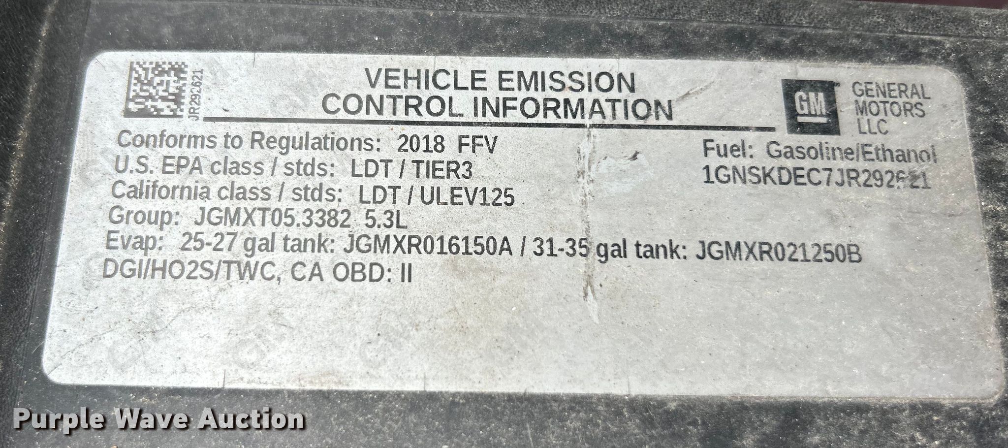 Purple Wave is selling a used Passenger Vehicle in Missouri. This item is a 2018 Chevrolet Tahoe Police SUV with the following: Miles: 112,712 on odometer, Hours: 14,476 on meter, VIN: 1GNSKDEC7JR292621, Unit #: 29
