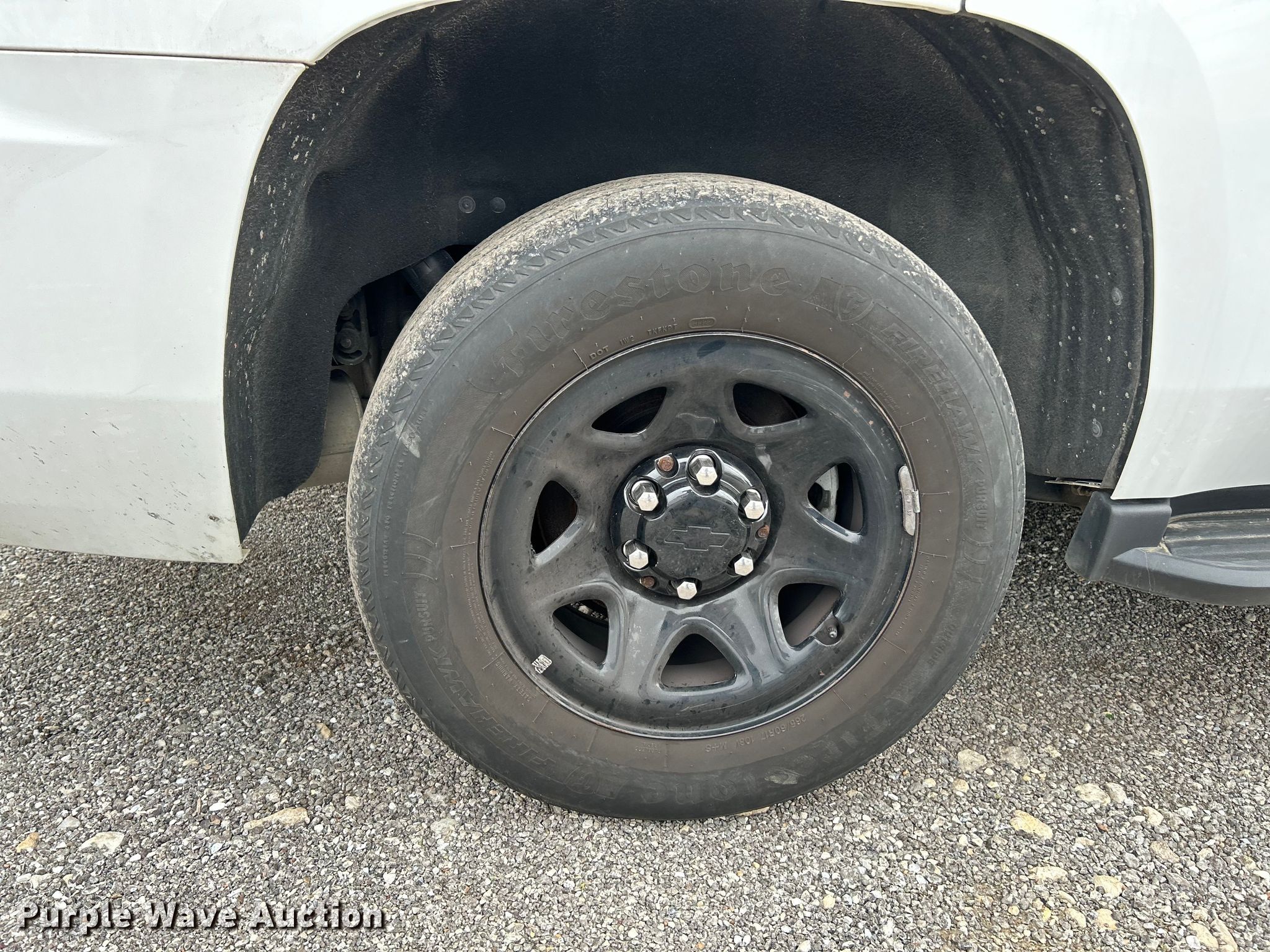 2019 Chevrolet Tahoe Police SUV. Miles: 111,546 on odometer, Hours: 13,496 on meter, VIN: 1GNSKDEC6KR331765, Unit #: 35. Engine Displacement: 5.3L V8 OHV, Cylinders: 8, Fuel type: Gas. Transmission Automatic, Four wheel drive. Interior AC, Heat, Seat: Power driver, Power passenger, Power windows, Power locks, Cruise control, Backup camera. Tires Size: 265/60R17. Missouri title. Title distribution may be delayed up to 14 days from verification of funds. City of Wentzville, MO. Wentzville, MO 63385