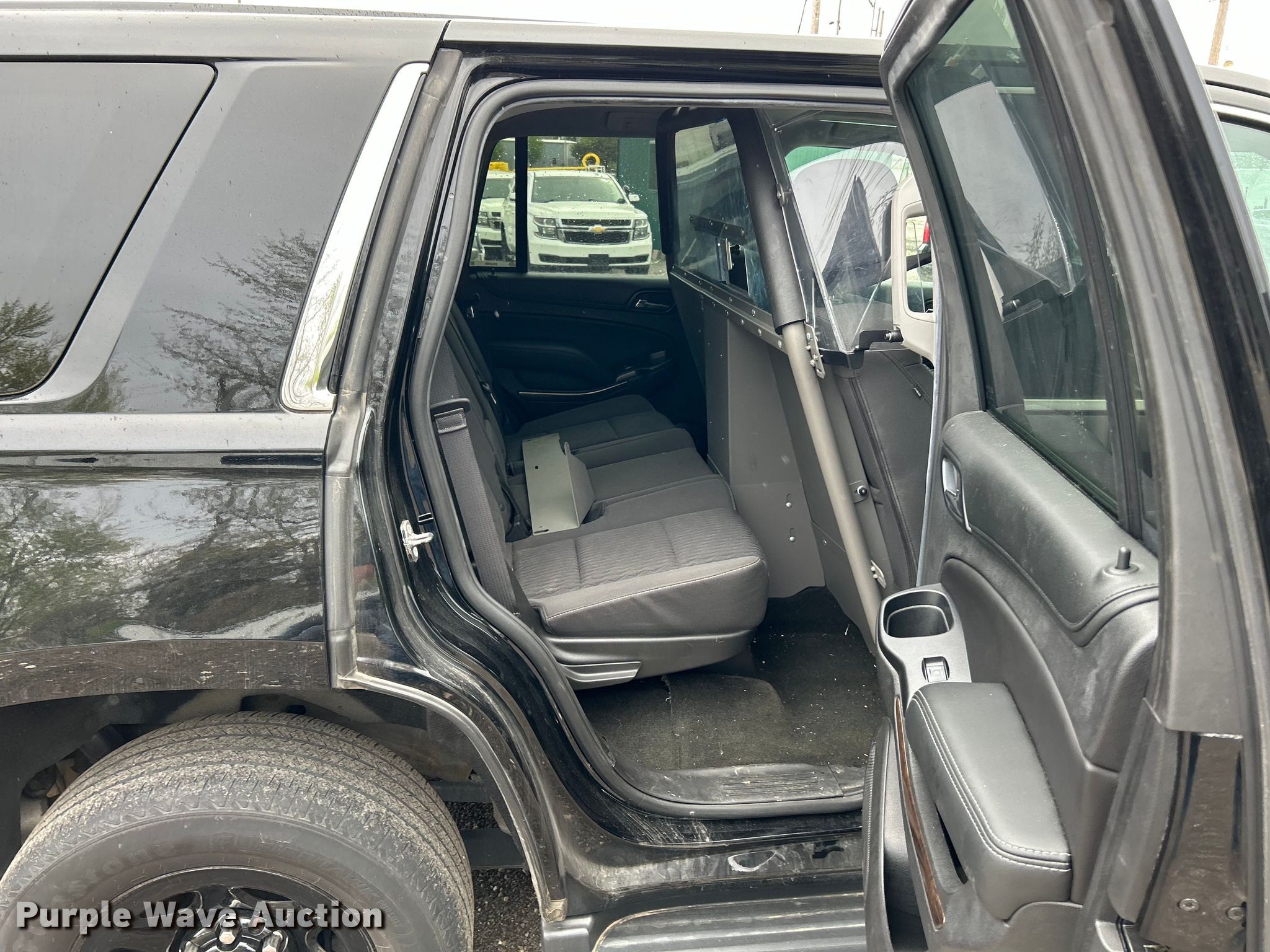 2018 Chevrolet Tahoe Police SUV. Miles: 112,539 on odometer, Hours: 13,501 on meter, VIN: 1GNLCDEC1JR292163, Unit #: 25. Engine Displacement: 5.3L V8 OHV, Cylinders: 8, Fuel type: Gas. Transmission Automatic. Interior AC, Heat, Seat: Power driver, Power passenger, Power windows, Power locks, Cruise control, Backup camera. Tires Size: 265/60R17. Notes Dash warning indicator: TPMS. Missouri title. Title distribution may be delayed up to 14 days from verification of funds. City of Wentzville, MO. Wentzville, MO 63385