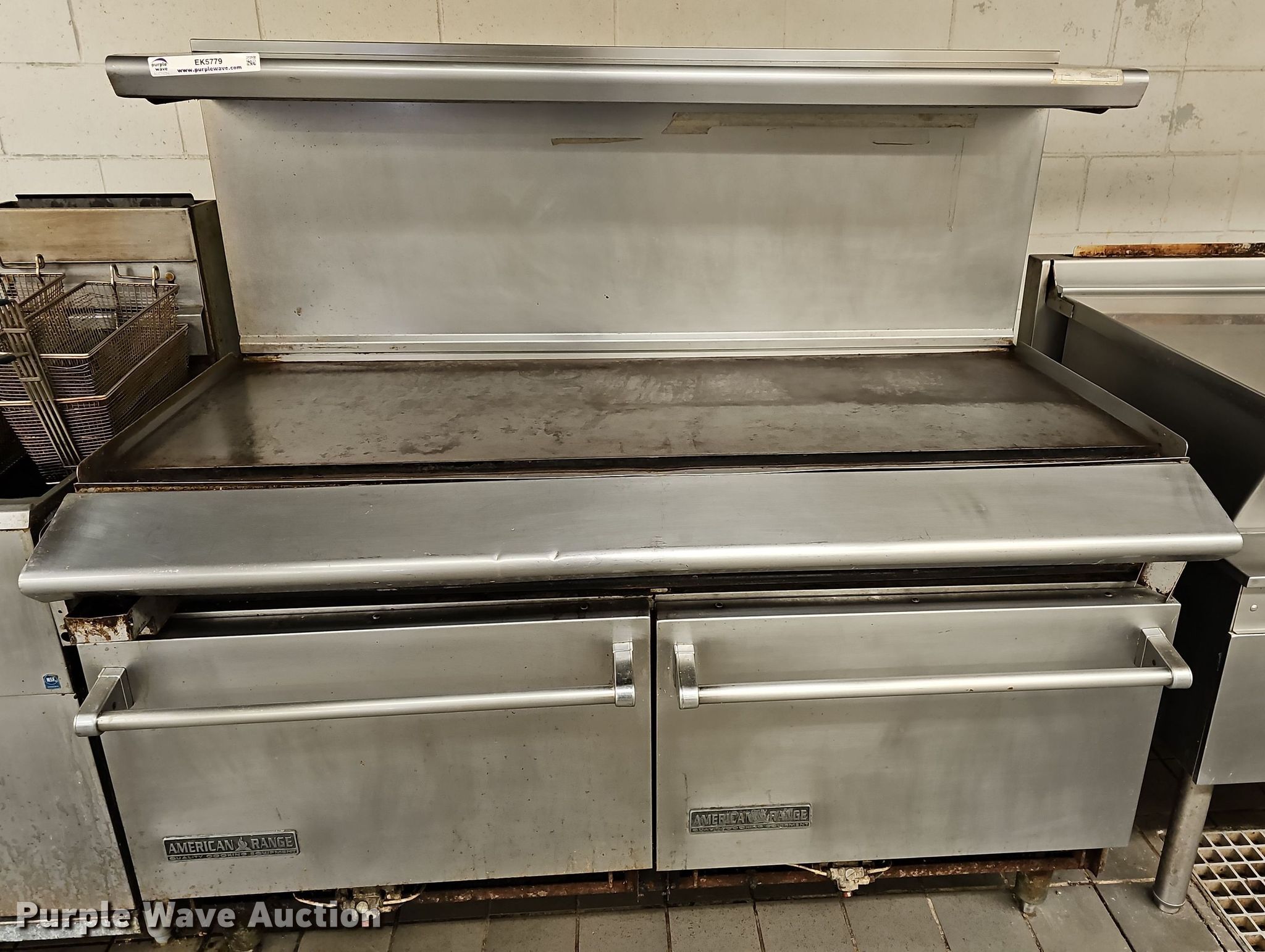Purple Wave is selling a used Restaurant Equip. in Kansas. This item is a American Range Flattop with the following: Dimensions: 5' x 3' x 57", Oven, Missing knobs