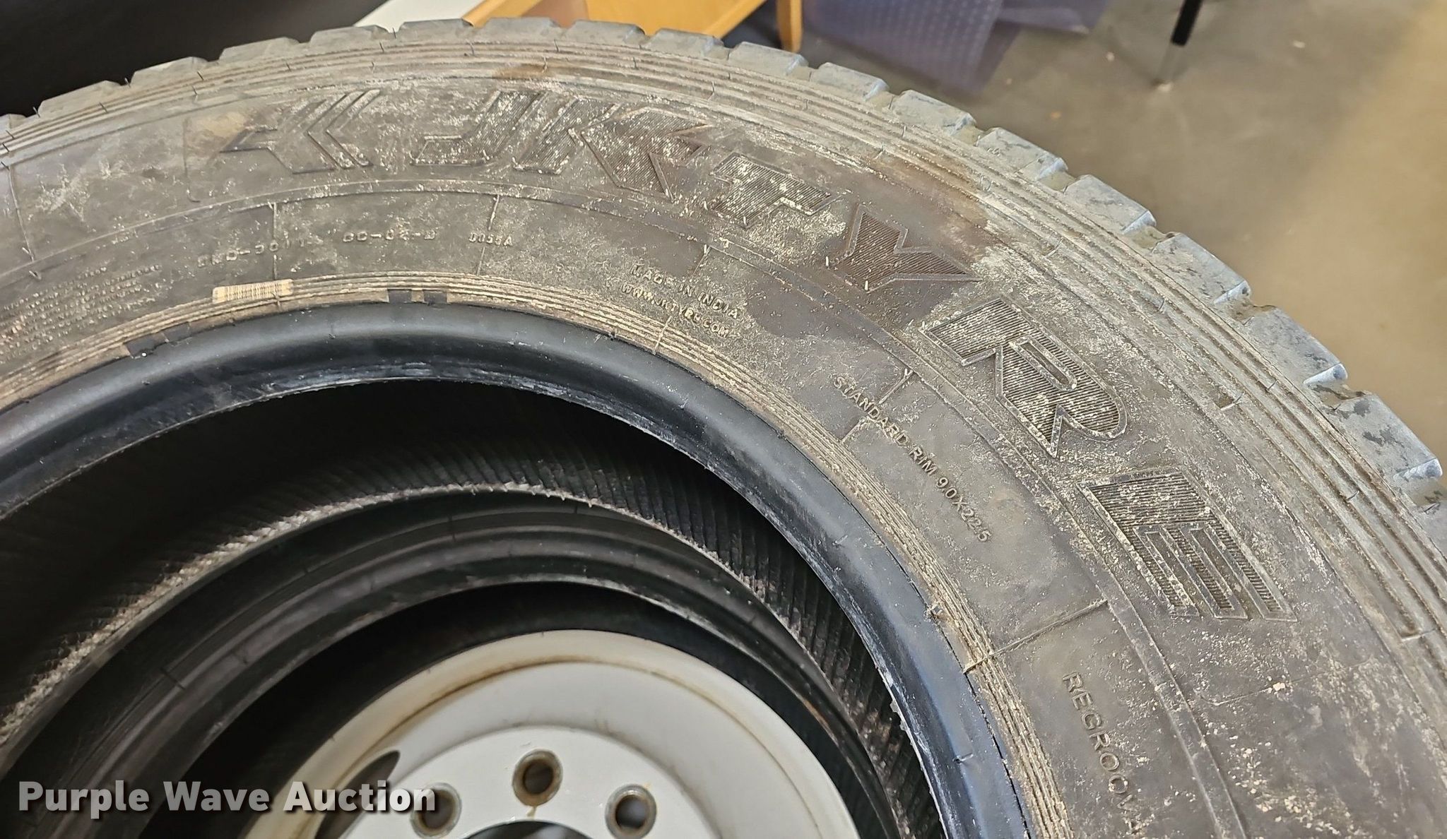 Purple Wave is selling a used Fleet Tires in Kansas. This item is a (6) 12R22.5 tires with the following: (2) wheels, Bumper, Removed from 2018 International 4500