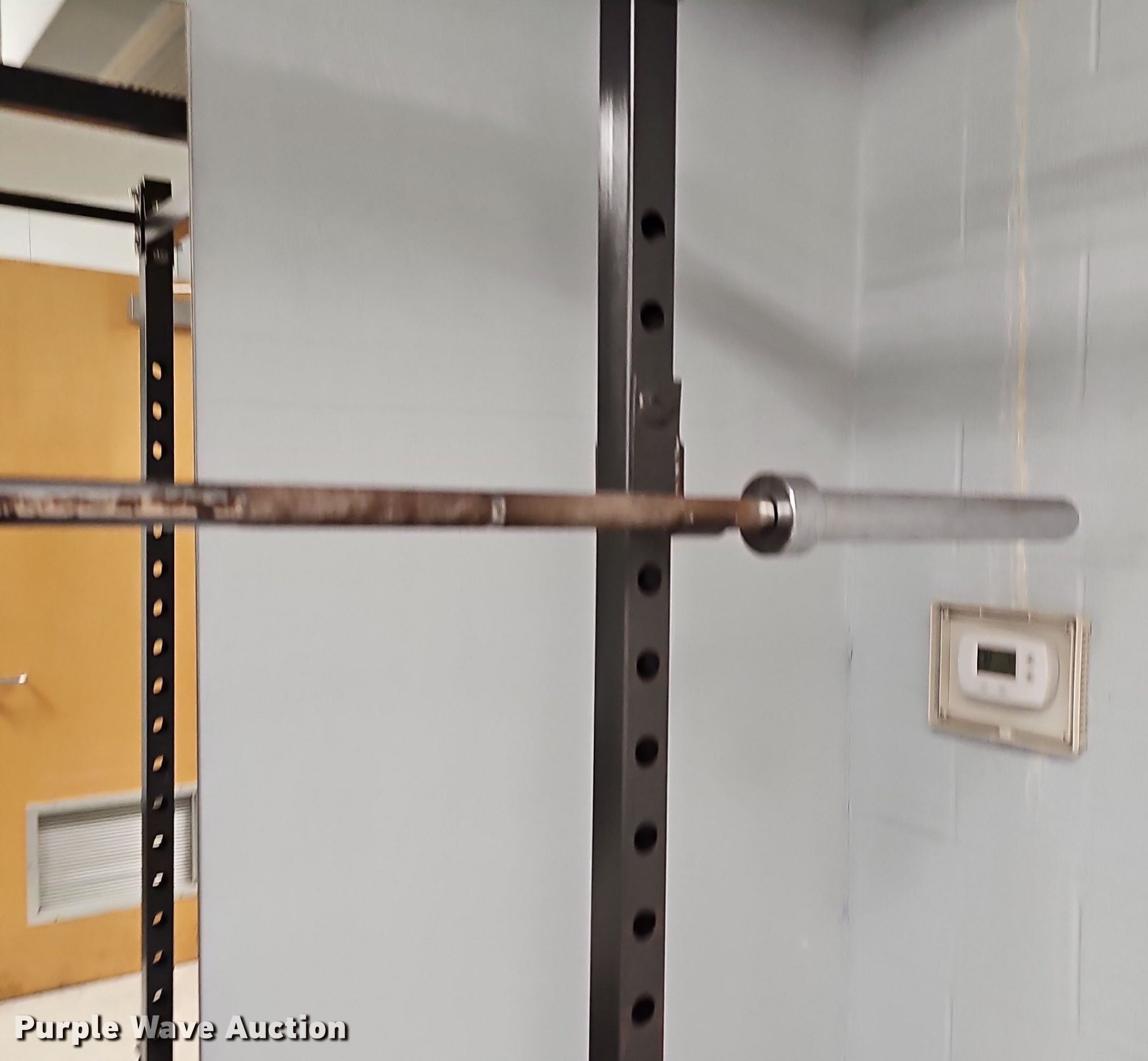 Purple Wave is selling a used Sporting Goods in Kansas. This item is a Weight lifting equipment with the following: (2) weight racks, Lifting rack, Floor mats, Barbell rack and more