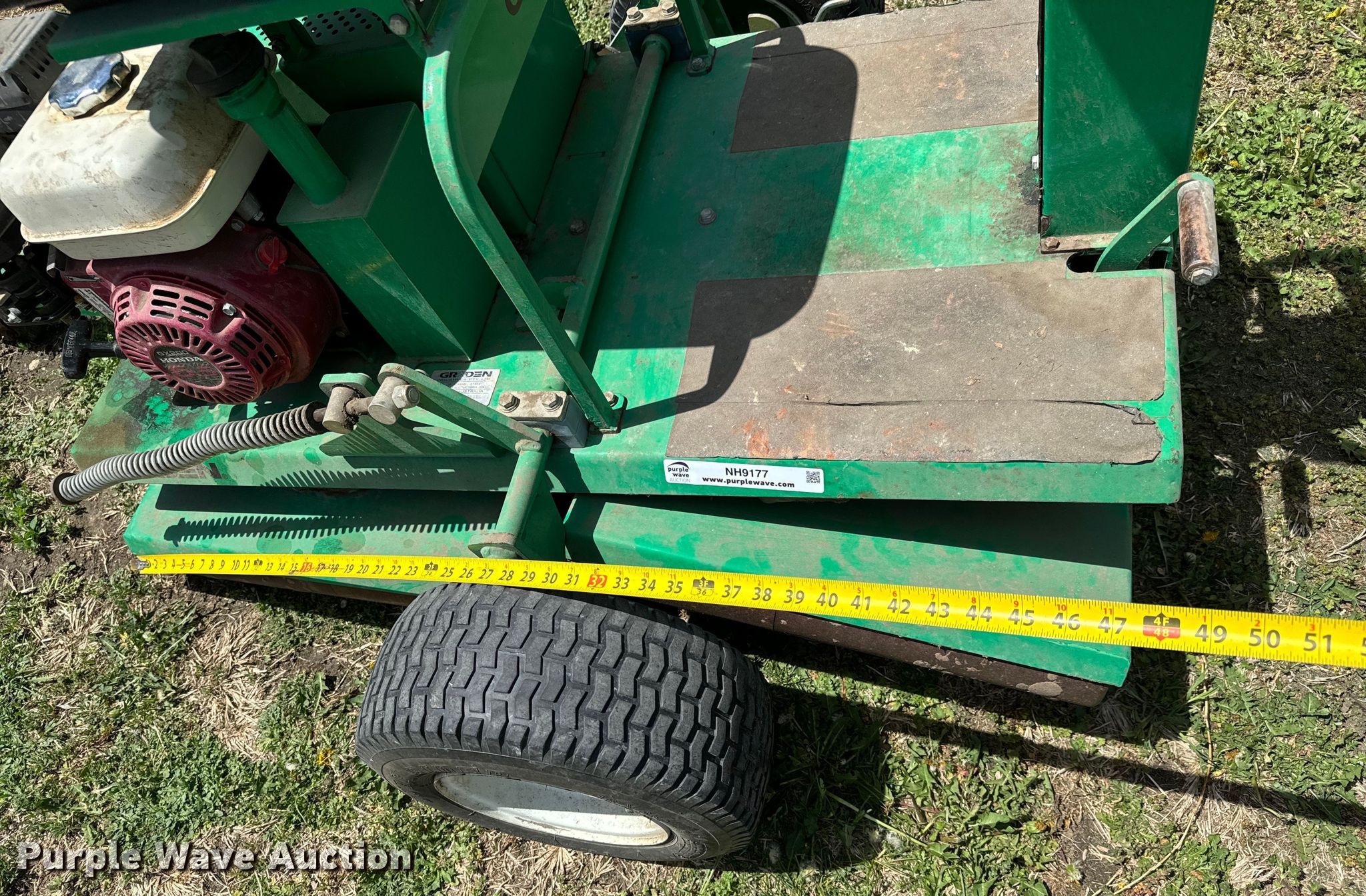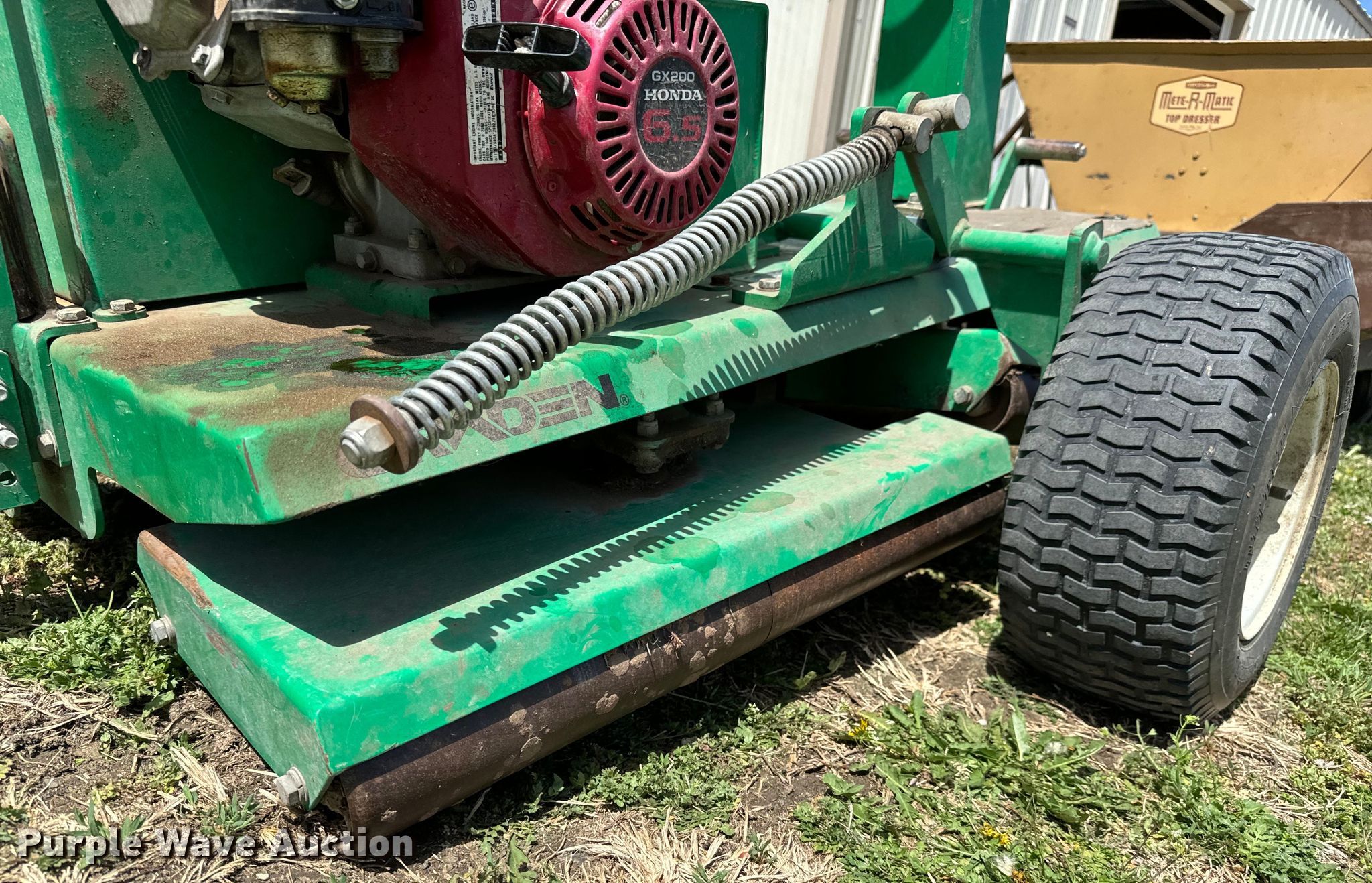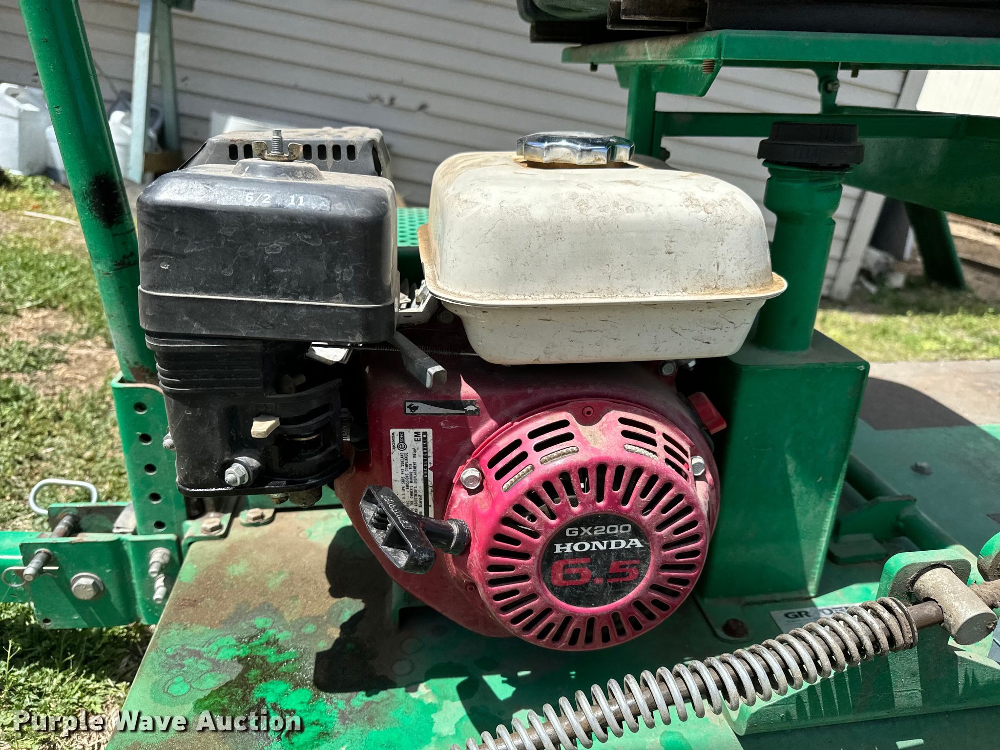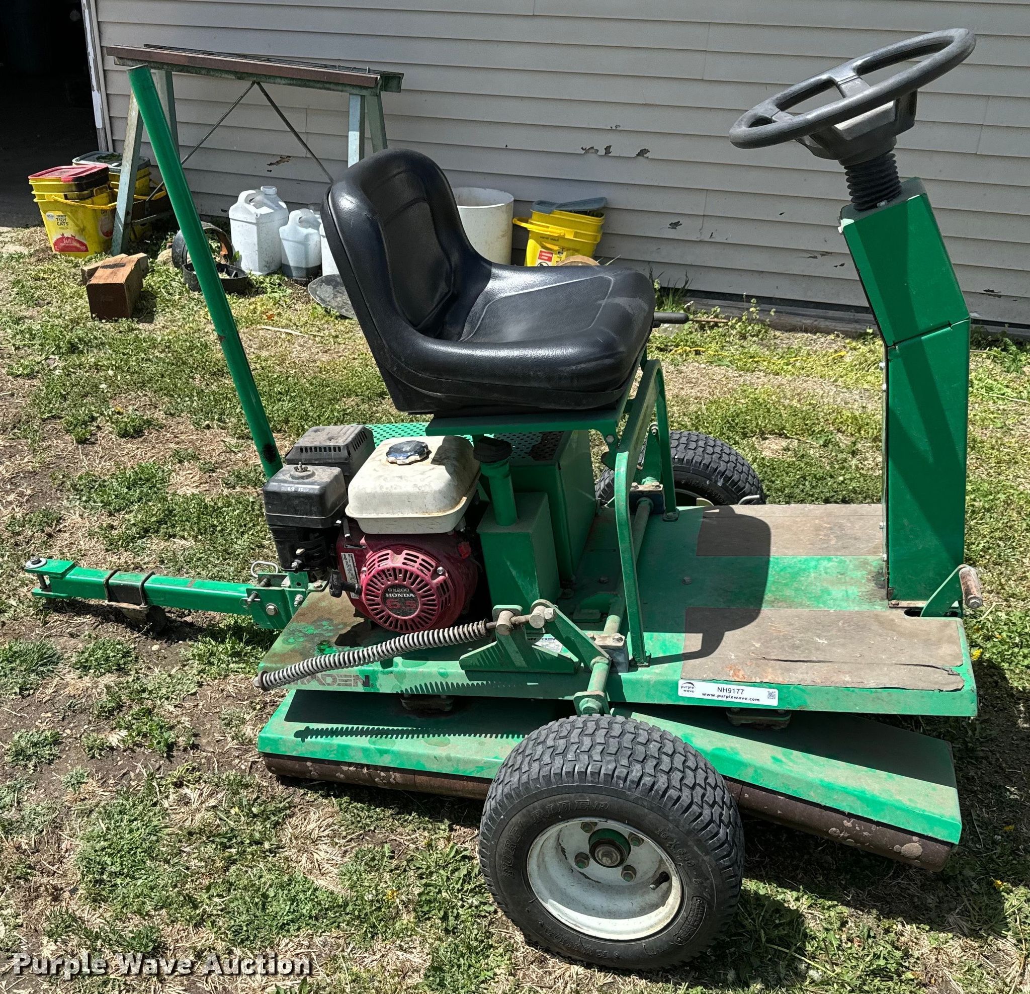 Purple Wave is selling a used Lawn and Garden in Kansas. This item is a Lawn equipment with the following: 2006 Graden GSR1200 roller, Honda GX200 gas engine, Tire size: 16x6.50-8, Turfco Mete-R-Matic F-8A top dresser, Briggs & Stratton 5 HP gas engine, Tire size 13x6.50-6, Unknown operating condition, Walk behind solid tine aerator, Unknown operating condition, TERRAcare T200 aerator, Unknown operating condition, 48" W broom, Unknown operating condition