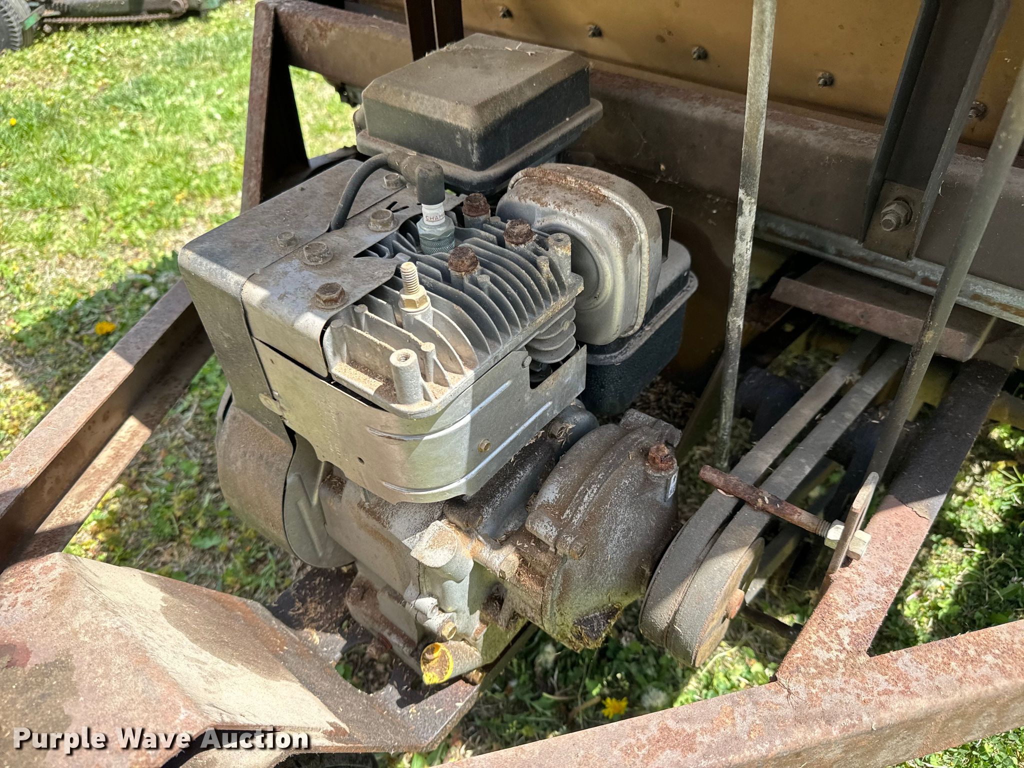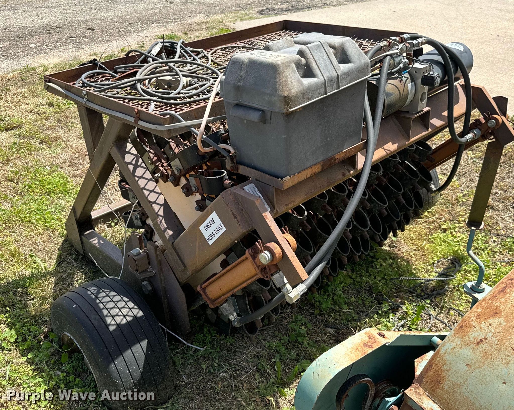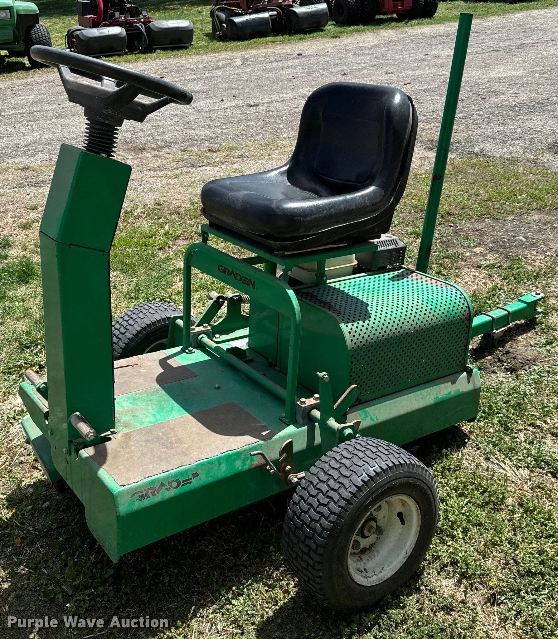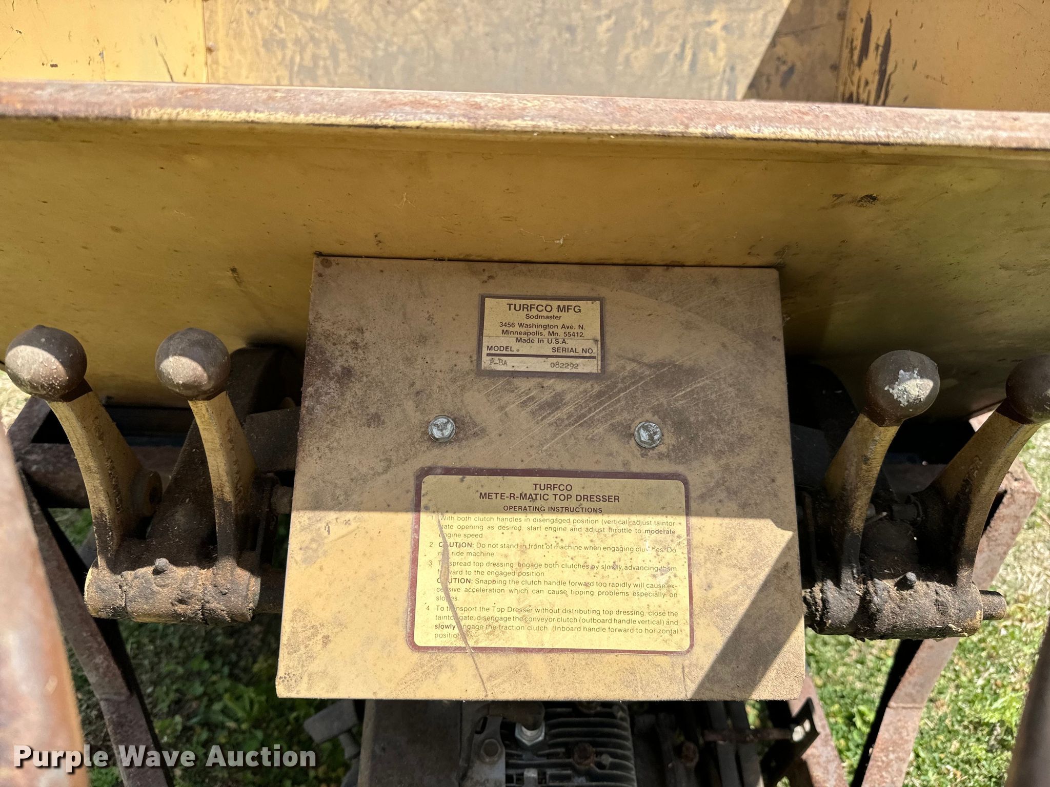 Purple Wave is selling a used Lawn and Garden in Kansas. This item is a Lawn equipment with the following: 2006 Graden GSR1200 roller, Honda GX200 gas engine, Tire size: 16x6.50-8, Turfco Mete-R-Matic F-8A top dresser, Briggs & Stratton 5 HP gas engine, Tire size 13x6.50-6, Unknown operating condition, Walk behind solid tine aerator, Unknown operating condition, TERRAcare T200 aerator, Unknown operating condition, 48" W broom, Unknown operating condition