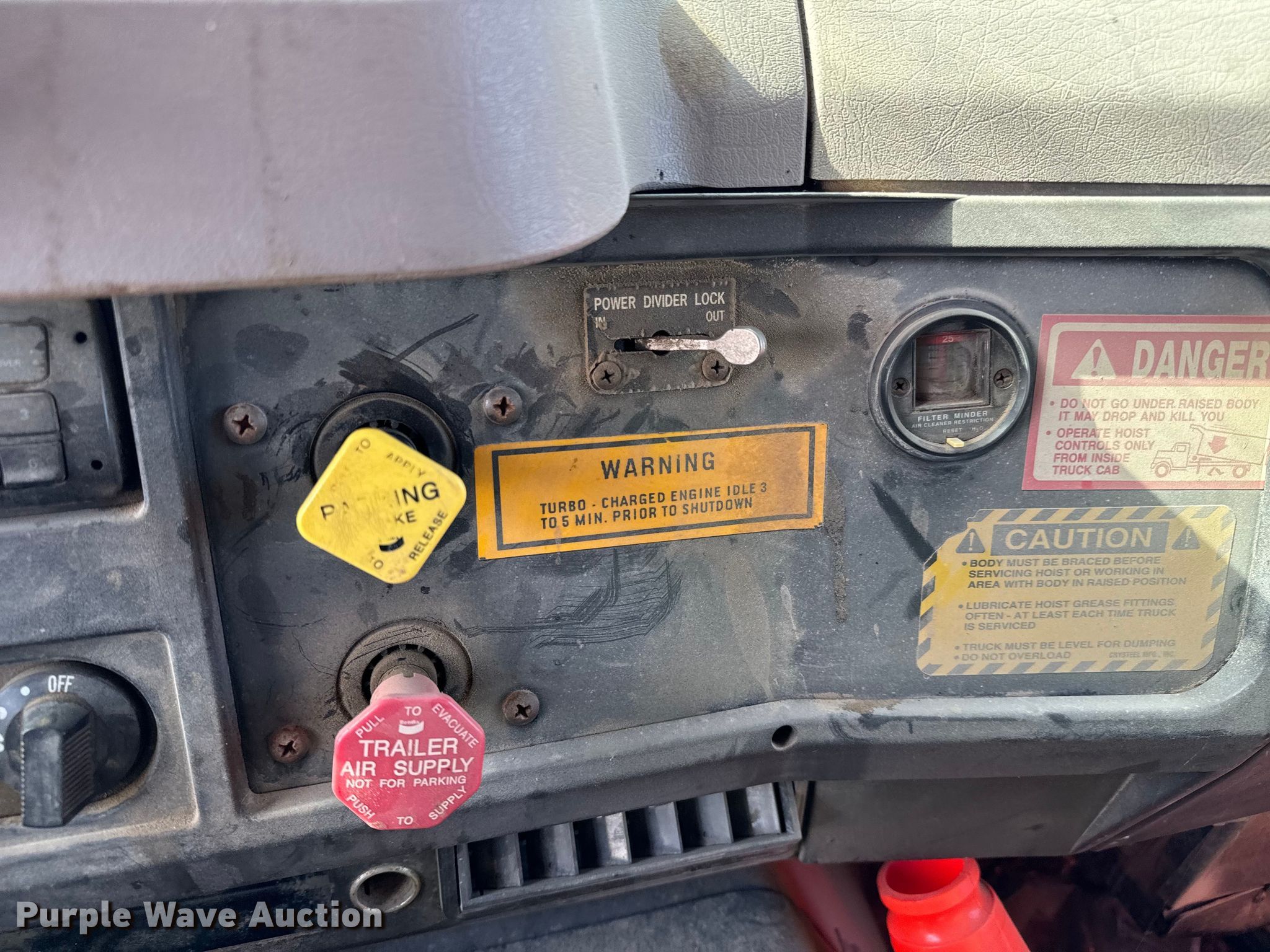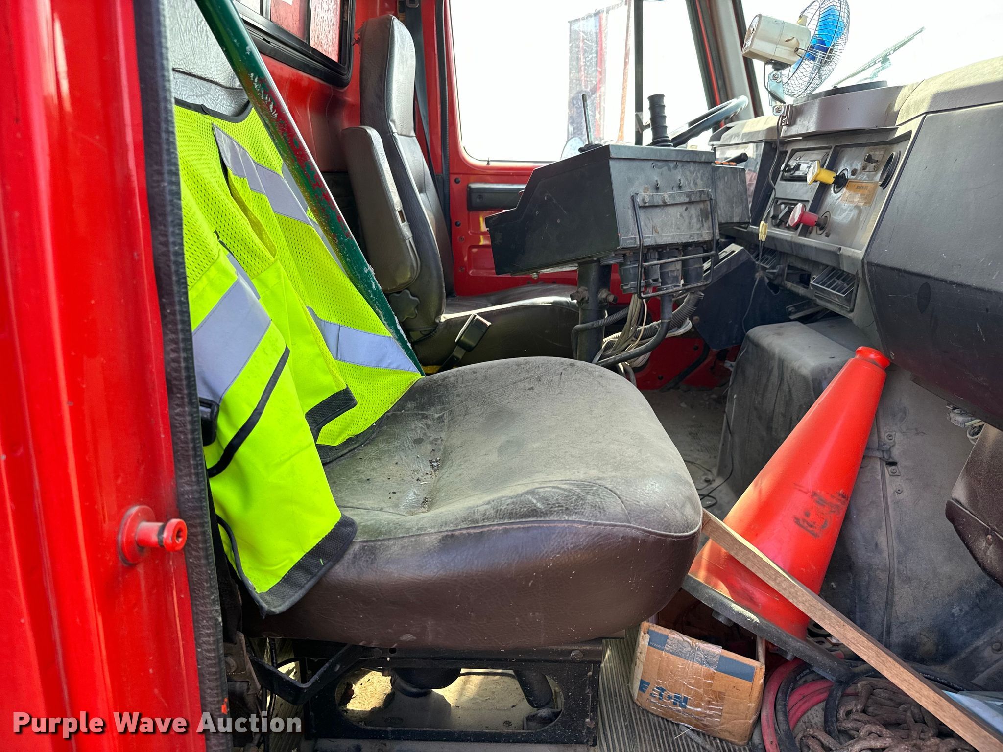 Purple Wave is selling a used Construction Dump Truck in Kansas. This item is a 1997 International 4900 dump truck with the following: Miles: 180,674 on odometer, Hours: 13,084 on meter, VIN: 1HTSHAARXVH452490