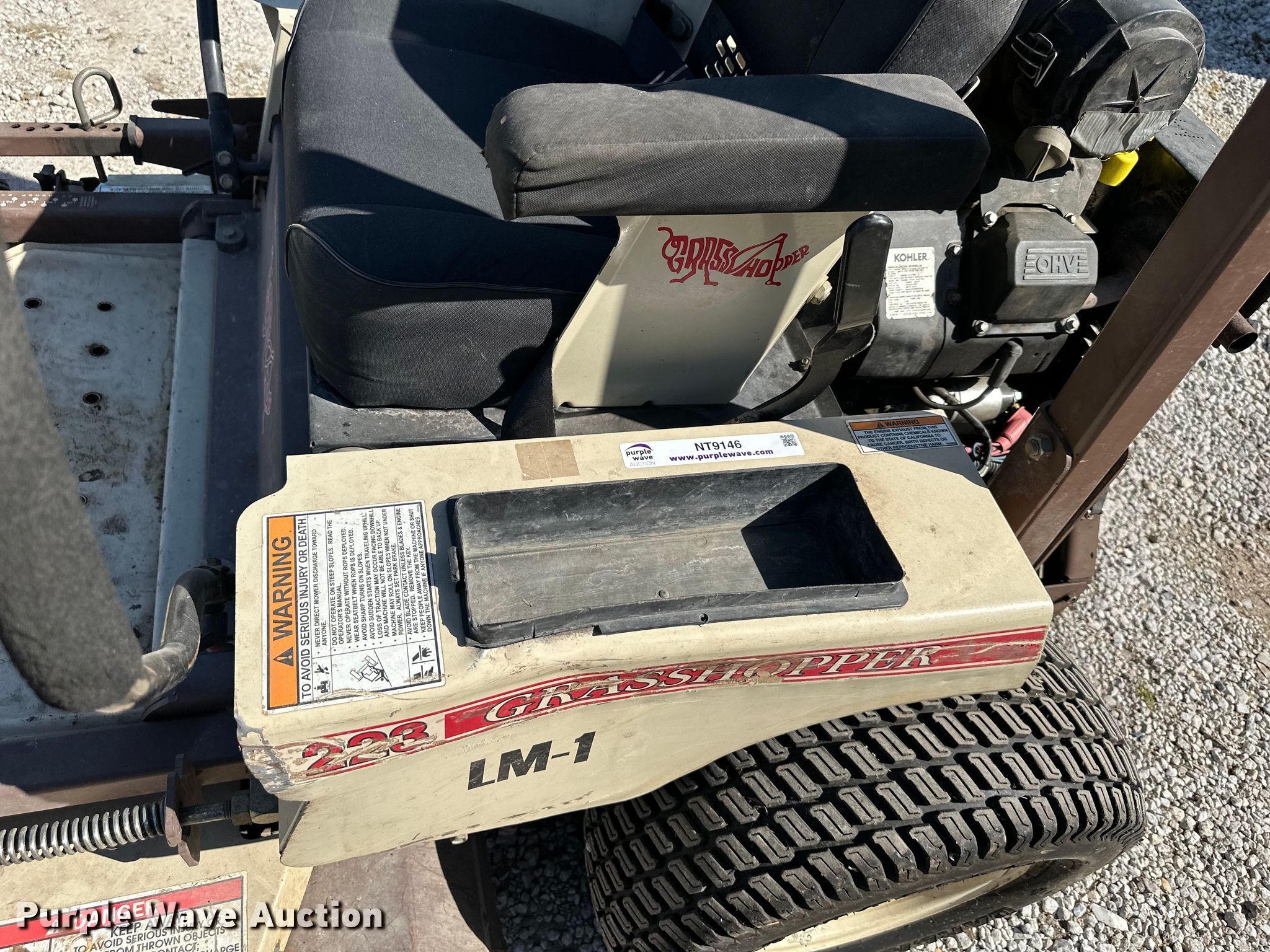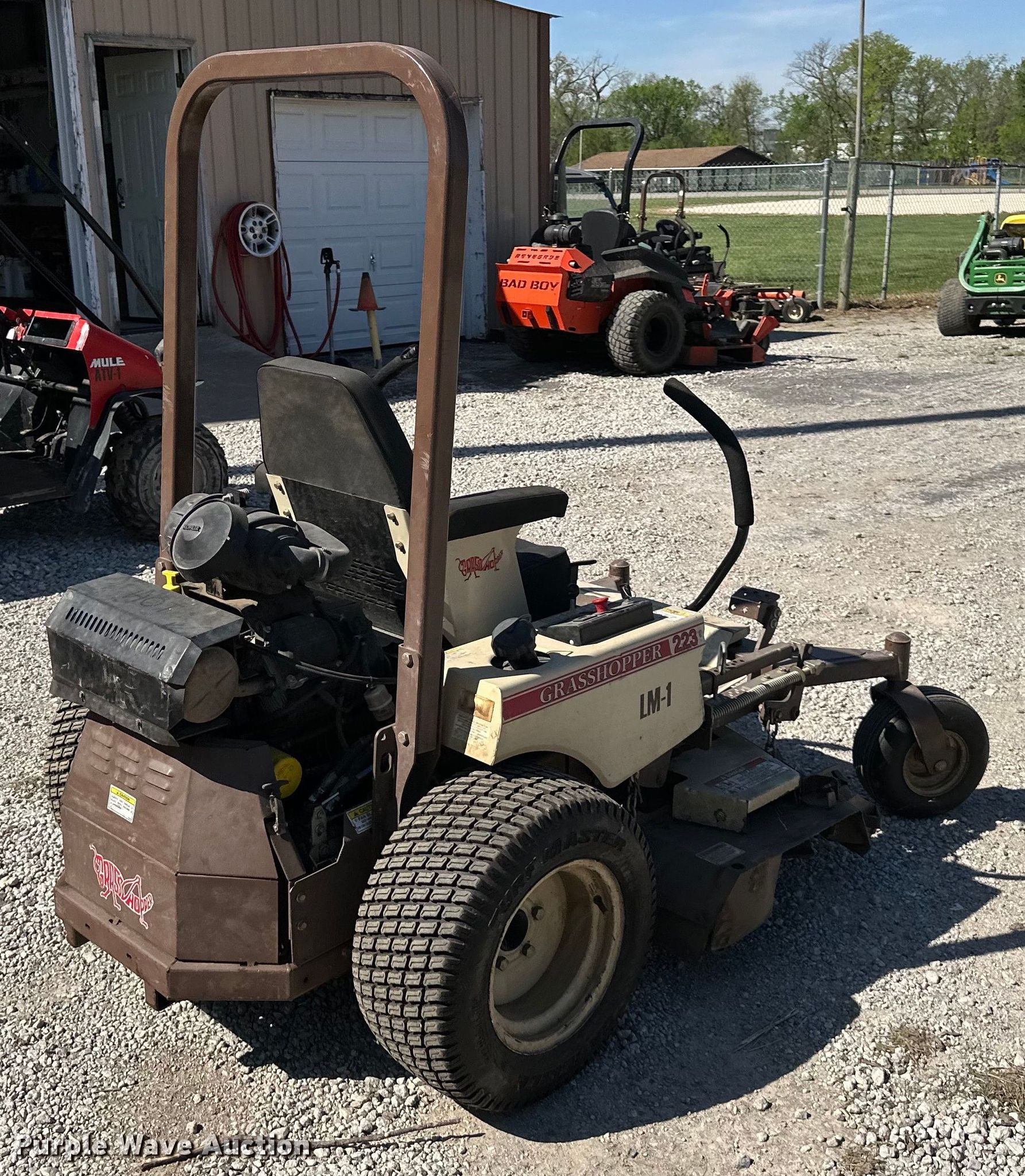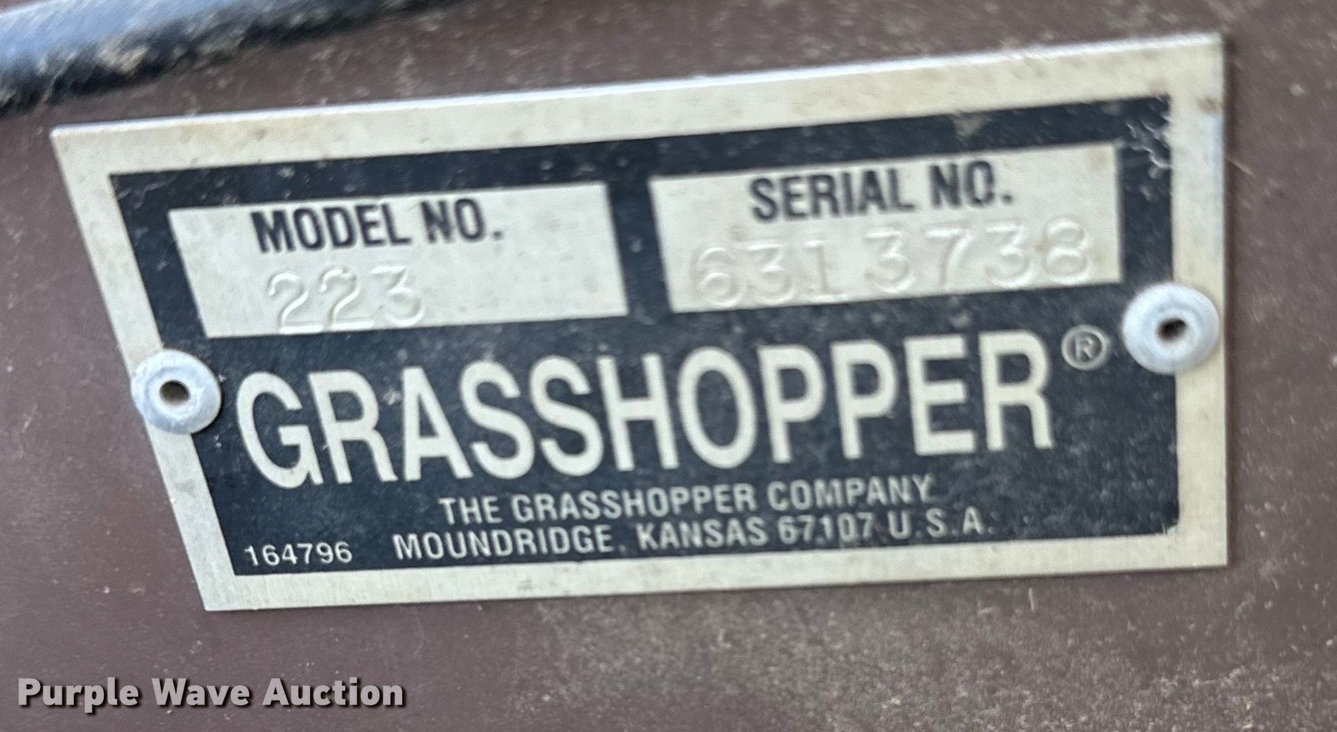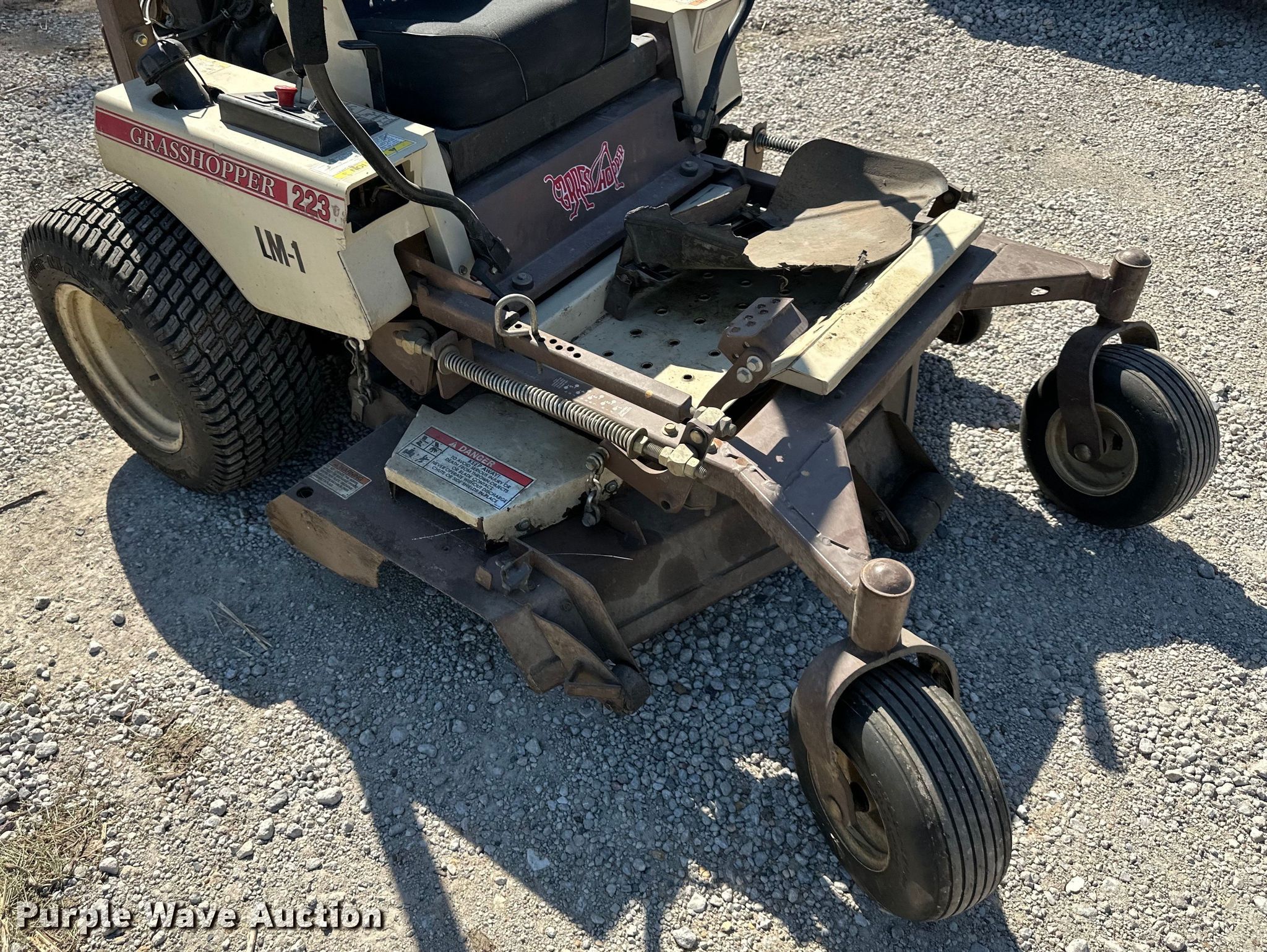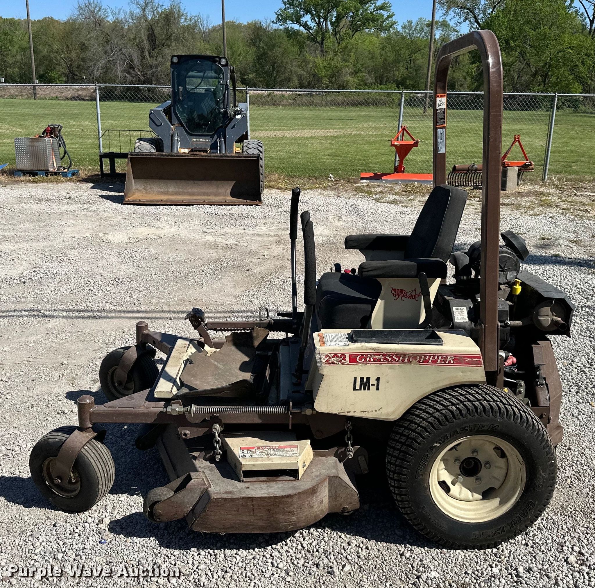 Purple Wave is selling a used Lawn Mower in Kansas. This item is a Grasshopper 223 ZTR lawn mower with the following: Hours: 1,298 on meter, Cutting width: 52", Serial: 6313738