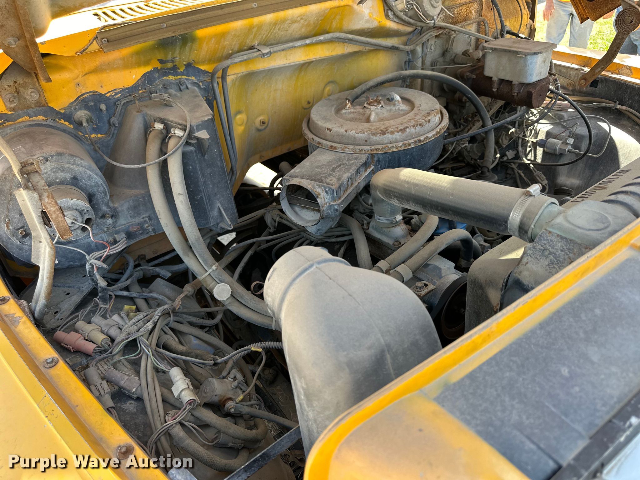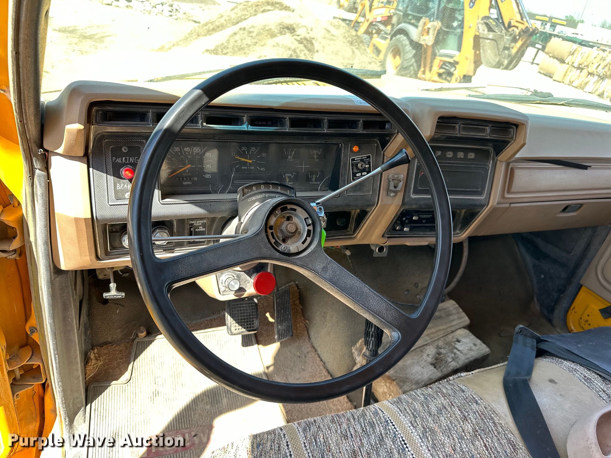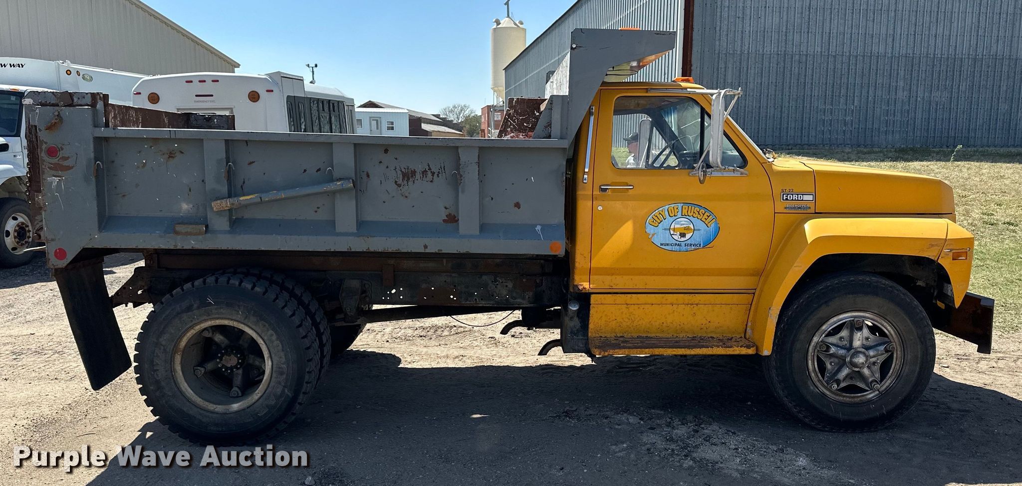 1983 Ford F700 dump truck. Miles: 86,828 on odometer, VIN: 1FDPF70H6DVA23878. Engine Displacement: 6.1L, Cylinders: 8, Fuel type: Gas. Transmission Automatic. Chassis Axles: Single, Suspension: Spring, Brakes: Hydraulic, PTO. Interior Heat. Features Dump bed 10' L x 96" W, Side height: 24", Bed type: Steel, Ram: Single, End gate: Manual. Tires Size: 10.00R20. Kansas title. City of Russell, KS. Russell, KS 67665