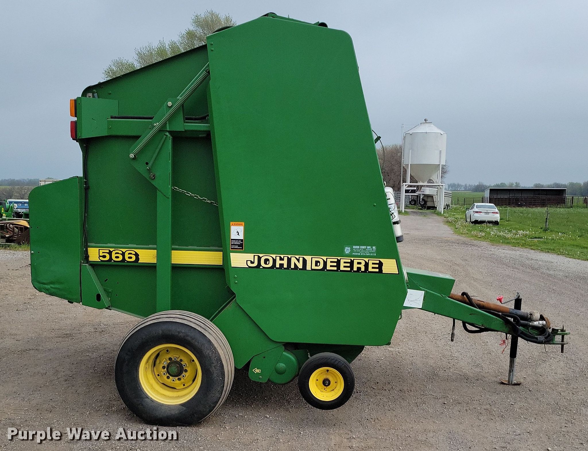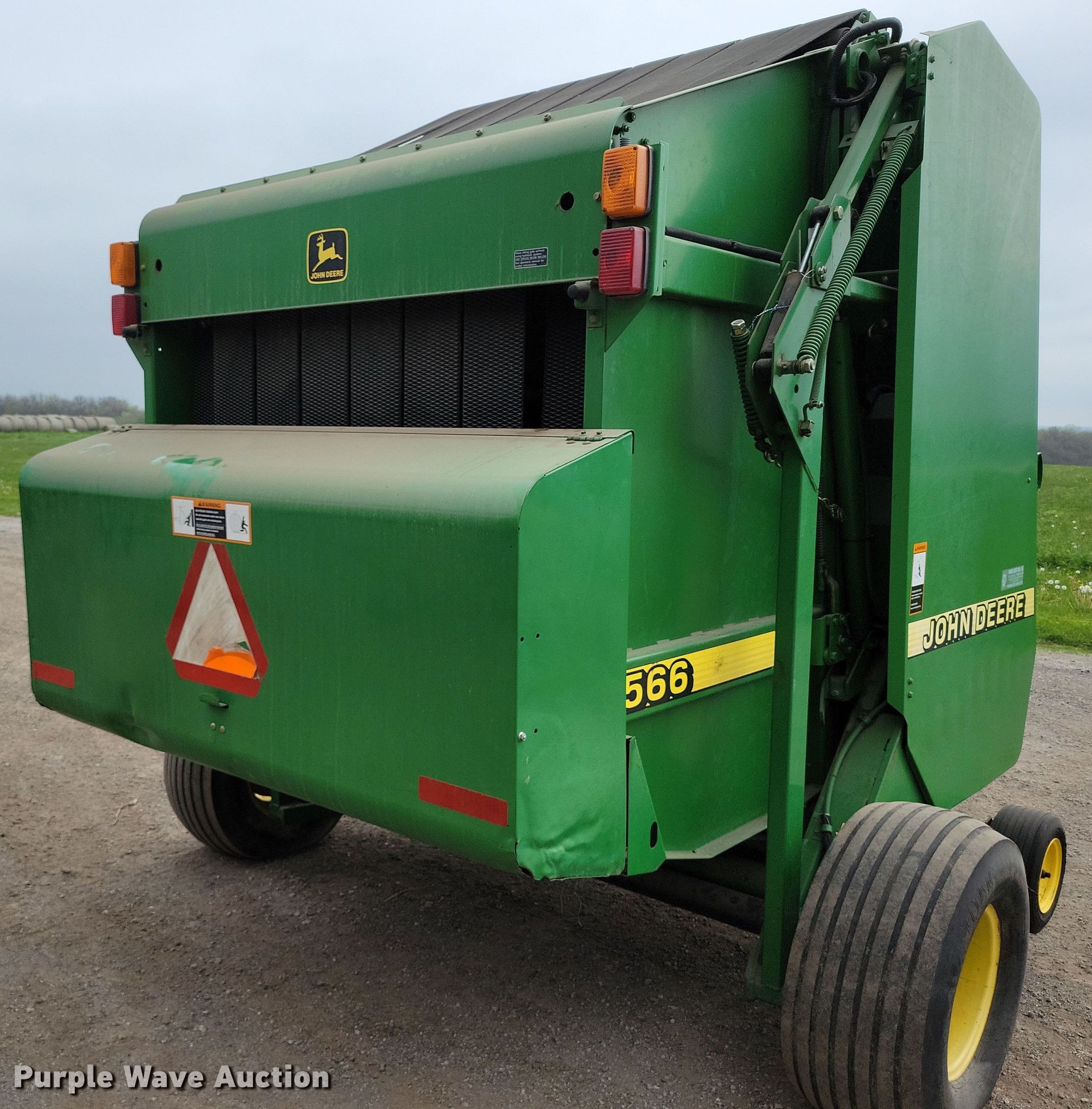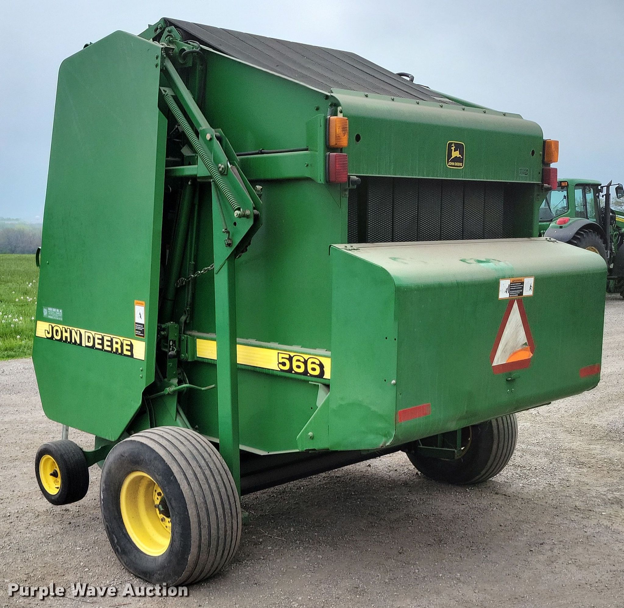 Purple Wave is selling a used Round Baler in Missouri. This item is a 1999 John Deere 566 round baler with the following: Bale count: 6,311, Serial: E00566X136517