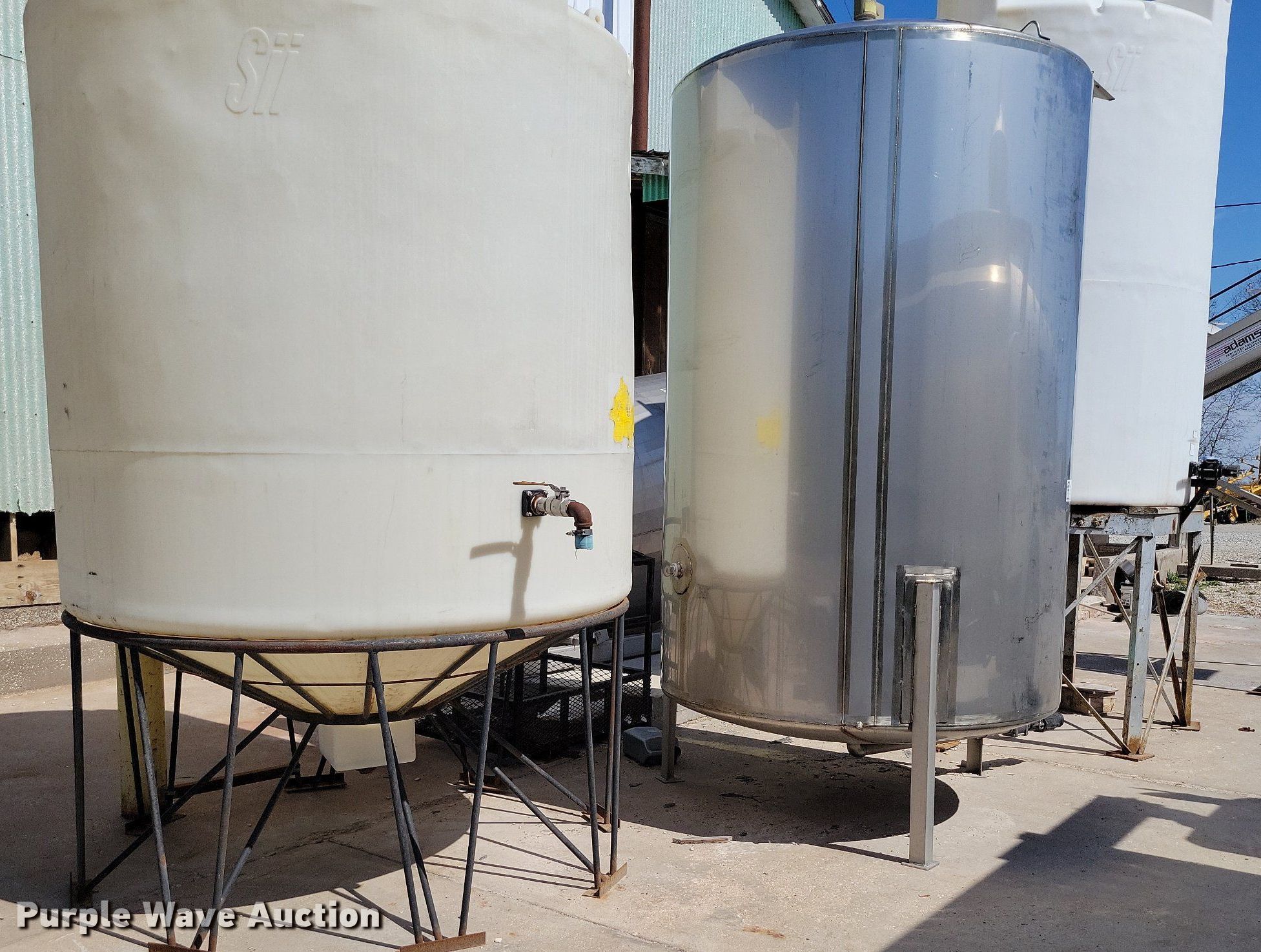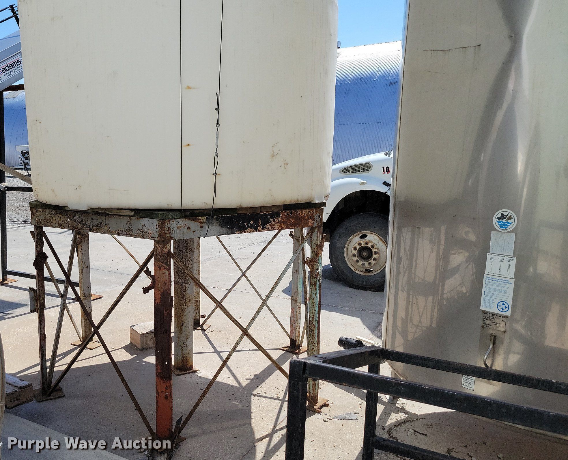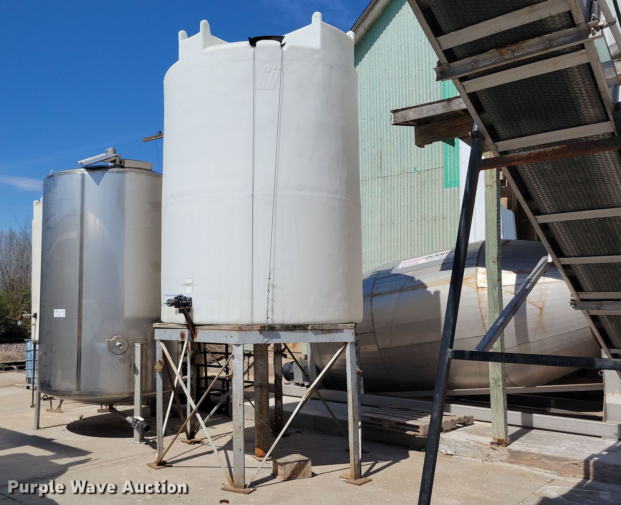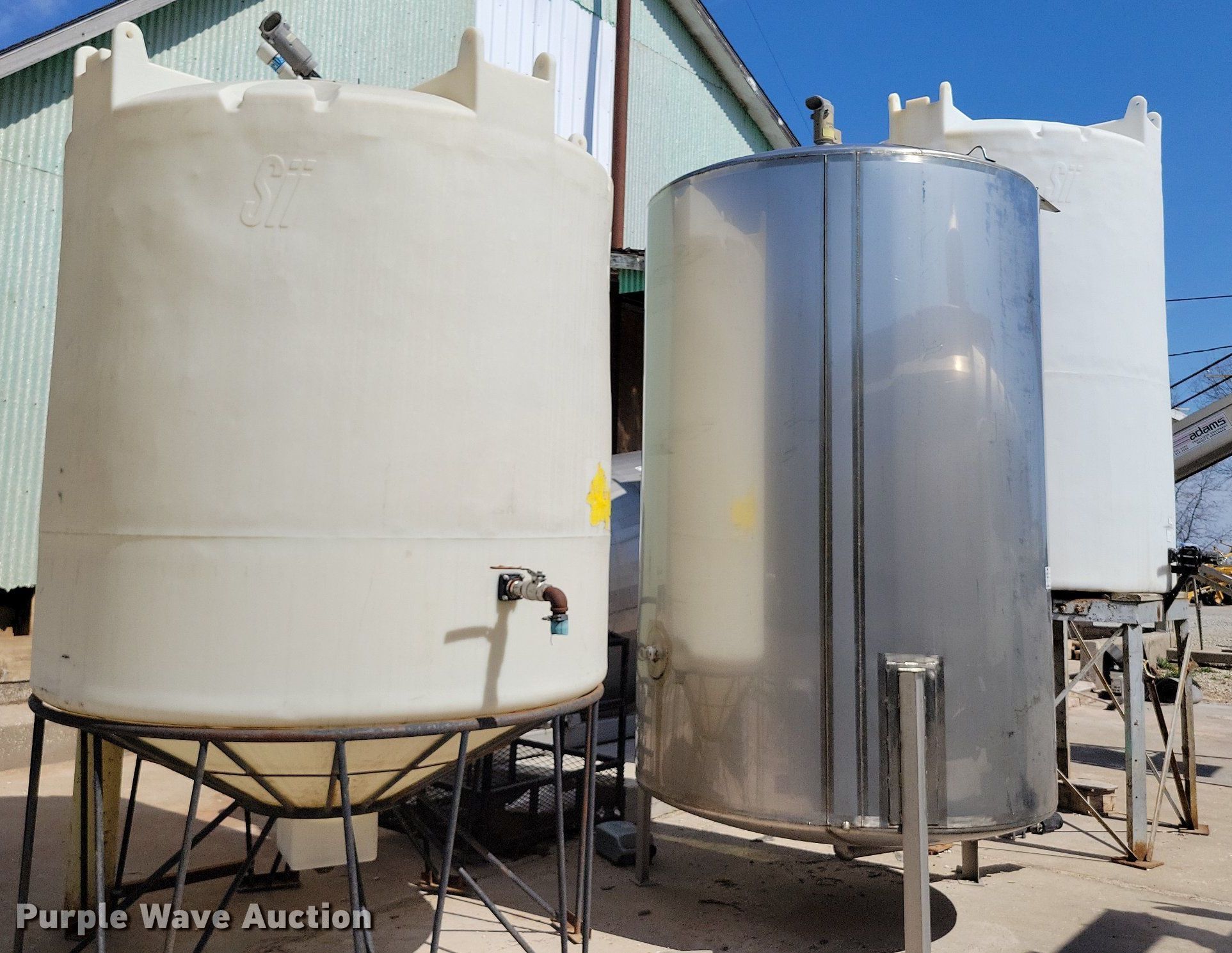 Purple Wave is selling a used Tanks in Missouri. This item is a (3) tanks with the following: Sii tank, Capacity: Approx. 3,000 gallons, Diameter: 92", Height with stand: 12', Sii tank, Capacity: Approx. 3,000 gallons, Diameter: 86", Height with stand: 15', Mid State Tank Co stainless tank, Capacity: 2,400 gallons, Dimensions: 84", Height with stand: 12'