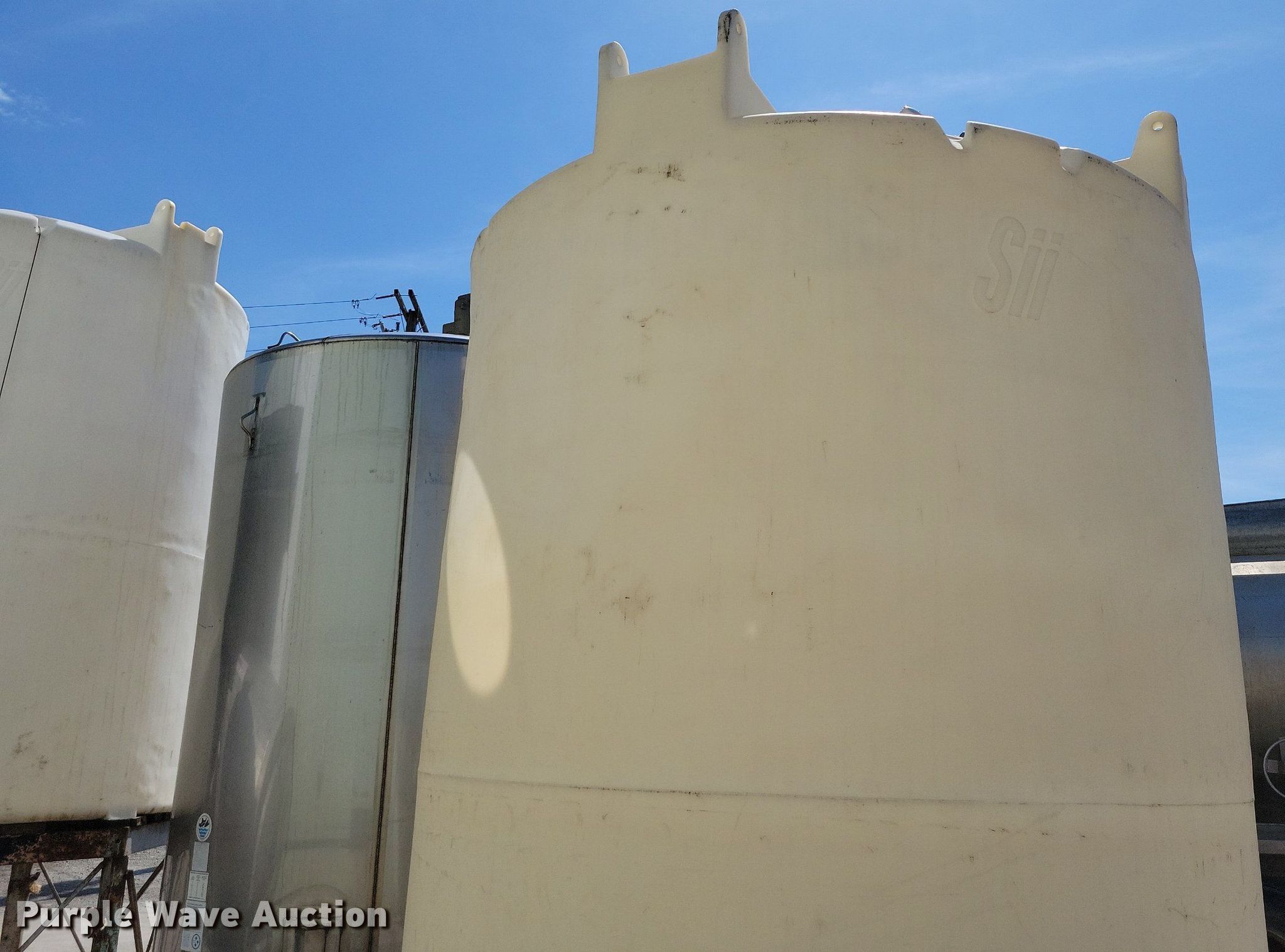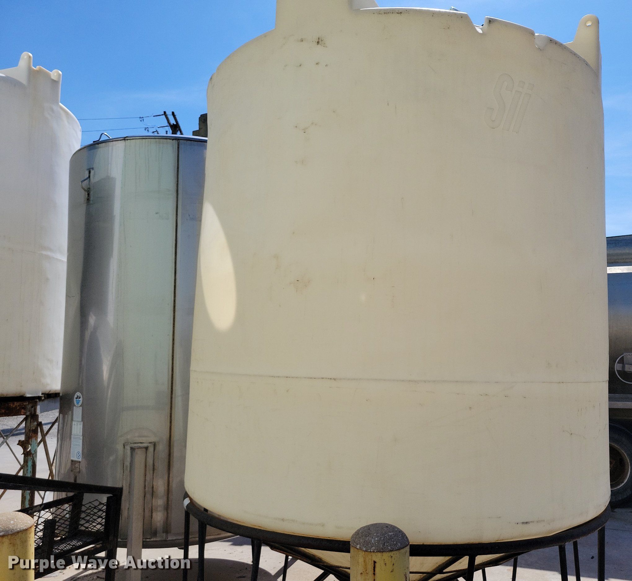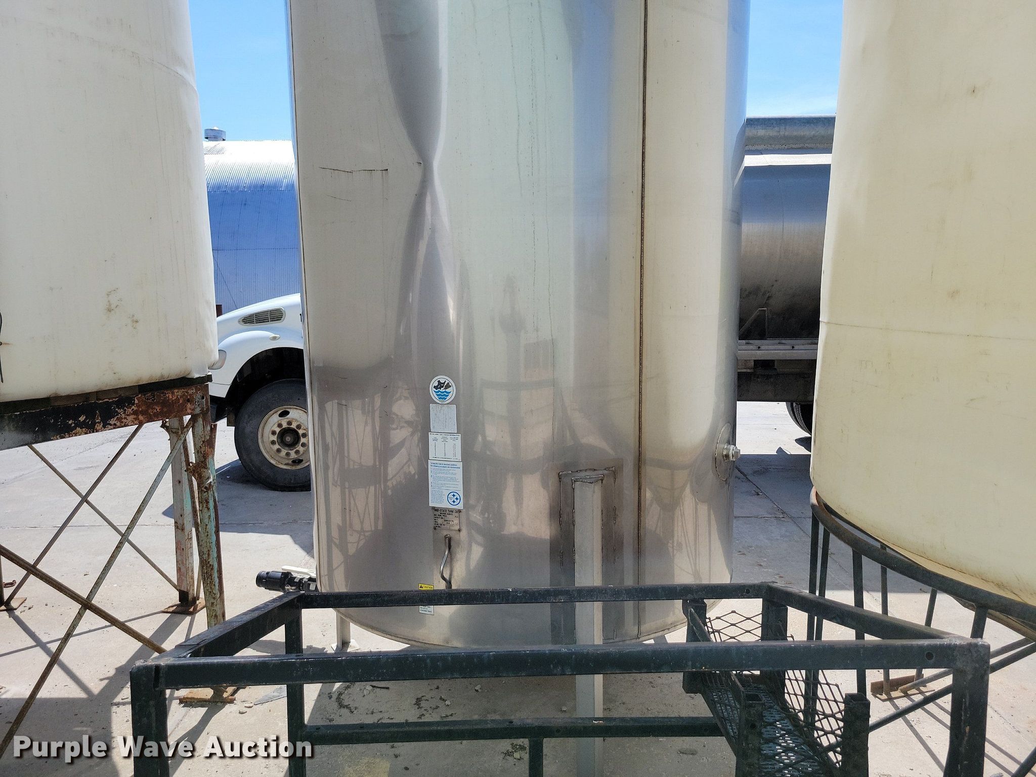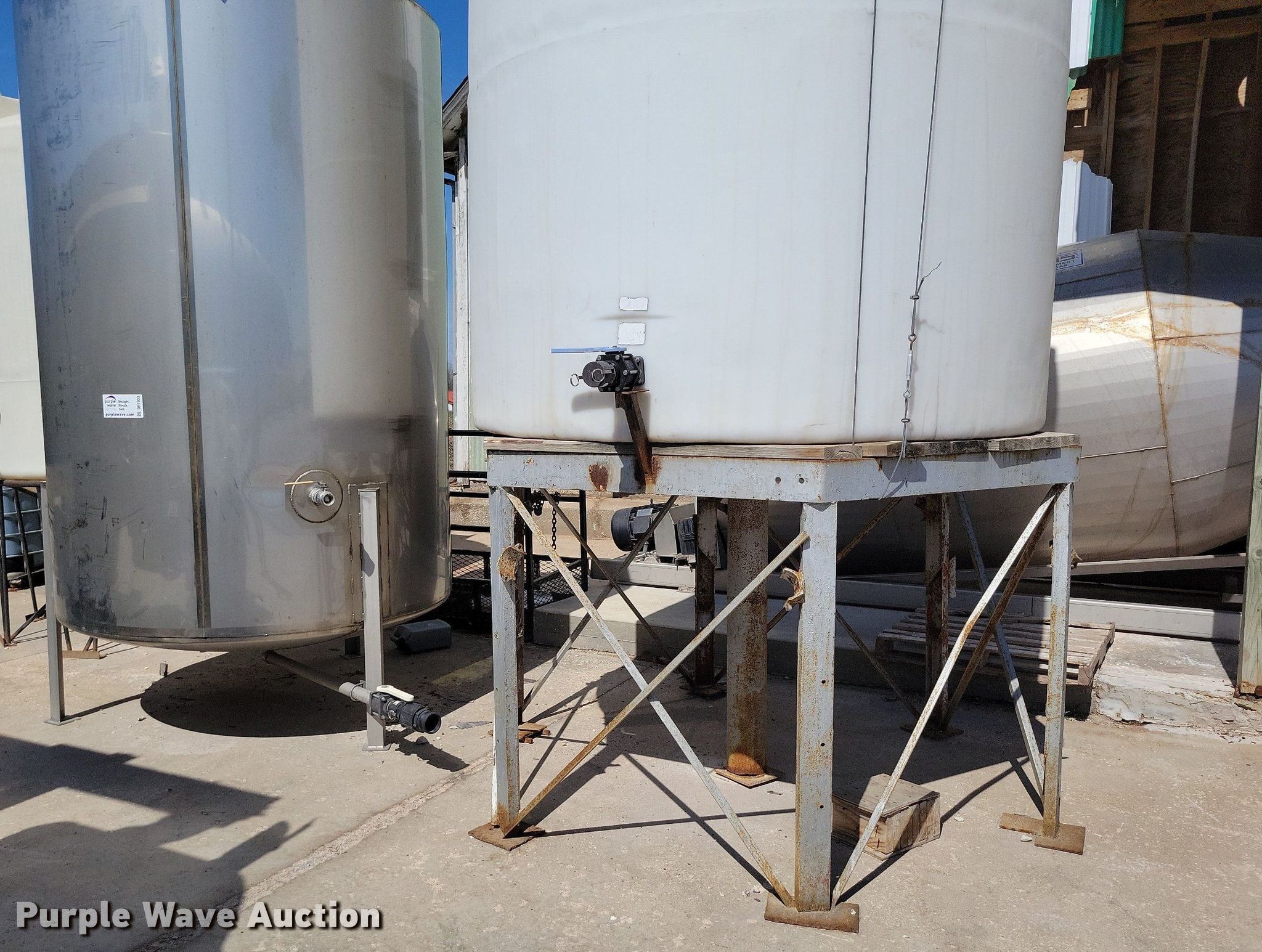 Purple Wave is selling a used Tanks in Missouri. This item is a (3) tanks with the following: Sii tank, Capacity: Approx. 3,000 gallons, Diameter: 92", Height with stand: 12', Sii tank, Capacity: Approx. 3,000 gallons, Diameter: 86", Height with stand: 15', Mid State Tank Co stainless tank, Capacity: 2,400 gallons, Dimensions: 84", Height with stand: 12'