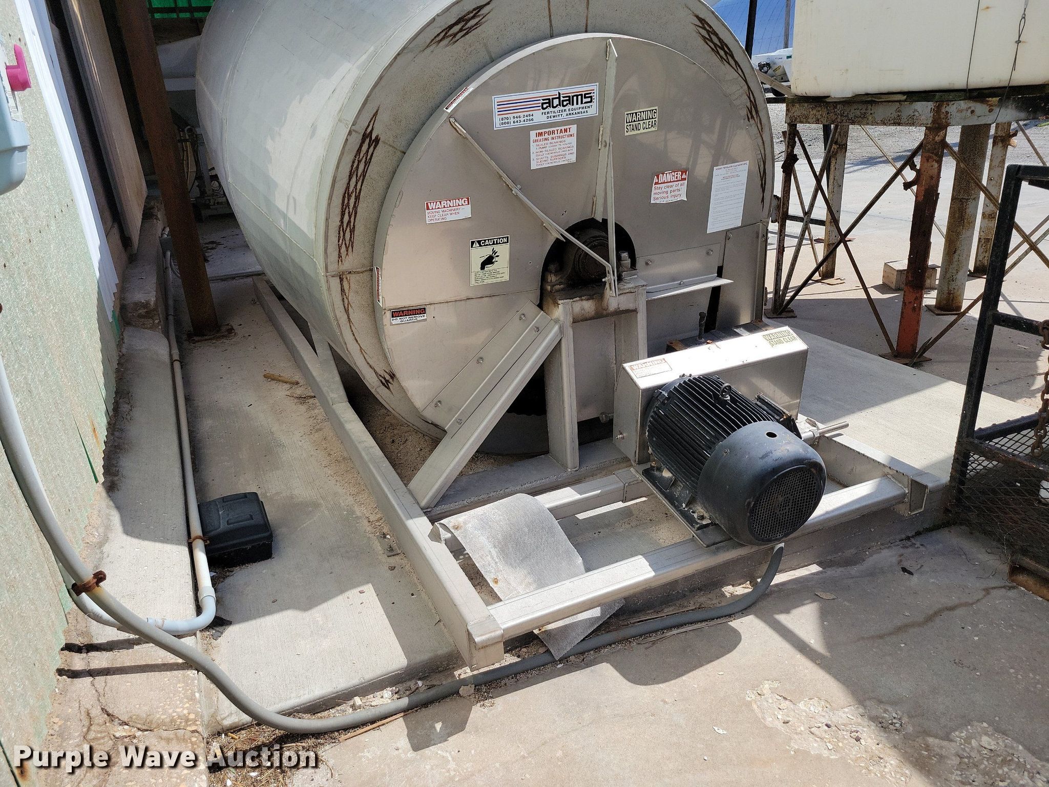 Adams W-XX fertilizer mixer. Serial: S-10-1667, Conveyor: 26' L x 24" W, Hopper: 10' x 8'. Electric motor North American Electric Serial: 13051929W, HP: 30, Volts: 208-230/460. Lawson, MO 64062