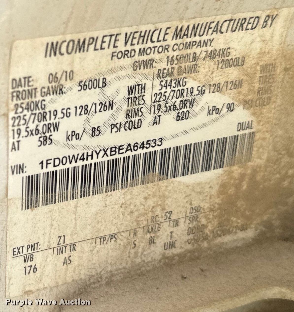 - VIN: 1FD0W4HYXBEA64533