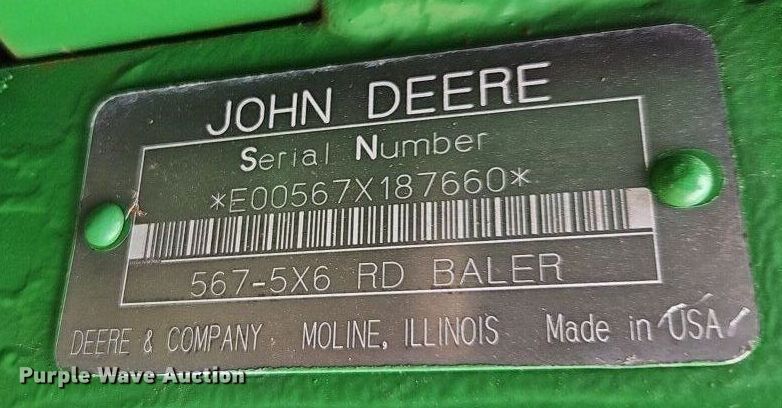 Purple Wave is selling a used Round Baler in Missouri. This item is a 2002 John Deere 567 round baler with the following: Bale count: 4,917, Serial: E00567X187660