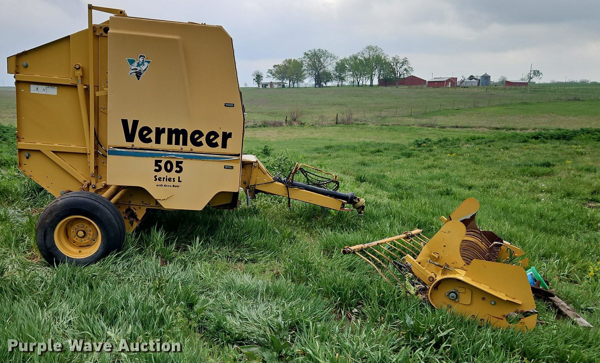 Purple Wave is selling a used Round Baler in Kansas. This item is a 1999 Vermeer 505 Series L round baler with the following: Serial: 1VRB11190Y1000773