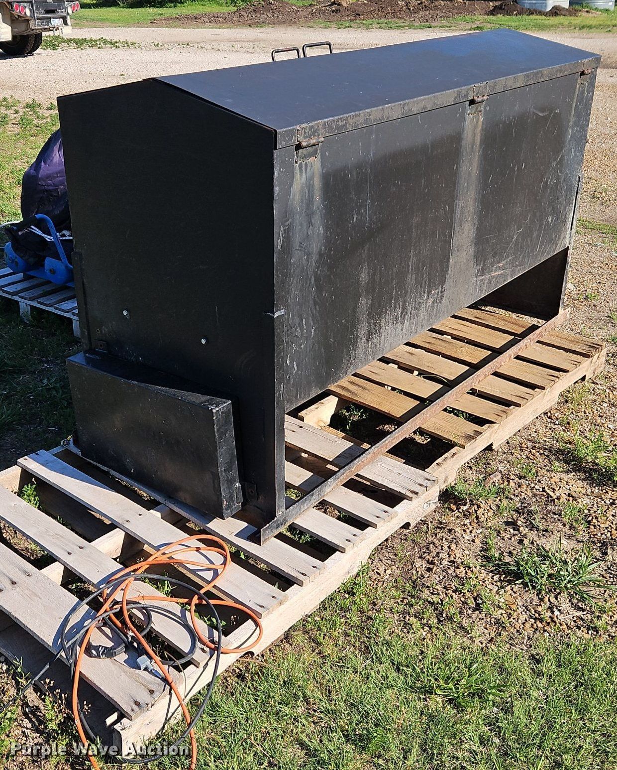 Purple Wave is selling a used Livestock Equip. in Kansas. This item is a Cake feeder with the following: Leeson C4D6NK4A electric motor, Volts: 12, HP: 3/4