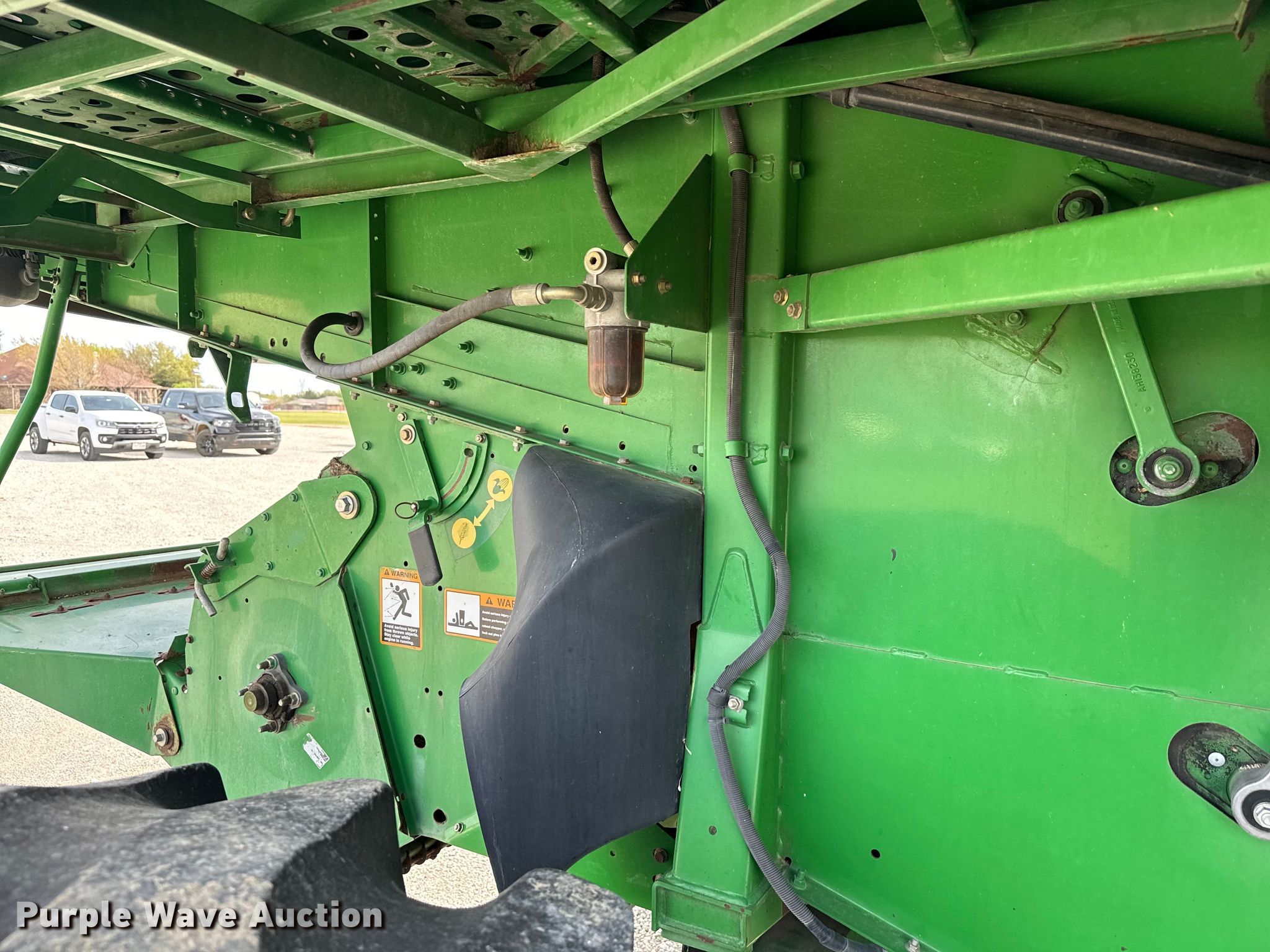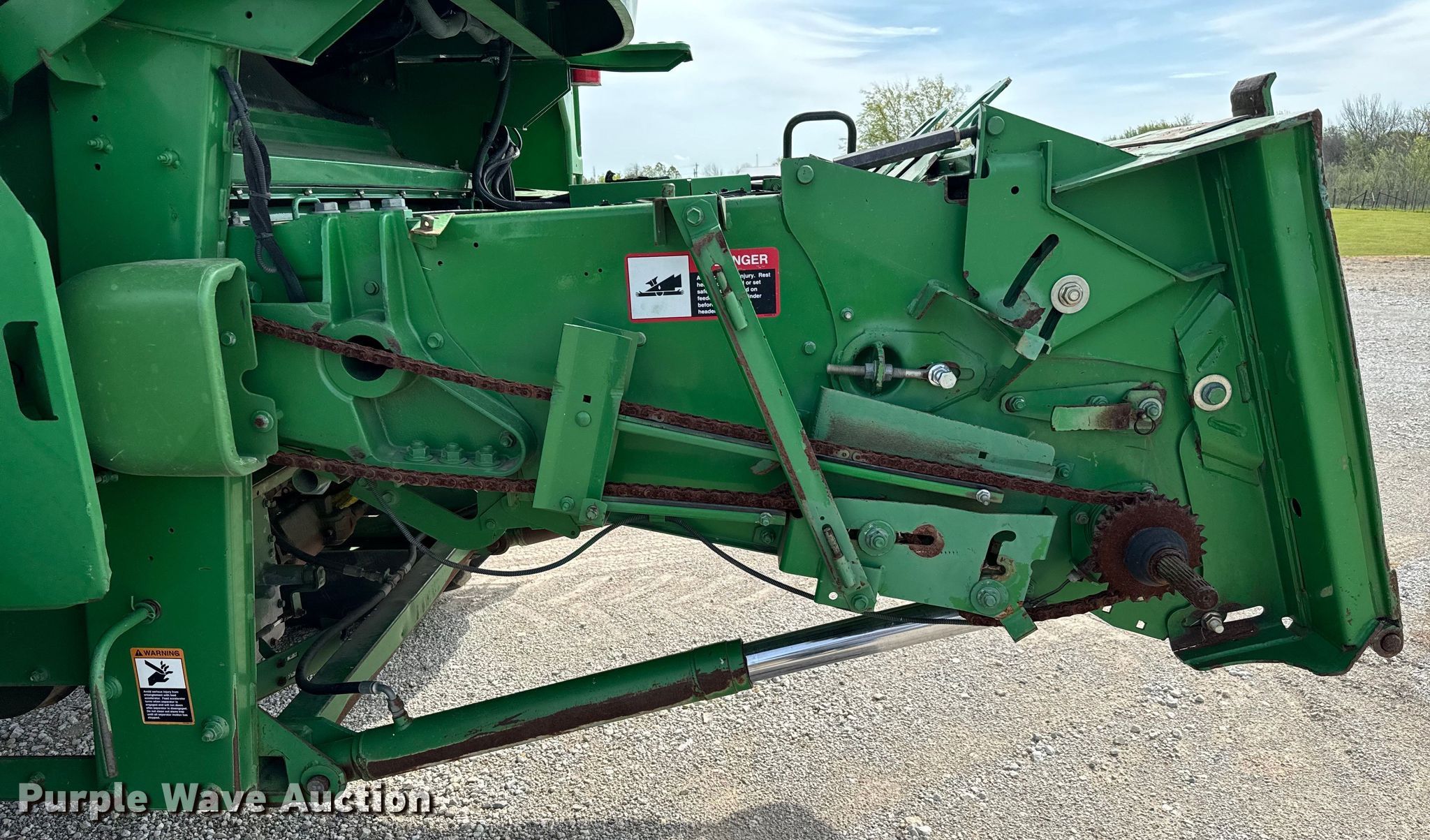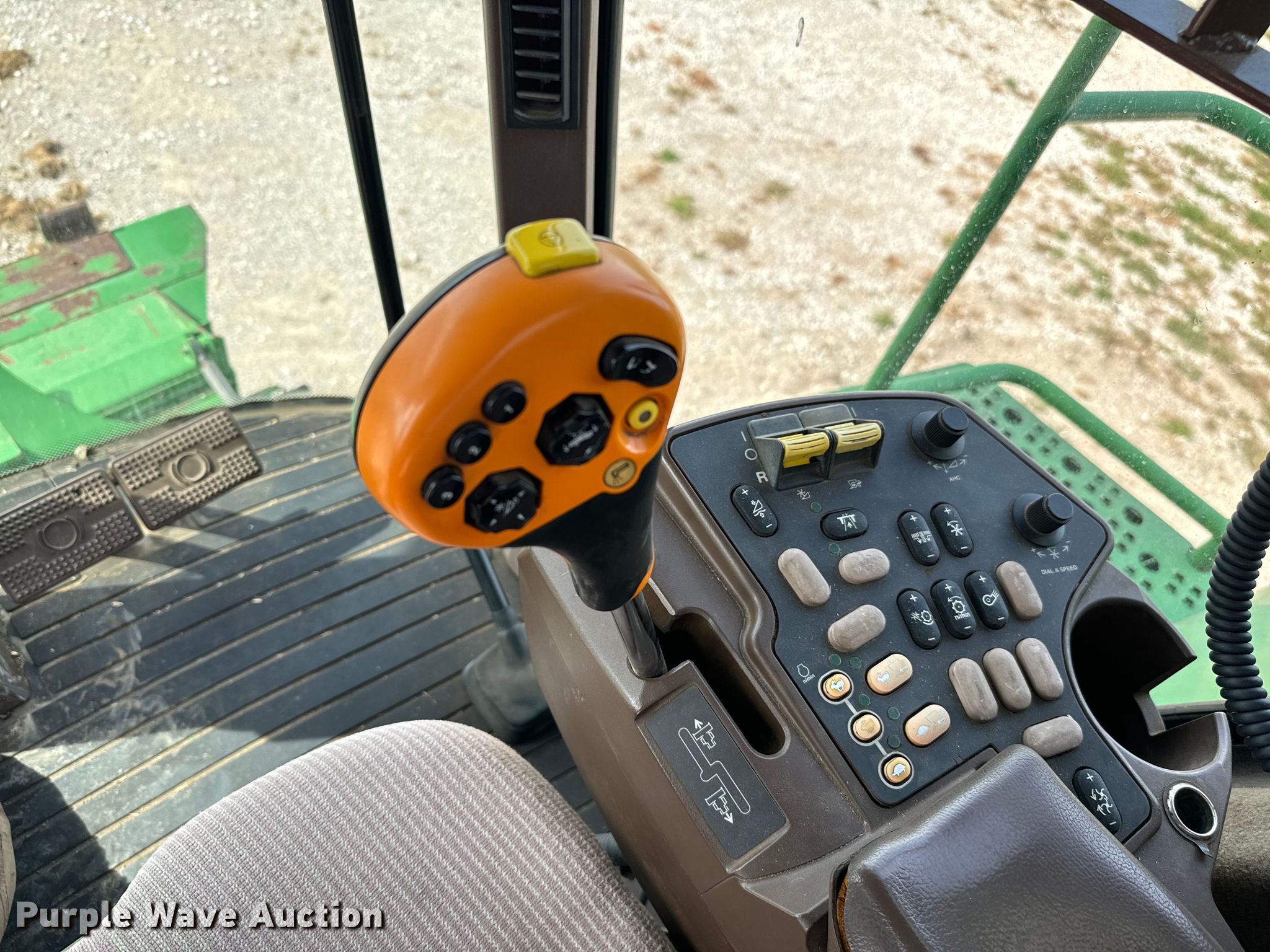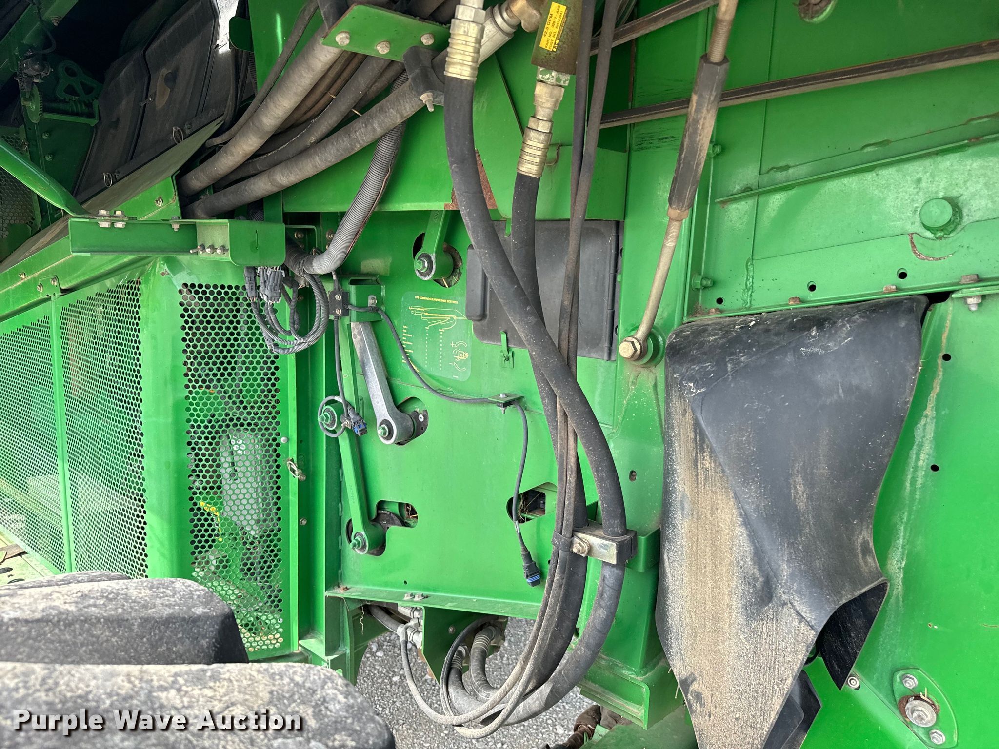 2006 John Deere 9760 STS RWA combine. Engine hours: 6,899 on meter, Separator hours: 4,617 on meter, Serial: H09760S715544. Engine John Deere, Cylinders: 6, Fuel type: Diesel. Transmission Hydrostatic. Interior AC, Heat. Features Single point header coupler, Feederhouse: Lateral tilt, Variable speed, Power tailboard, Bin: Extensions, Unloading auger length: 20'. Tires Front: 800/70R38, Rear: 28L-26. Notes Engine replaced July 2020. View repairs. HOLLOWAY HARVESTING. Krum, TX 76249