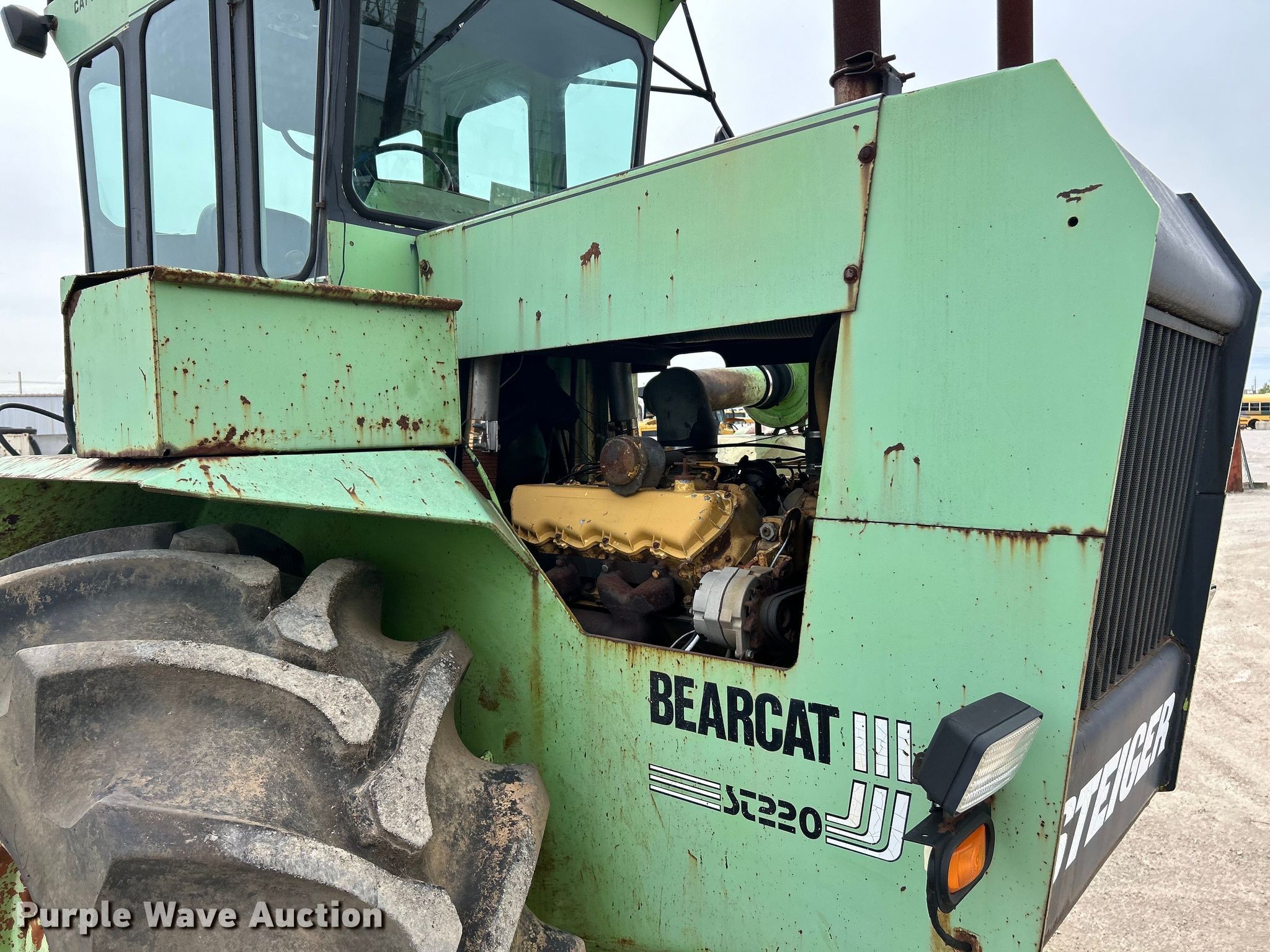 Steiger Bearcat III ST220 4WD tractor. Hours: 4,122 on meter, Serial: 2392. Engine Cylinders: 8, Fuel type: Diesel. Transmission Manual. Operators station AC, Heat. Features Three point Top link, Quick attach, Hydraulic remote sets Rear: 2. Tires Size: 28L-26. Notes AC compressor issues, no belt. Ahrens Contracting. St. Louis, MO 63104