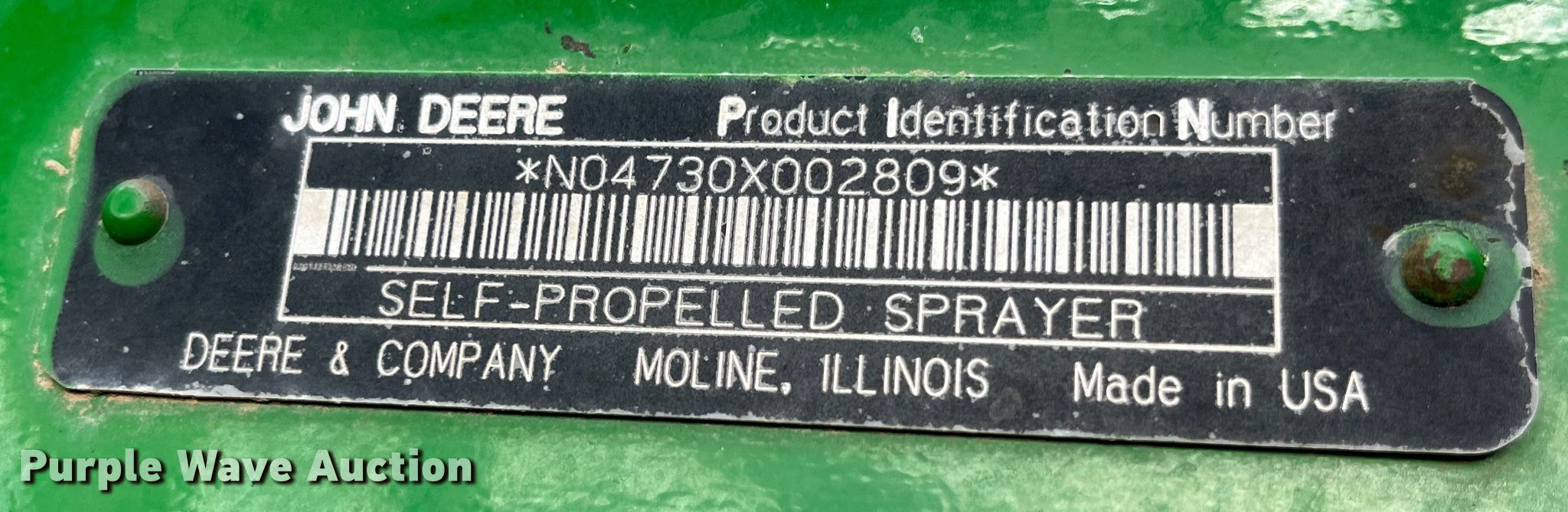 Purple Wave is selling a used Applicator Self Propelled in Missouri. This item is a 2008 John Deere 4730 sprayer with the following: Engine hours: 5,244 on meter, Serial: N04730X002809