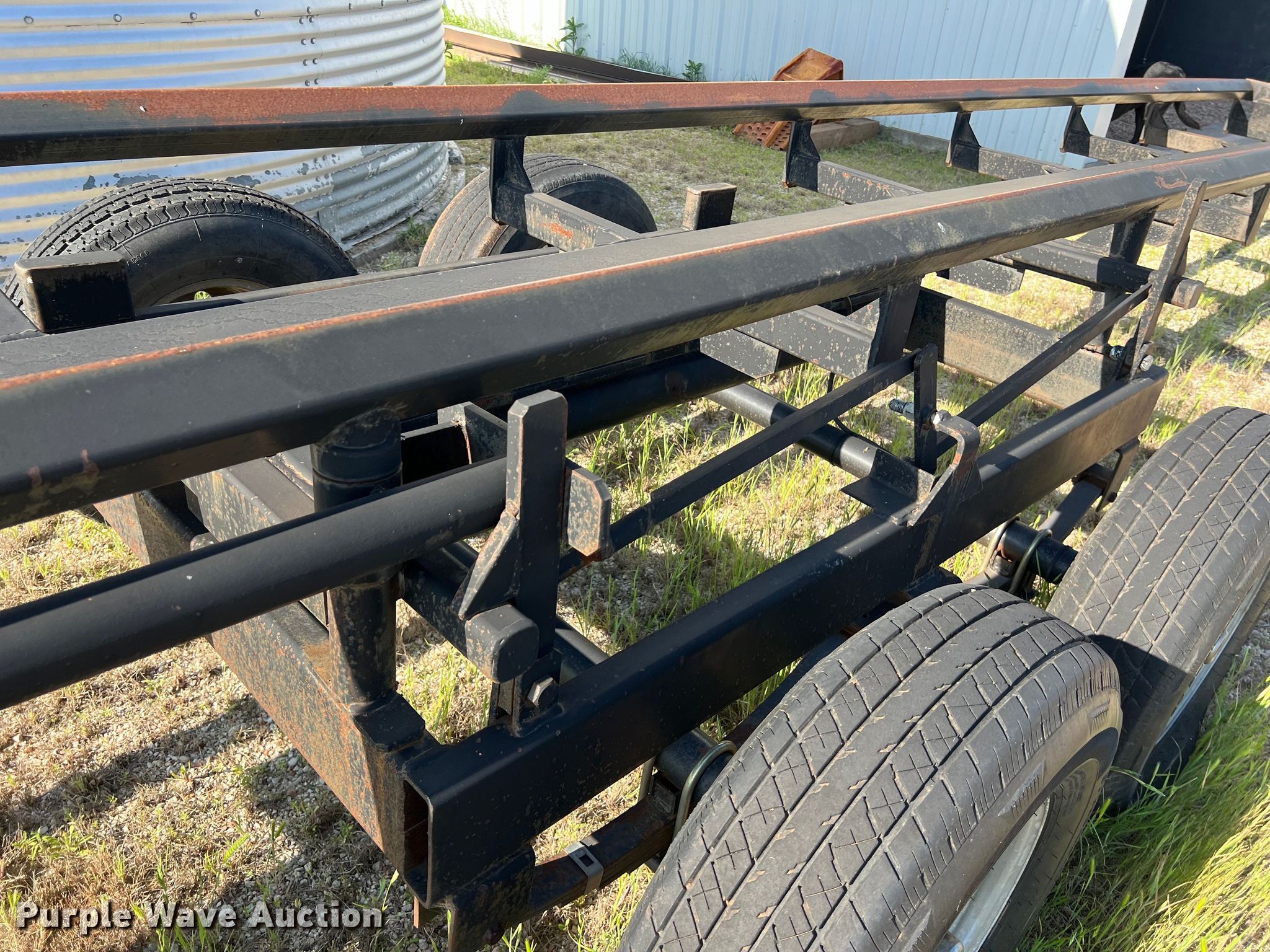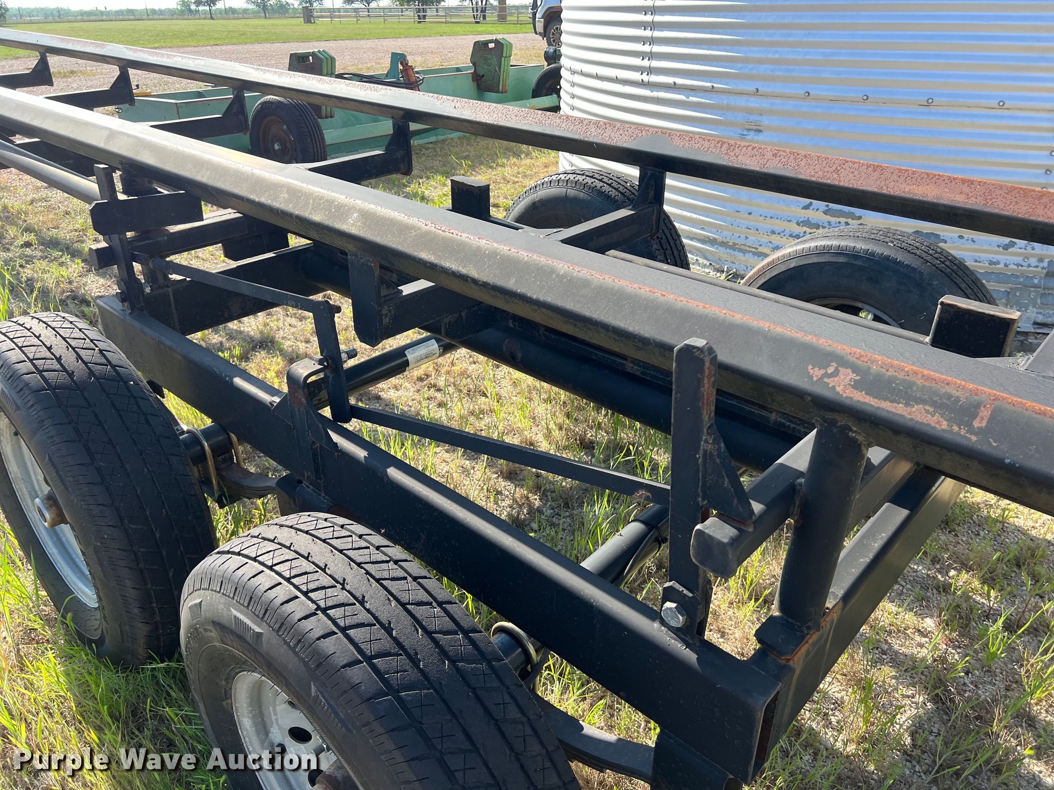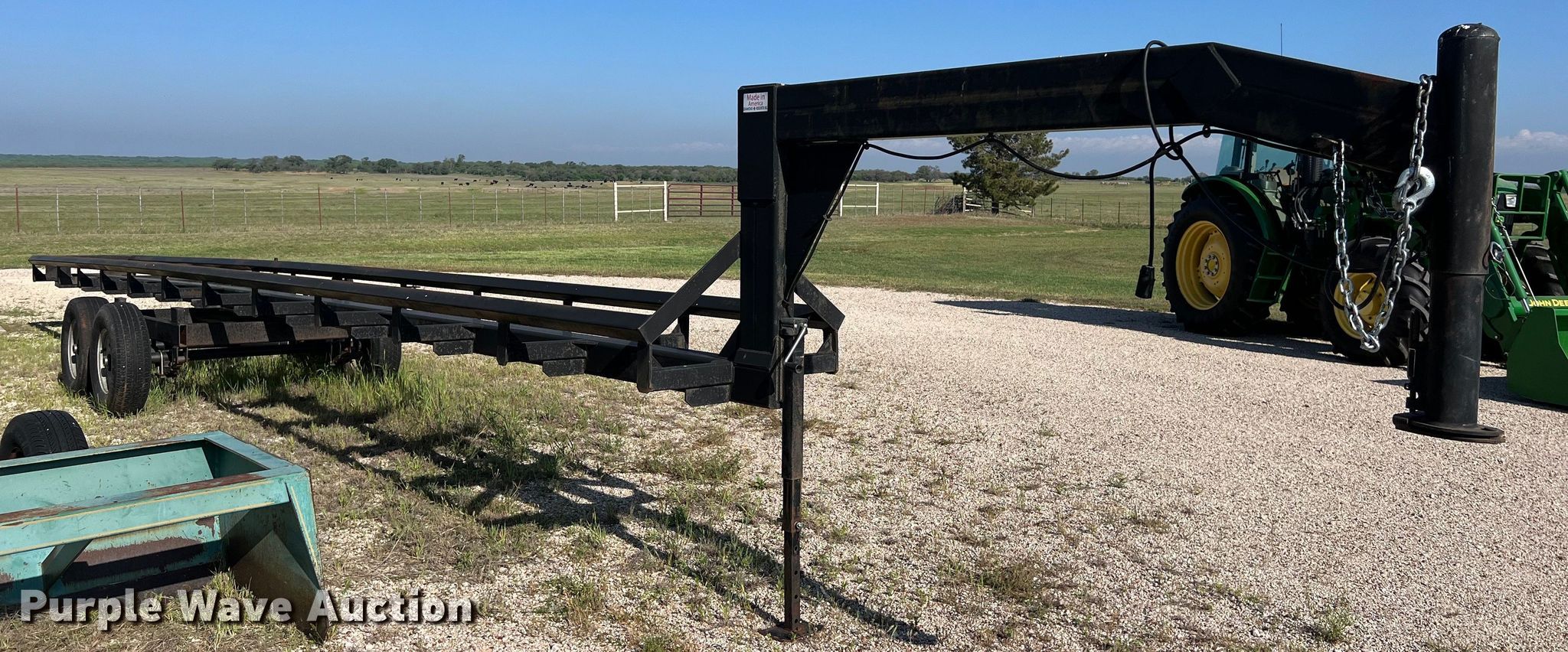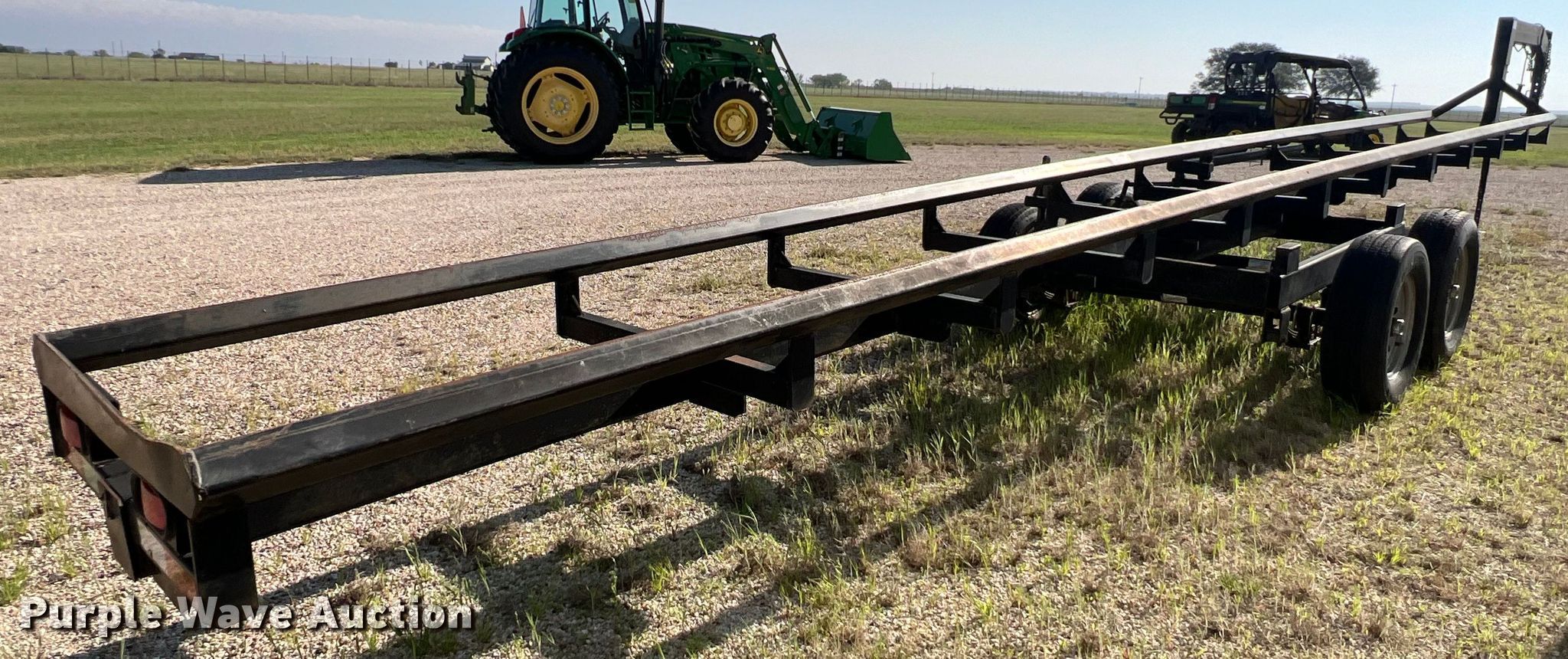 Purple Wave is selling a used Hay Handling in Texas. This item is a Diamond Resources hay bale trailer with the following: Overall: 44' 4" L x 6' 5" W, Body: 36' L x 3' W