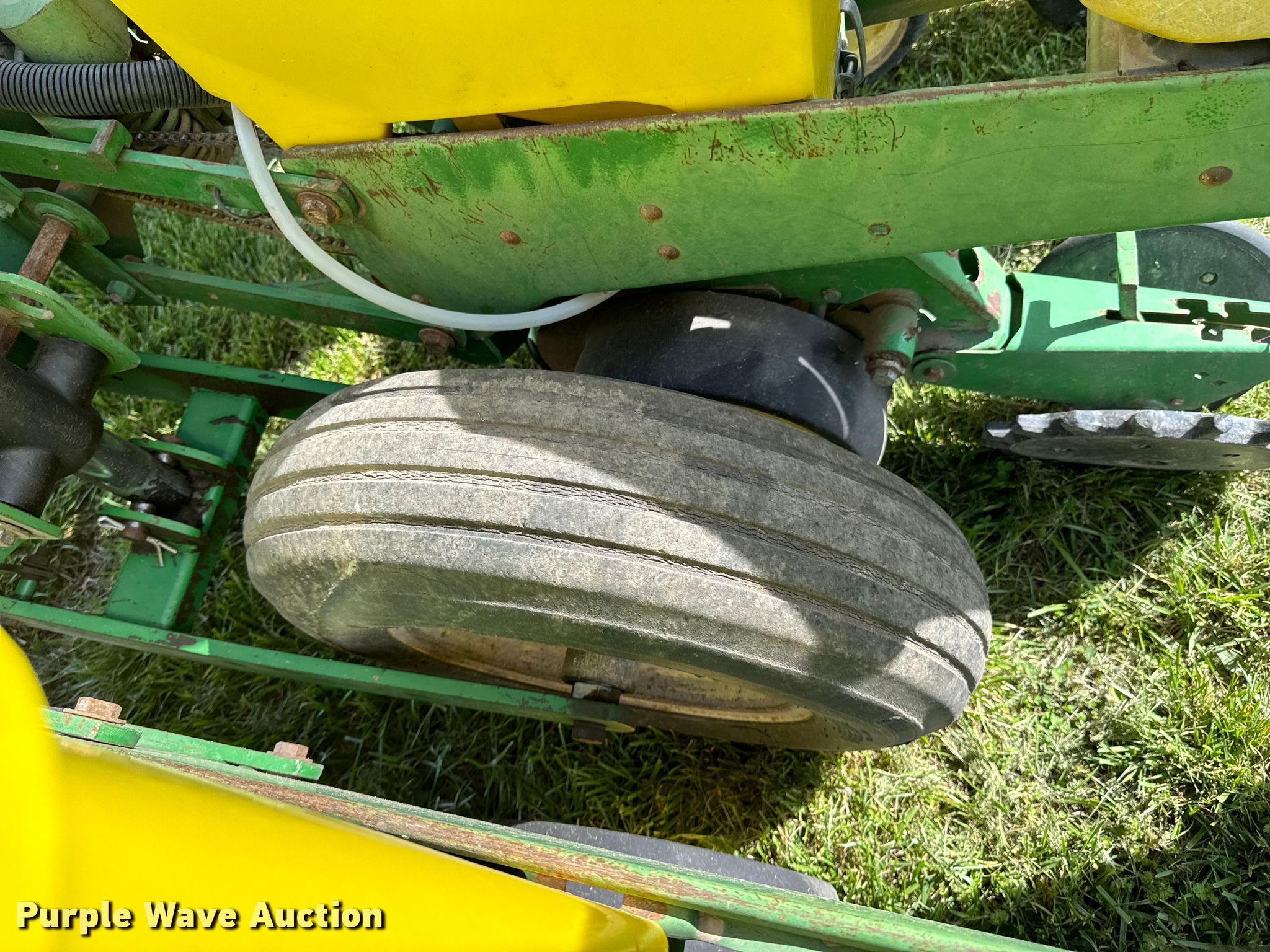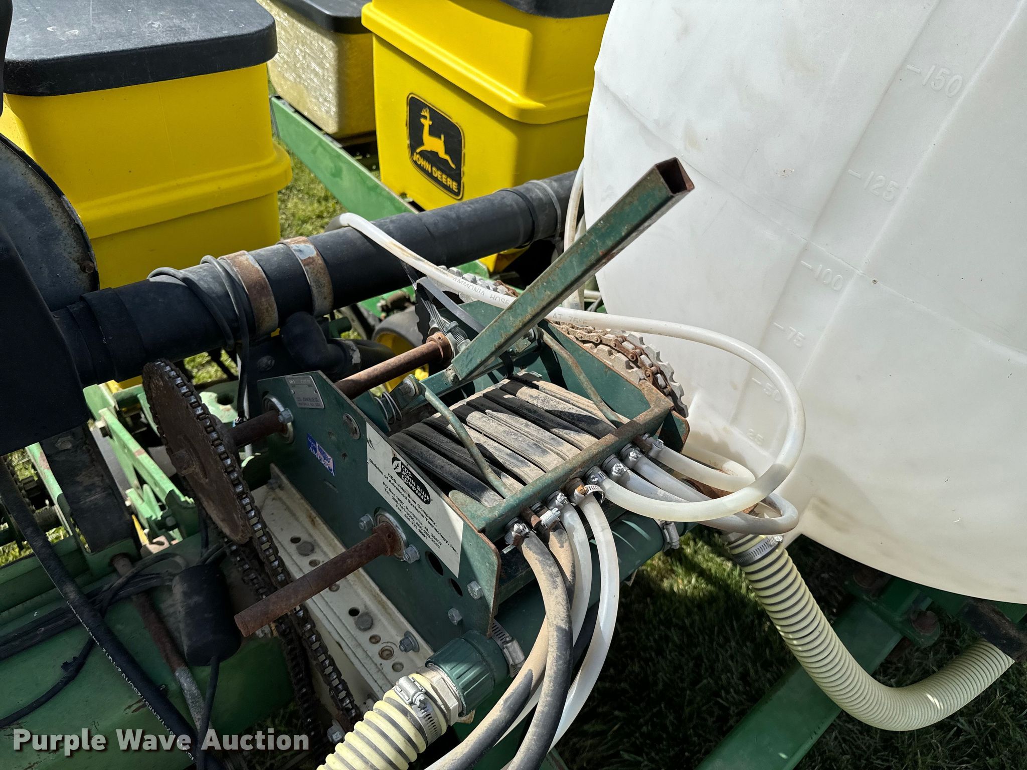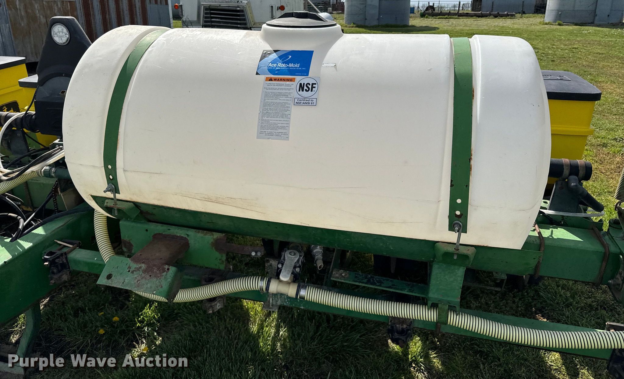 John Deere 7200 planter. Row units: 8, Row spacing: 30", Serial: A07200E205278. Features Frame Marker arm, Seed delivery Individual seed hoppers, Capacity: 2 bushels, Row units Vacuum metering, Meter drive: Ground, Precision, Down pressure: Spring, No-till coulters, Disk openers: Double, Gauge wheels: Double, Closing system: Double Type: Rubber, Spiked, Fertilizer/ insecticide Fertilizer Liquid capacity: 400 gallons, Electronics Monitor John Deere Computrack 150, John Blue 8B-1 fertilizer pump. Tires Transport tire size: 7.60-15SL. Notes Additional parts included. Nash Farms. Parsons, KS 67357