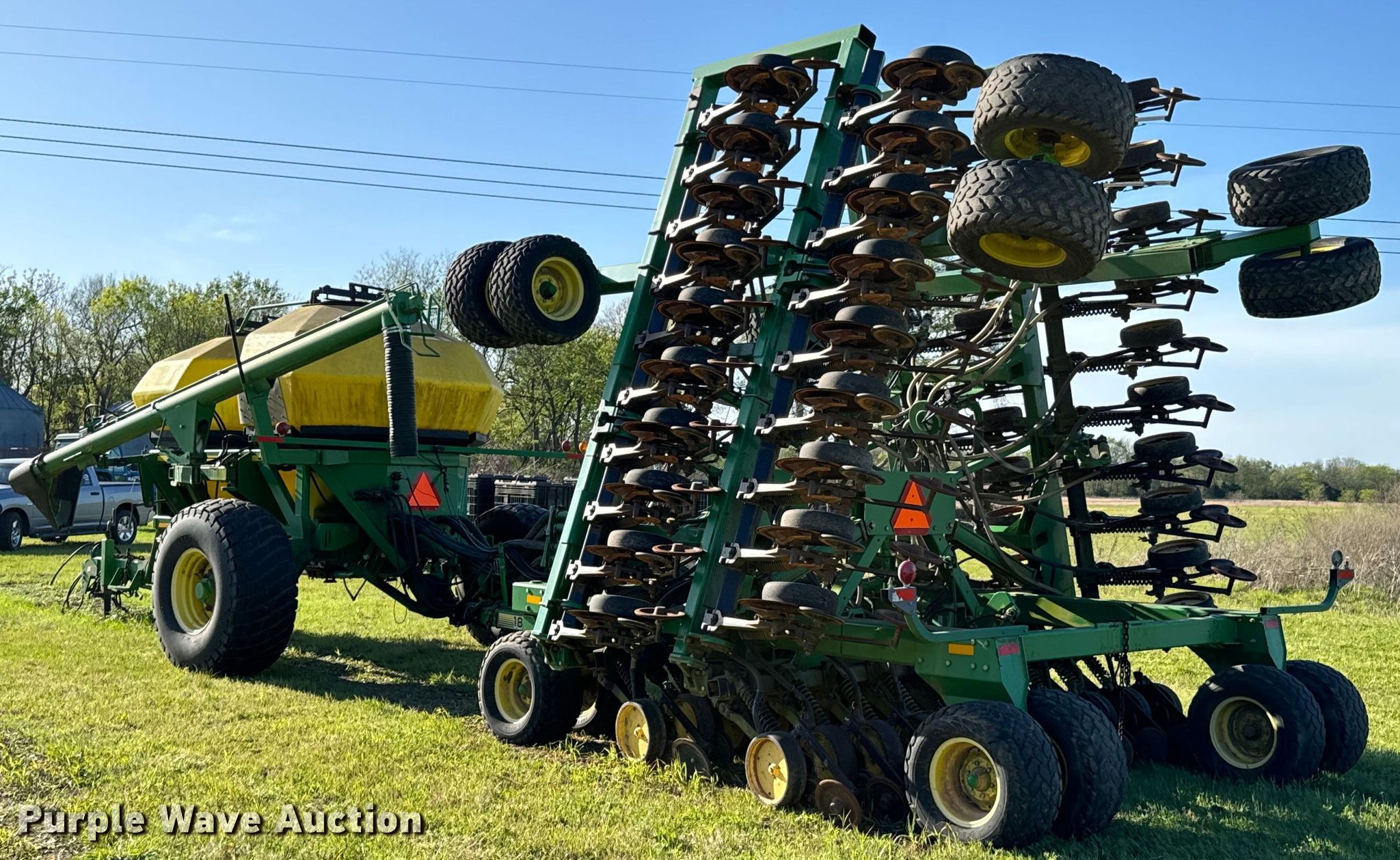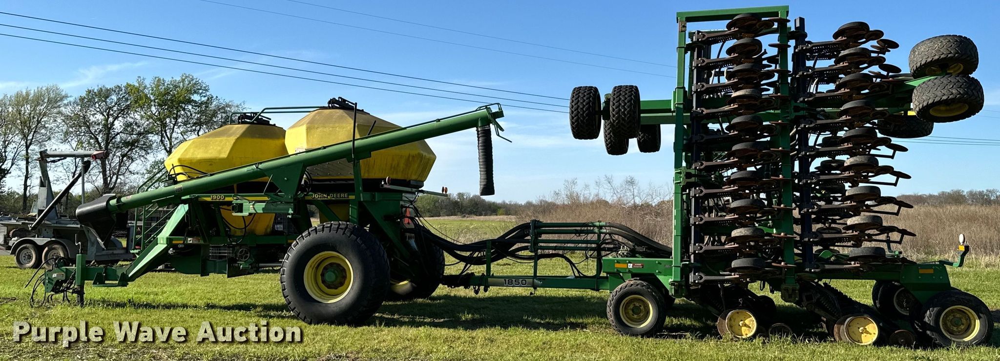 Purple Wave is selling a used Air Seeder in Oklahoma. This item is a John Deere 1850 air seeder with the following: Width: 42', Row units: 60, Row spacing: 7.5", Serial: H01850X671802