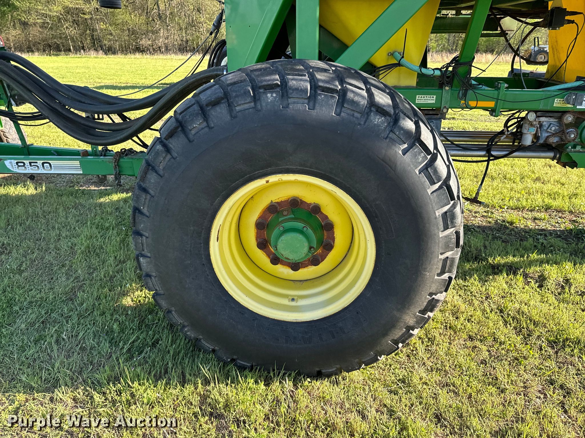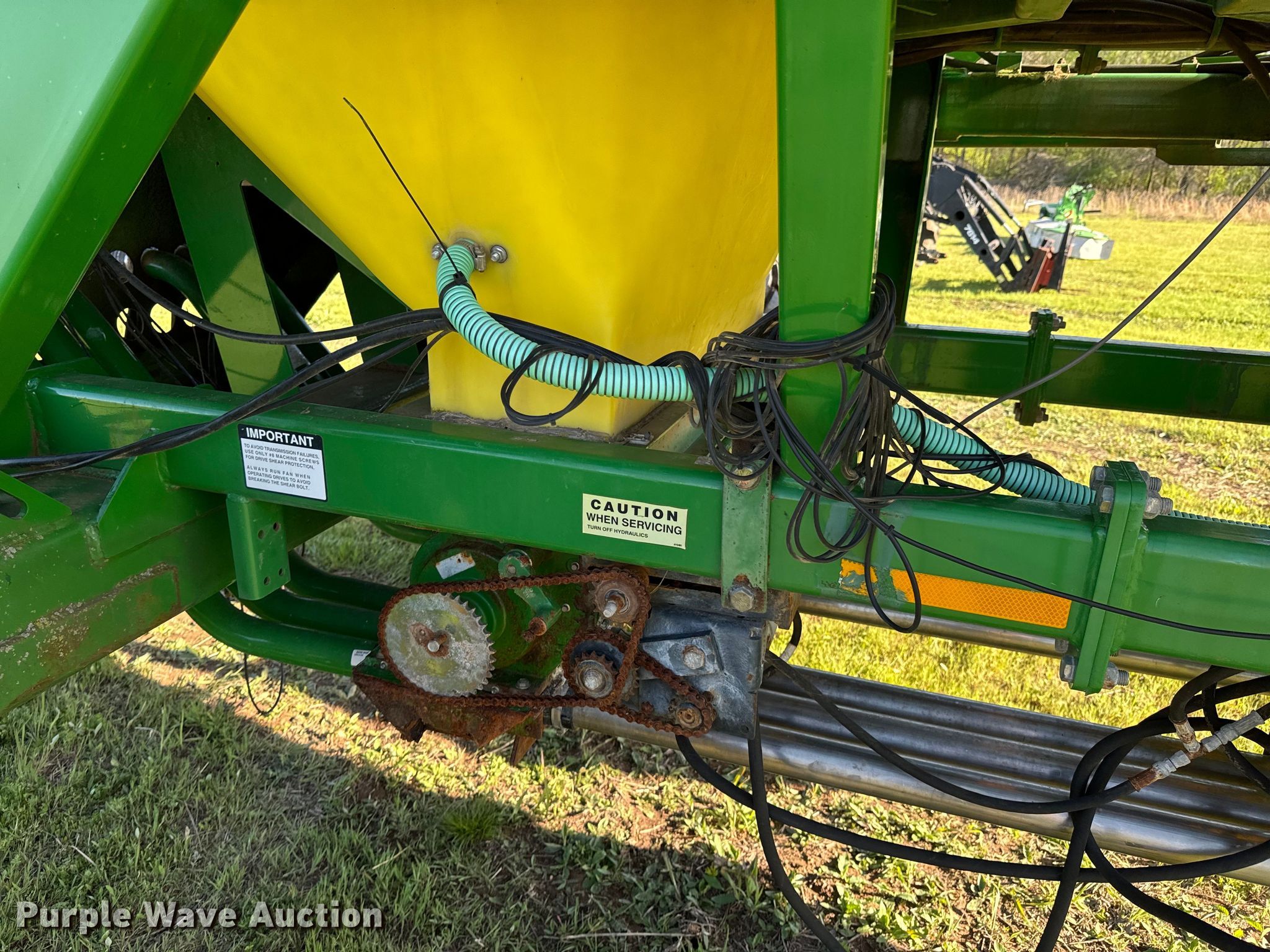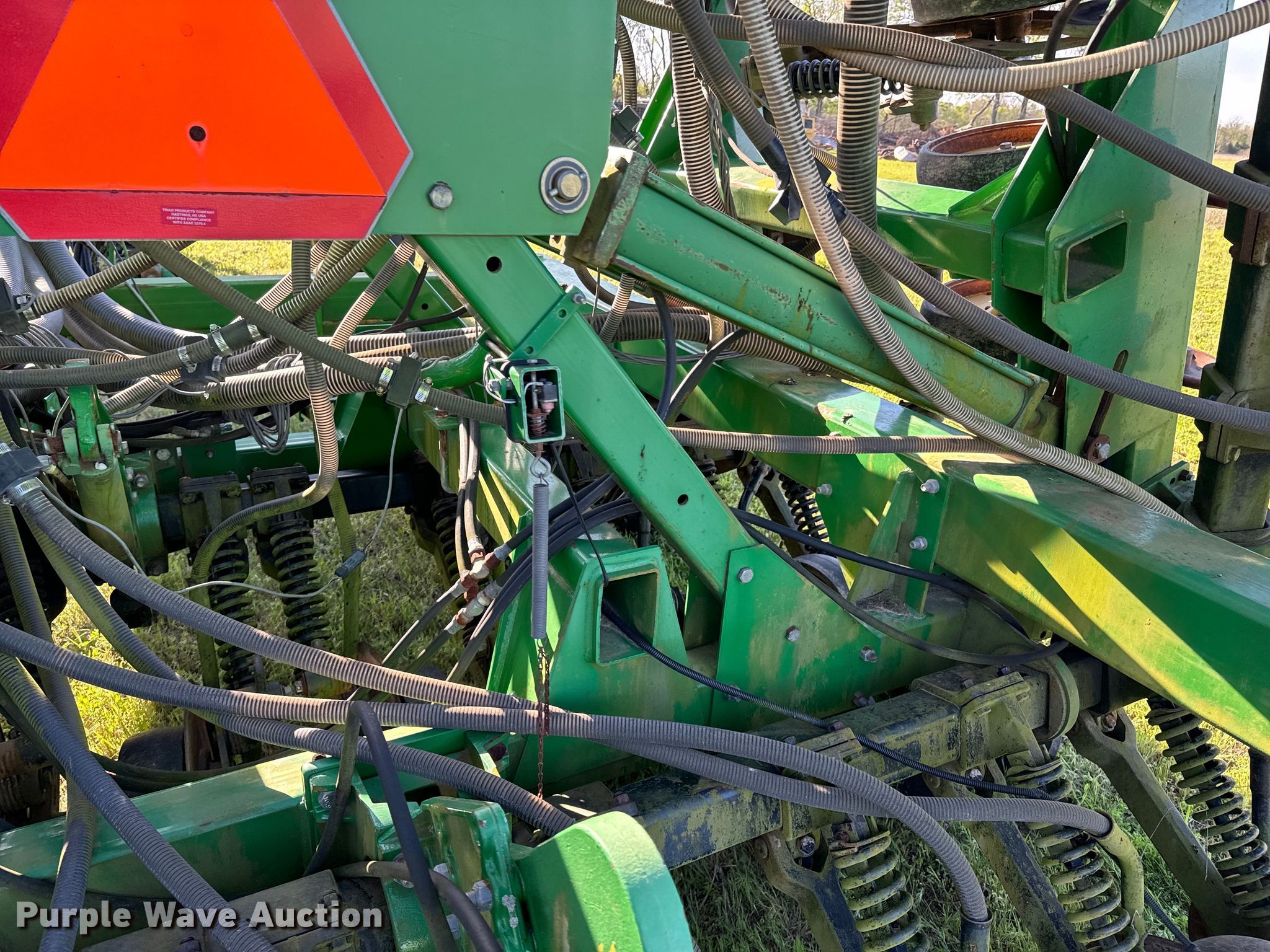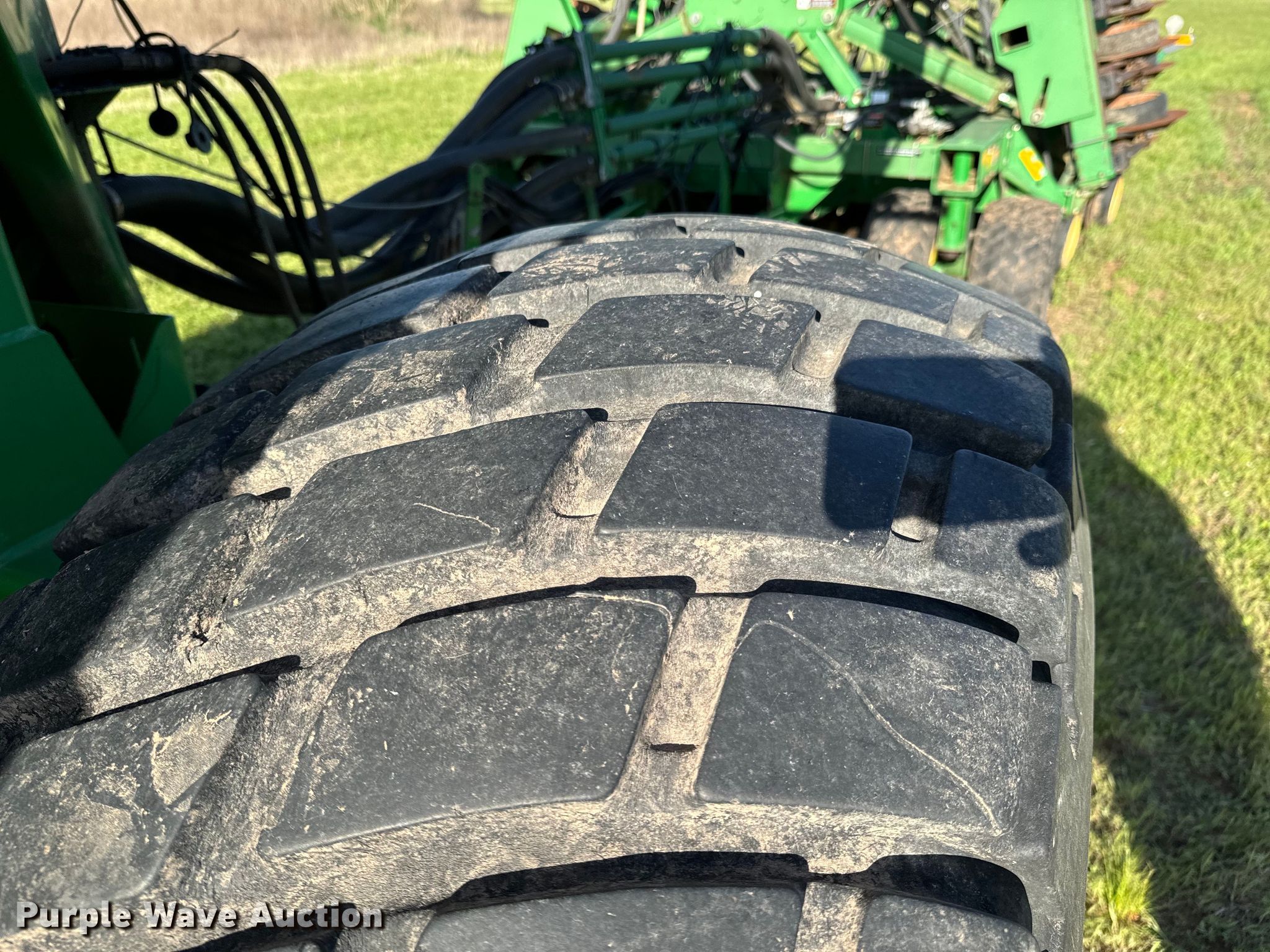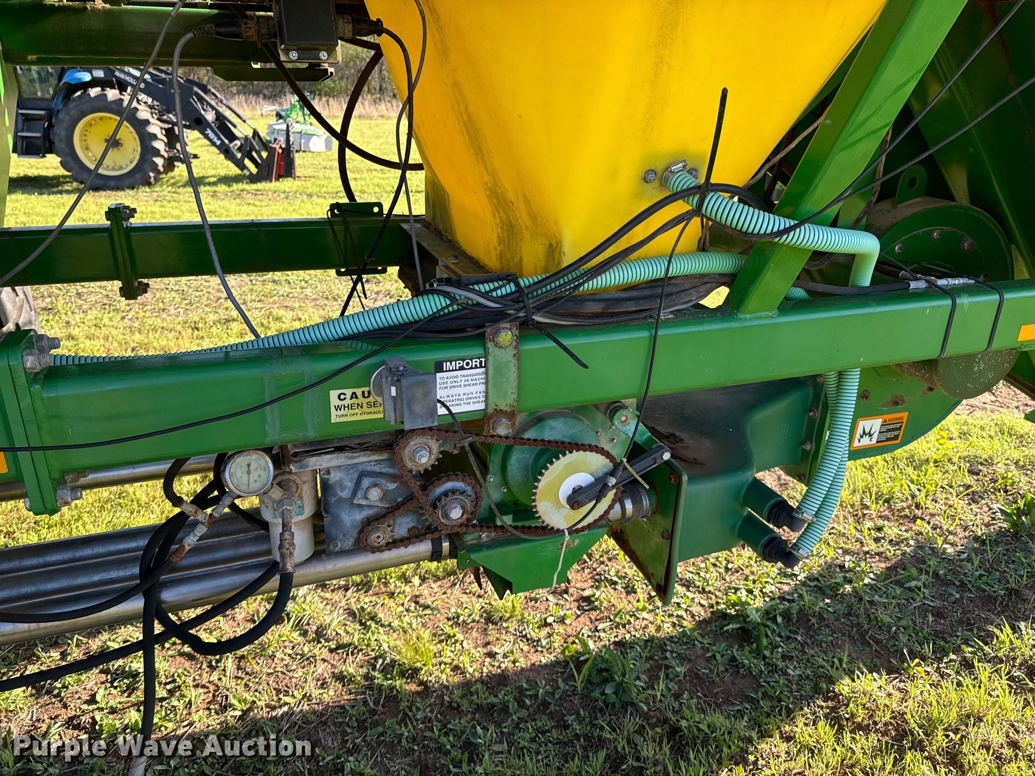 John Deere 1850 air seeder. Width: 42', Row units: 60, Row spacing: 7.5", Serial: H01850X671802. Features Frame Hydraulic fold Wing fold, Seed delivery Bulk fill system, Air commodity cart John Deere 1900, Row units Vacuum metering, Meter drive: Ground, Seed meters: Soybeans, Down pressure: Hydraulic, Disk openers: Single, Gauge wheels: Single, Closing system: Single Type: Cast, Fertilizer/ insecticide Fertilizer Dry capacity: 14,000 lbs.. Tires Transport tire size: 31x13.50-15 Quantity: 8, Drive/ outside tire size: 31x13.50-15 Quantity: 8, Cart tire size: 23.1-26. Franklin Farms. Vinita, OK 74301