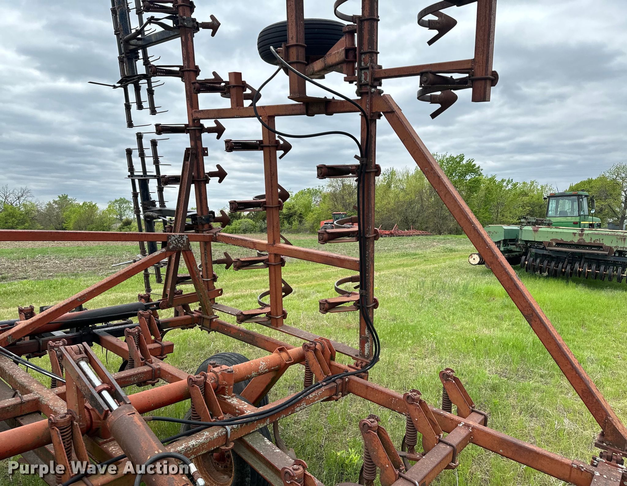 Bush Hog 23G field cultivator. Overall width: 32', Serial: 06-217. Features Shanks: 66, Operation Hydraulic lift, Hydraulic fold, Walking tandem axle, Attachments Tine harrow Harrow bars: 3.. Tires Tire size: 9.5L-15SL. Stark, KS 66775