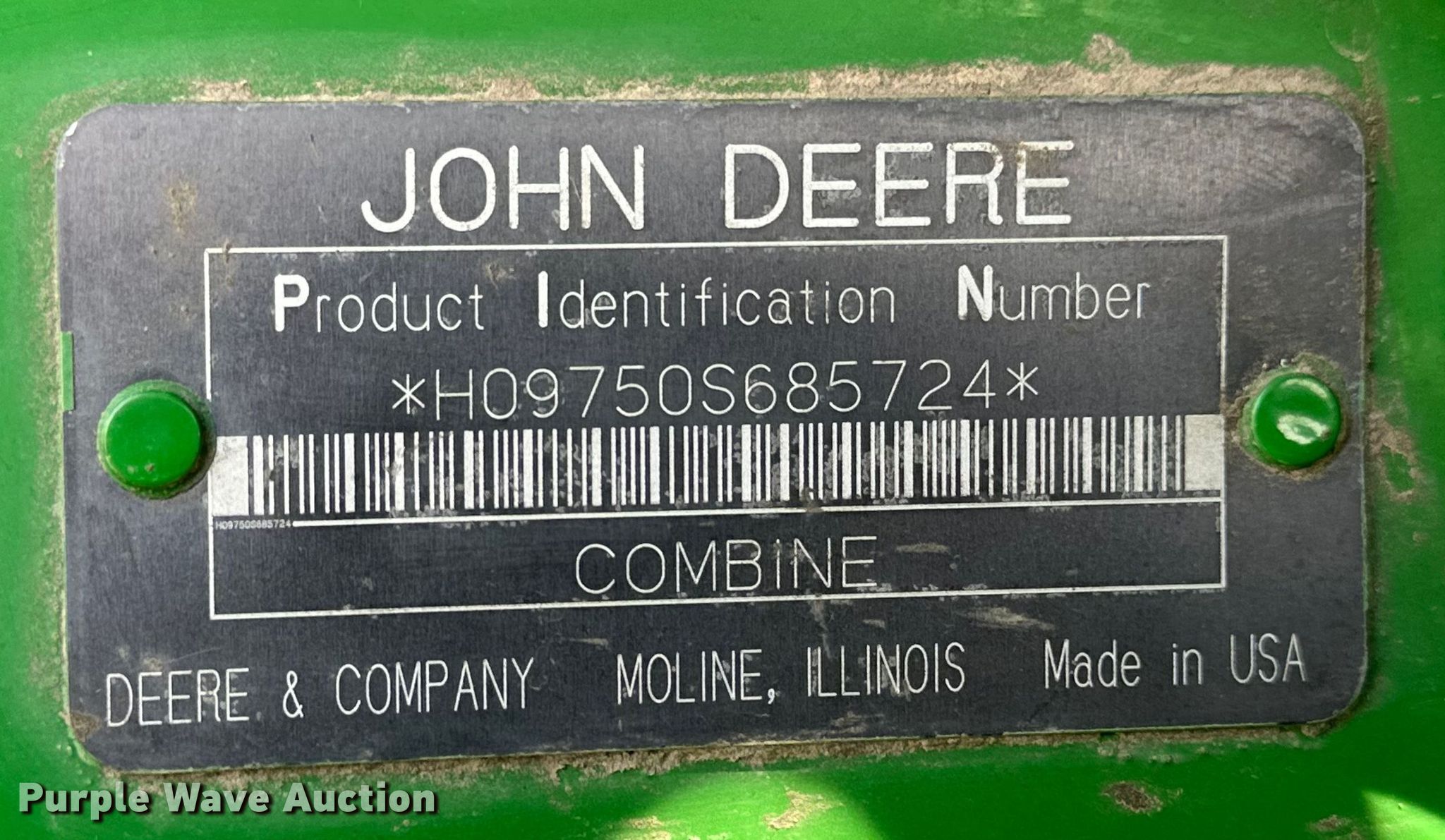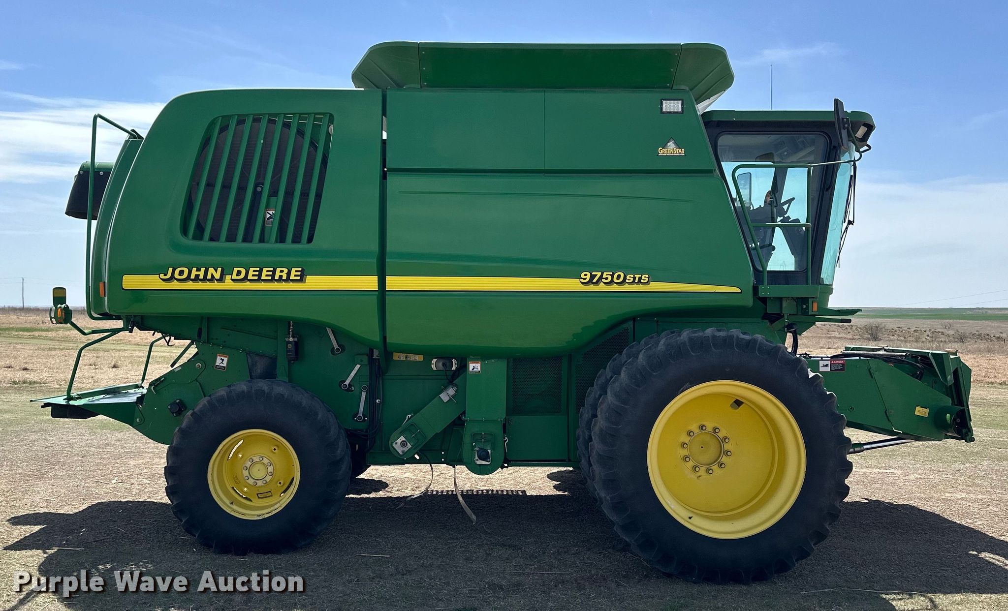 Purple Wave is selling a used Combine in Kansas. This item is a 2000 John Deere 9750STS combine with the following: Engine hours: 5,183 on meter, Separator hours: 3,335 on meter, Serial: H09750S685724