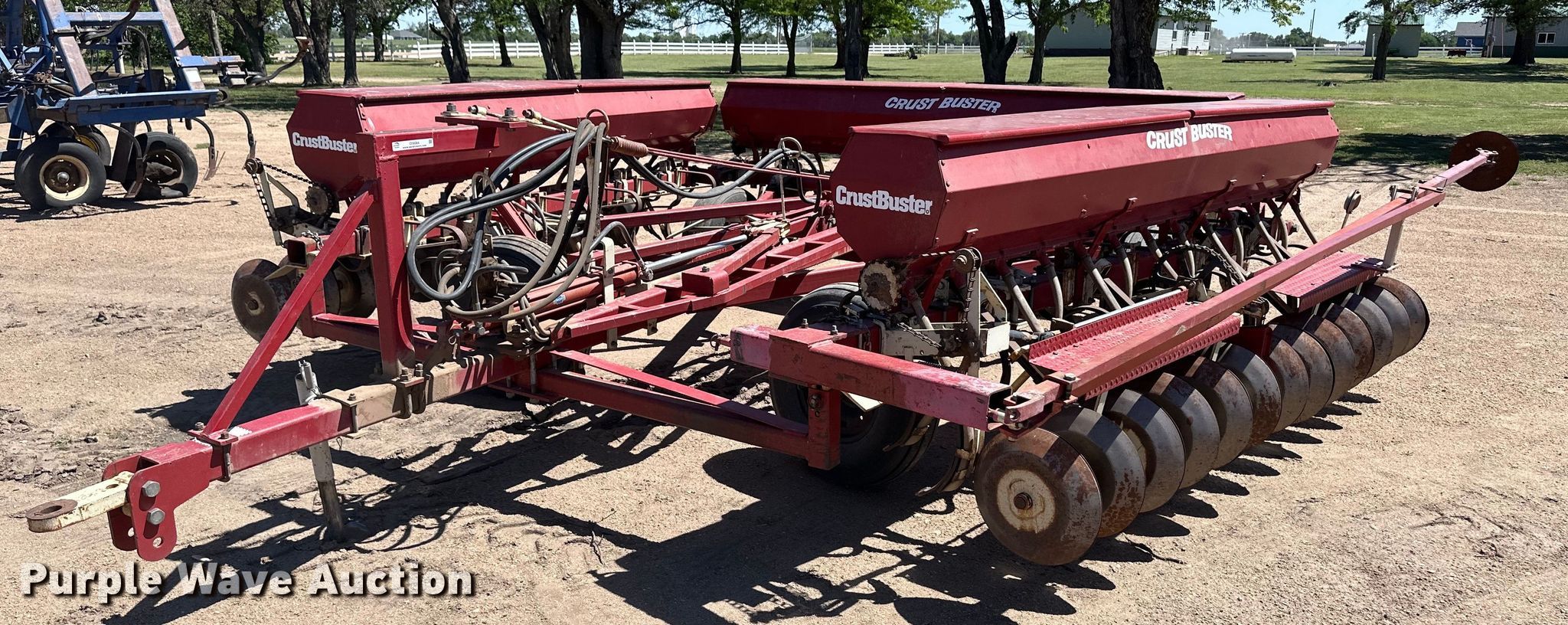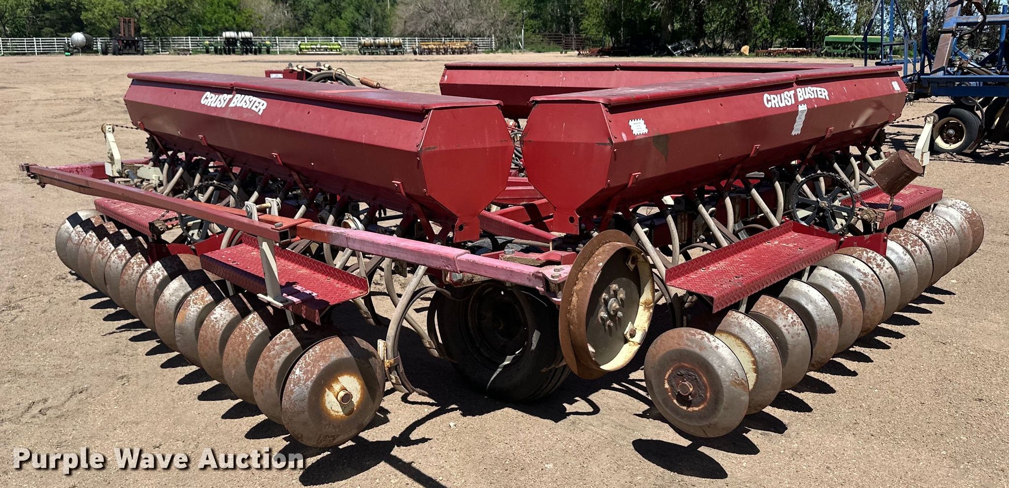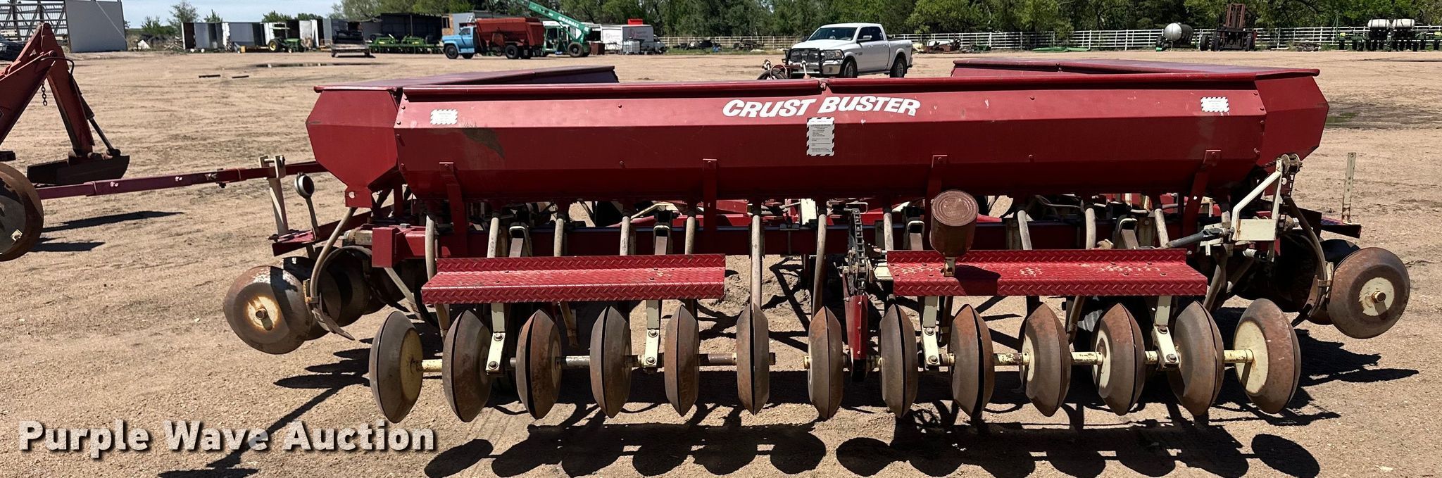 Purple Wave is selling a used Grain Drill or Seeder in Kansas. This item is a CrustBuster hoe drill with the following: Width: 32.5', Row units: 39, Row spacing: 10"