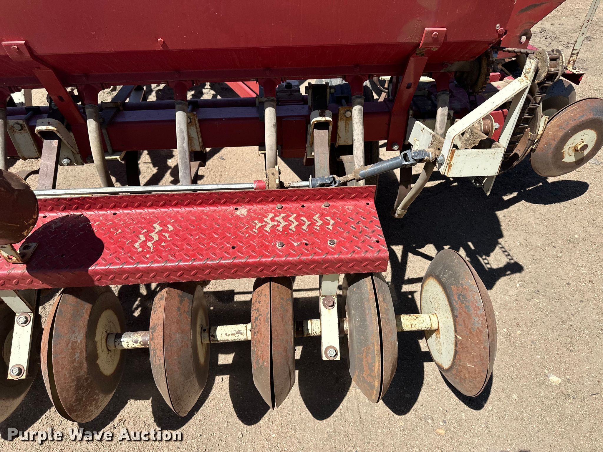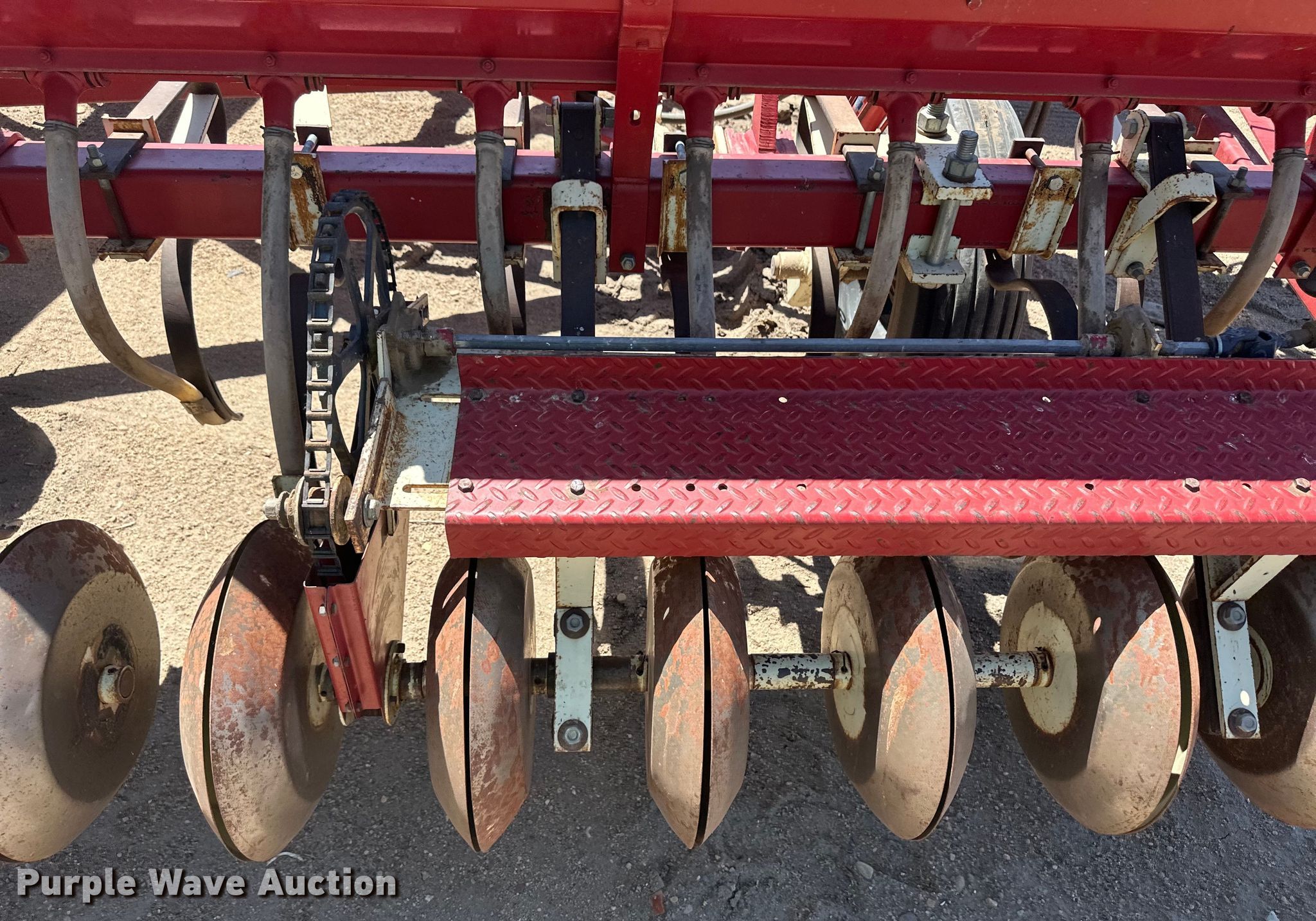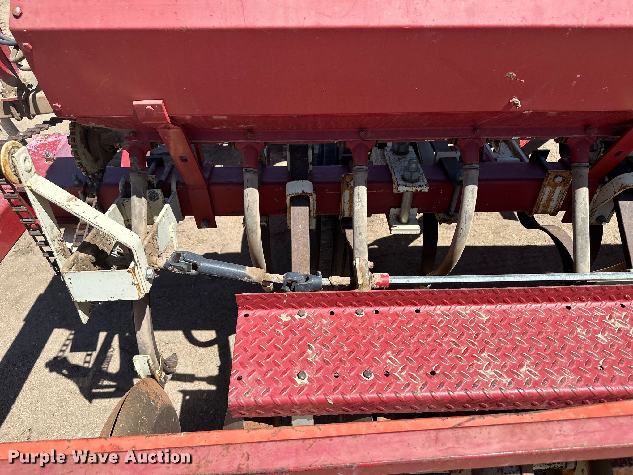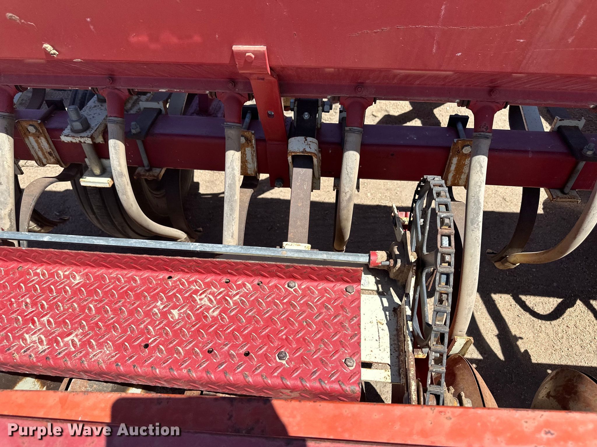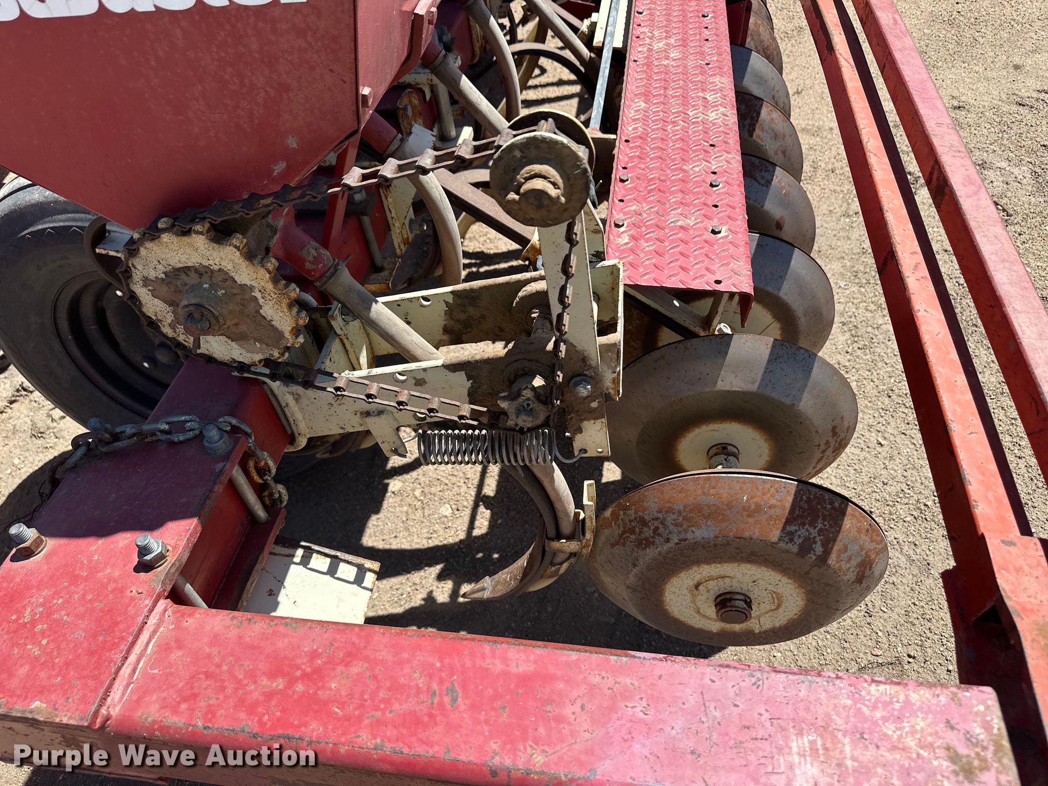 CrustBuster hoe drill. Width: 32.5', Row units: 39, Row spacing: 10". Features Frame Marker arm, Front fold, Seed delivery Bulk fill system, Row units Meter drive: Ground, Down pressure: Spring, Closing system: Single Type: Steel packer wheel.. Tires Transport tire size: 9.5L-15 Quantity: 4. Kinsley, KS 67547