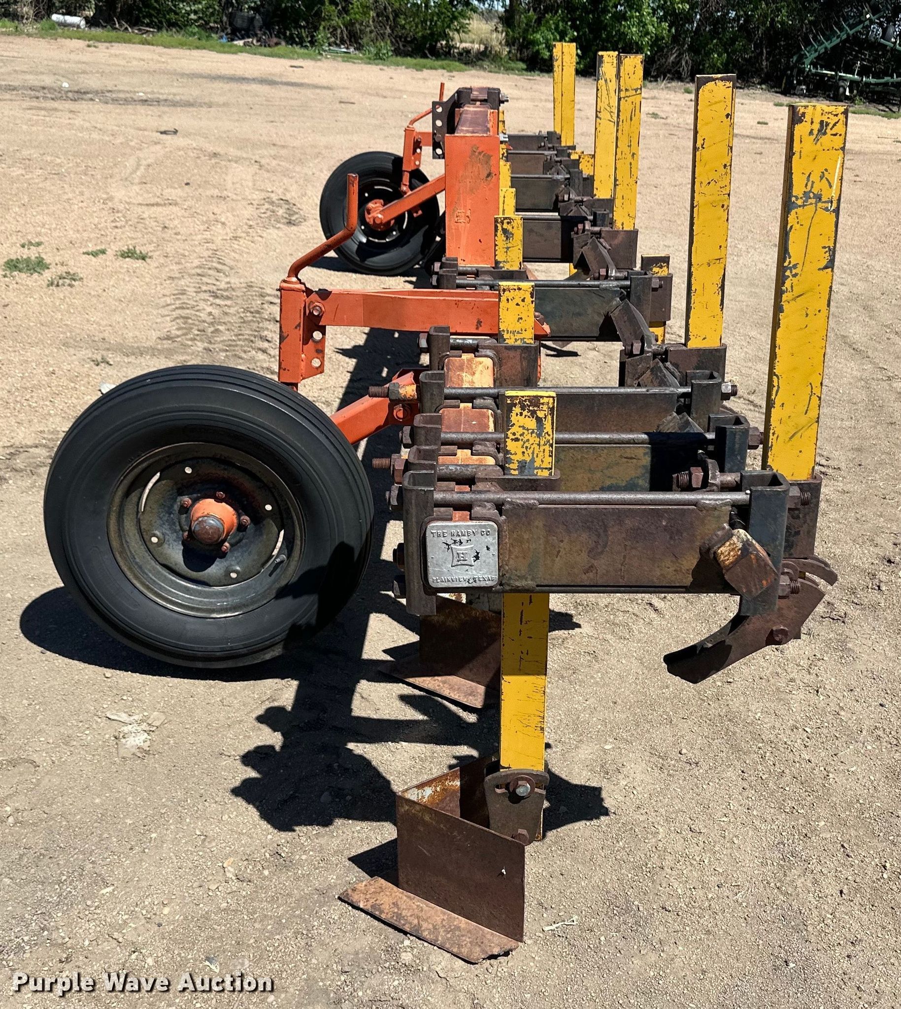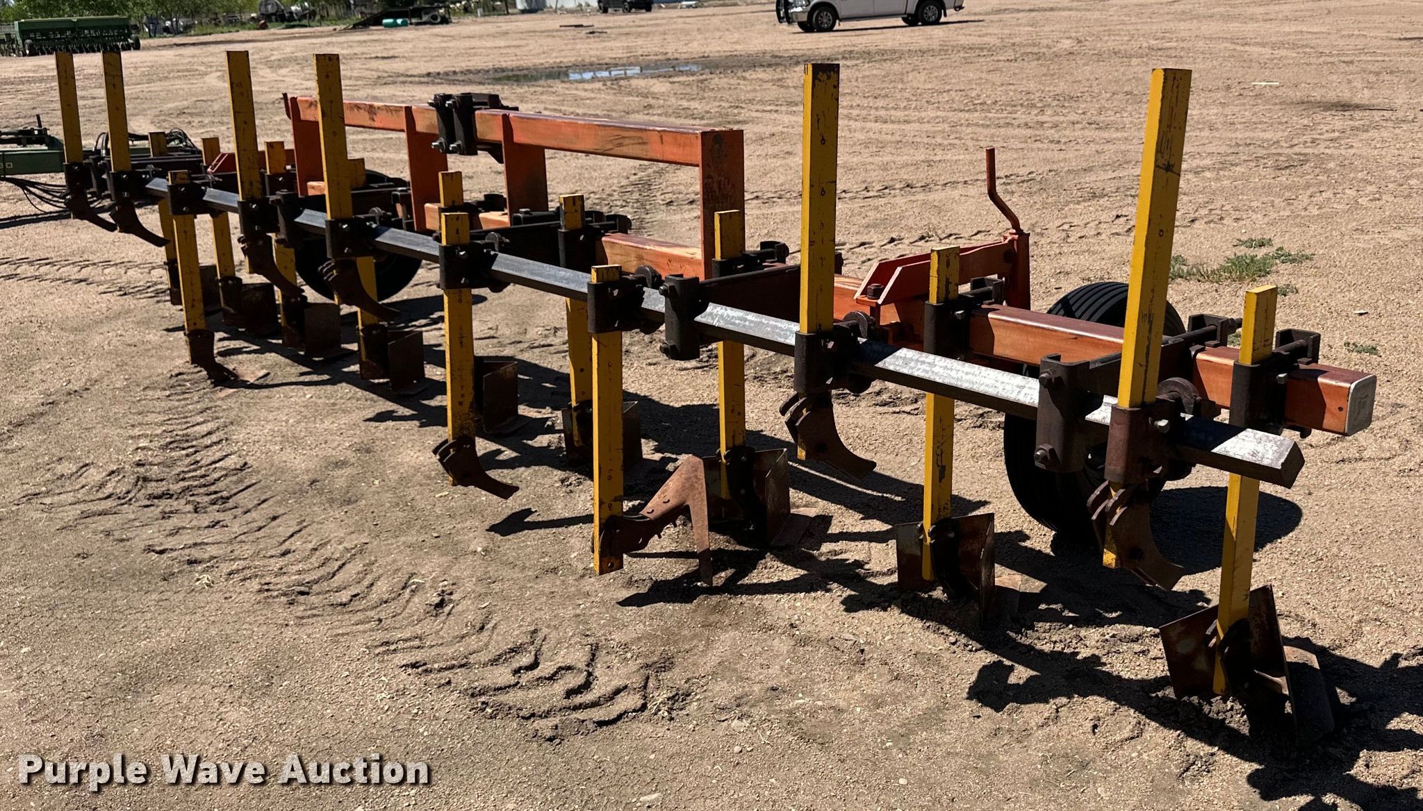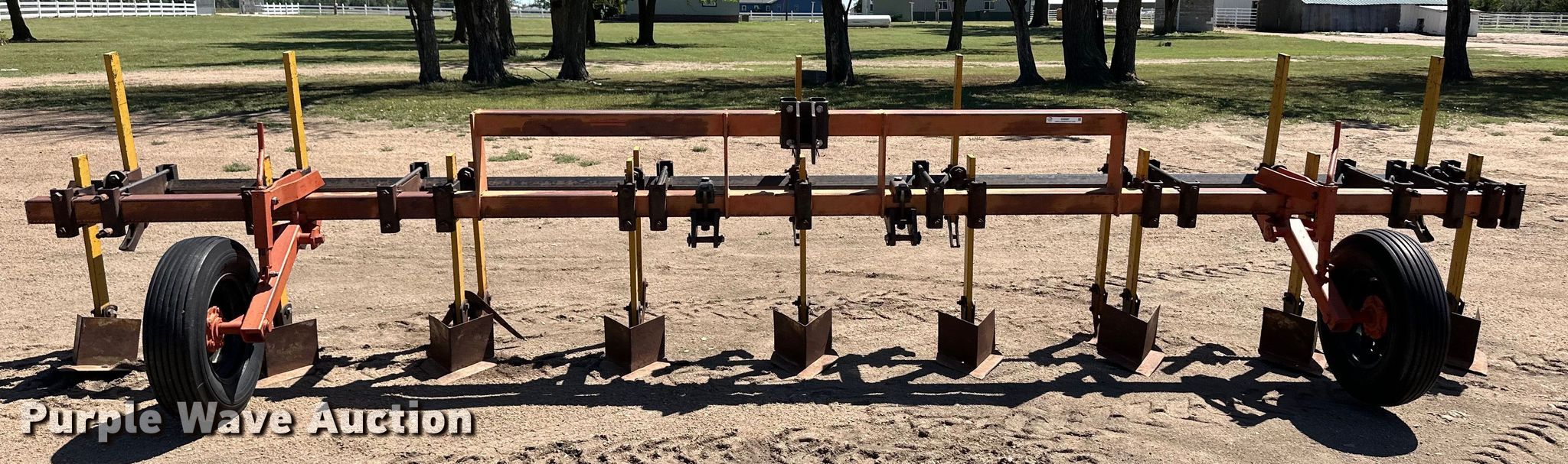 Row crop cultivator. Overall width: 20'. Features Number of rows: 9, Row spacing: 30", Shanks, Hitch: Three point. Tires Size: 7.60-15SL. Kinsley, KS 67547
