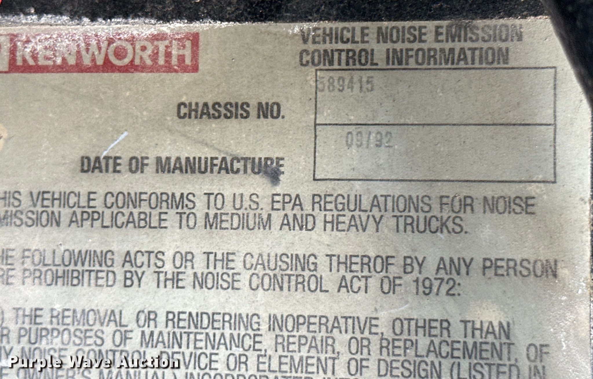 Purple Wave is selling a used Truck Chassis in Texas. This item is a 1993 Kenworth W900 truck cab and chassis with the following: Miles: 149,992 on odometer, VIN: 1XKWD69X6PS589415