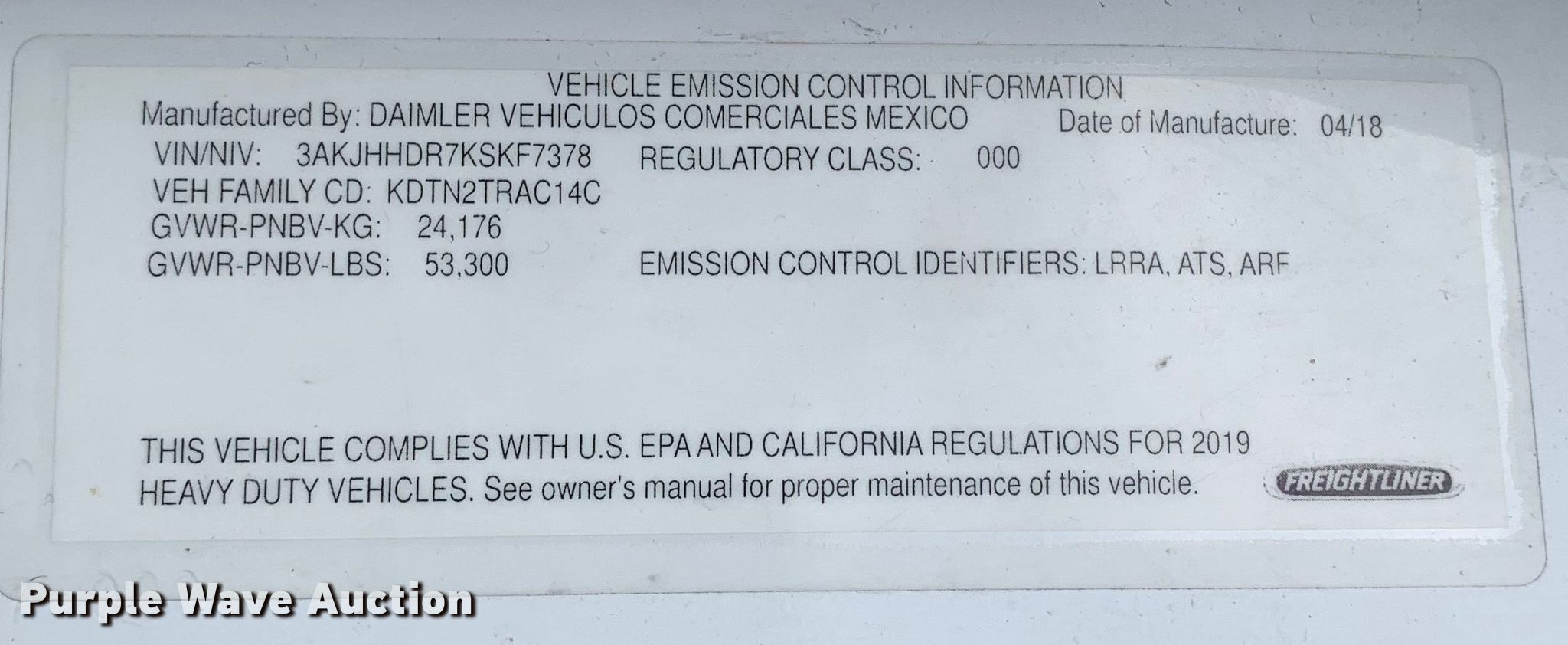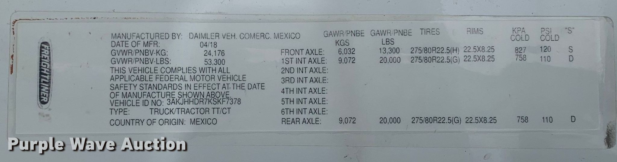 - VIN: 3AKJHHDR7KSKF7378