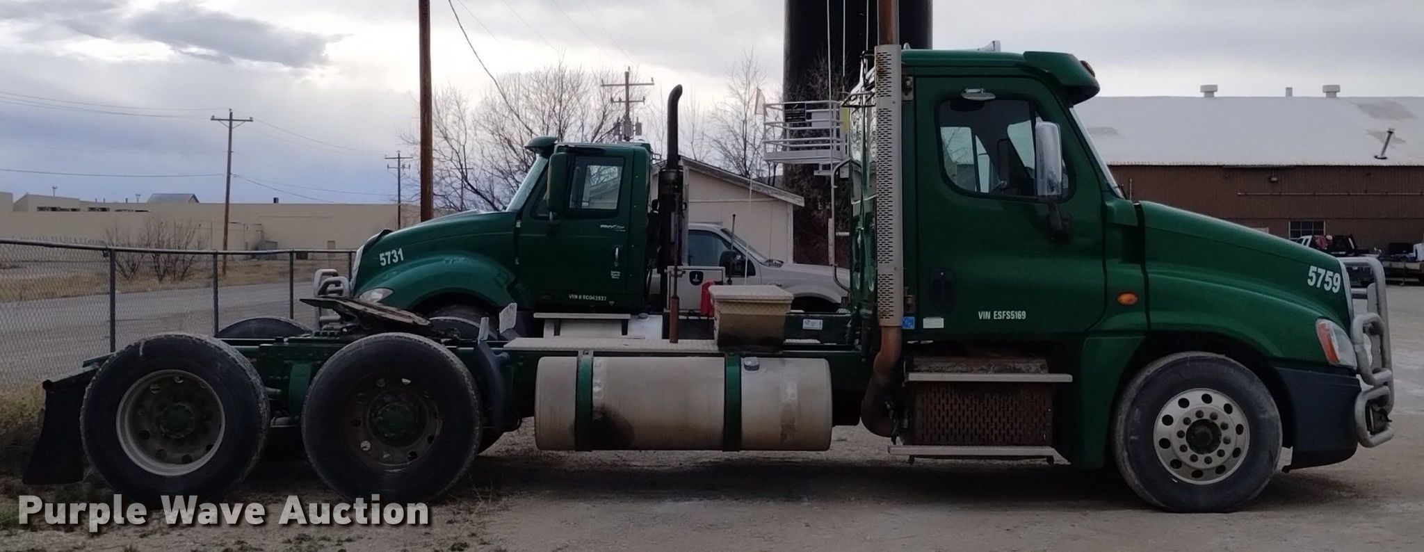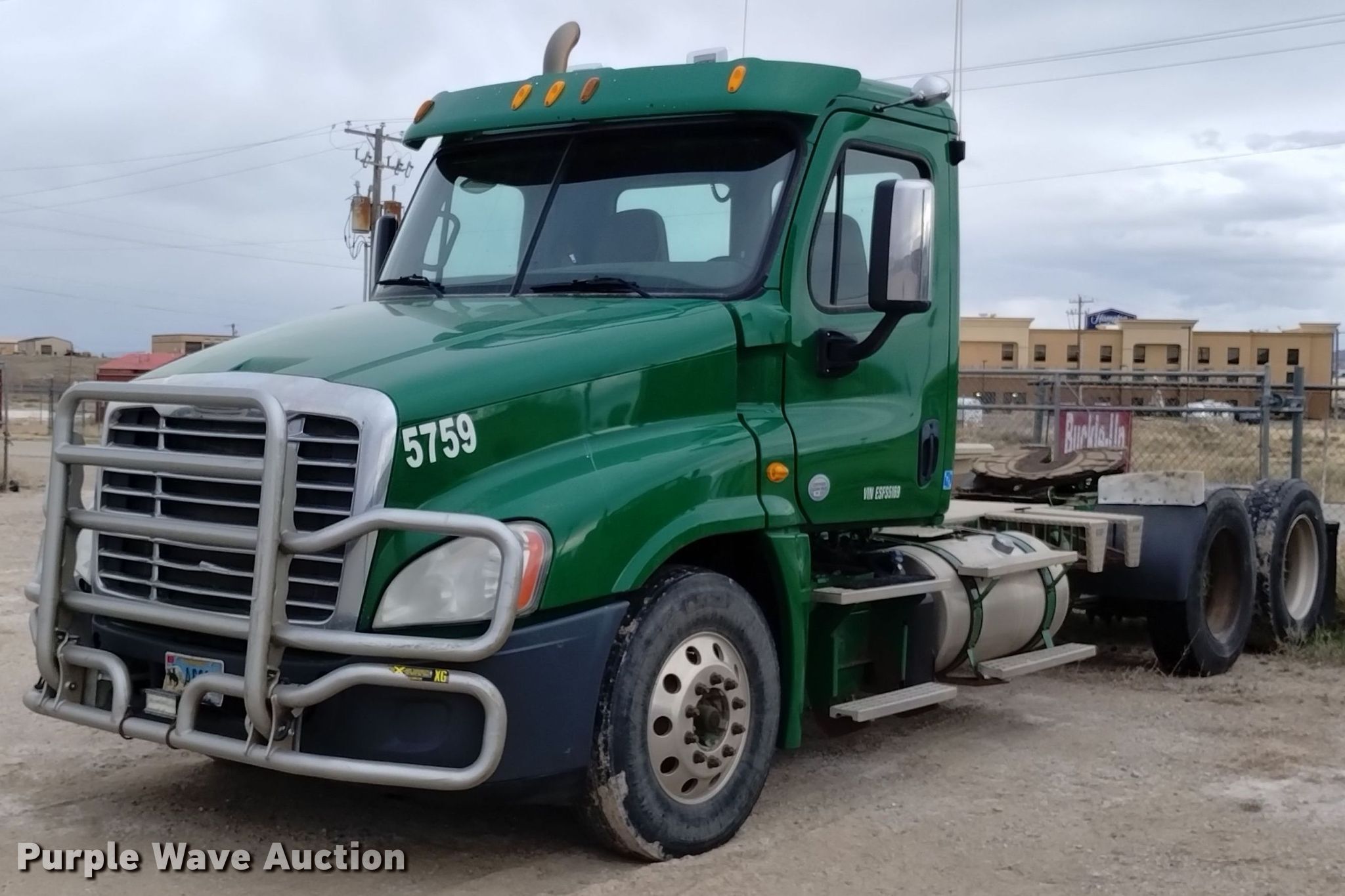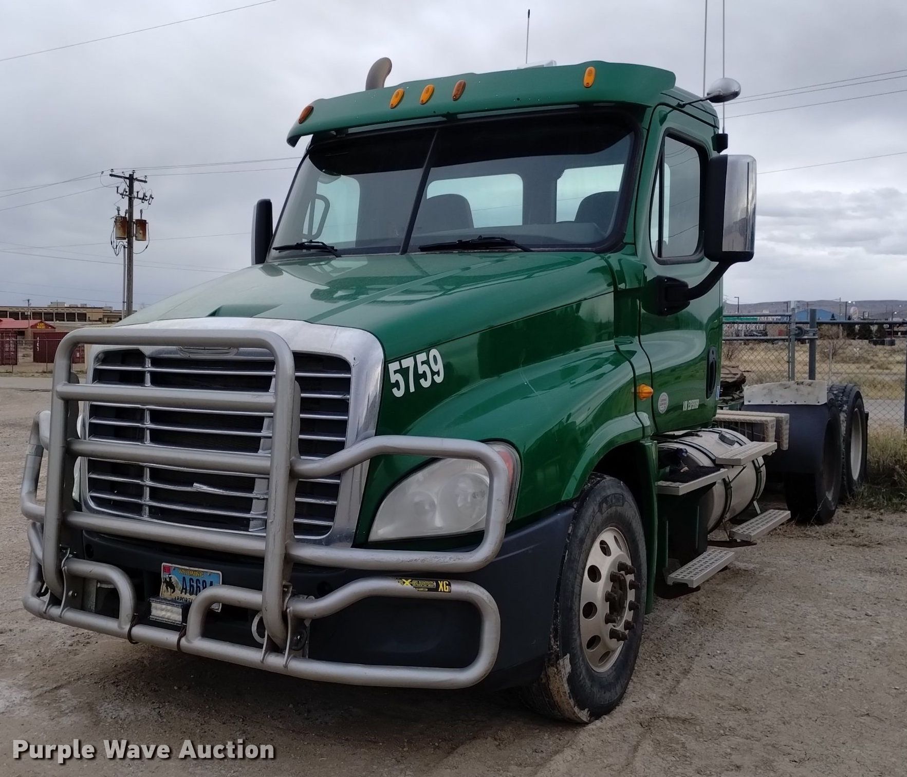 Purple Wave is selling a used Truck Tractor in Wyoming. This item is a 2014 Freightliner Cascadia semi truck with the following: Miles: 907,287 on odometer, Hours: 56,894 on meter, VIN: 3AKJGED69ESFS5169, Unit #: 5759