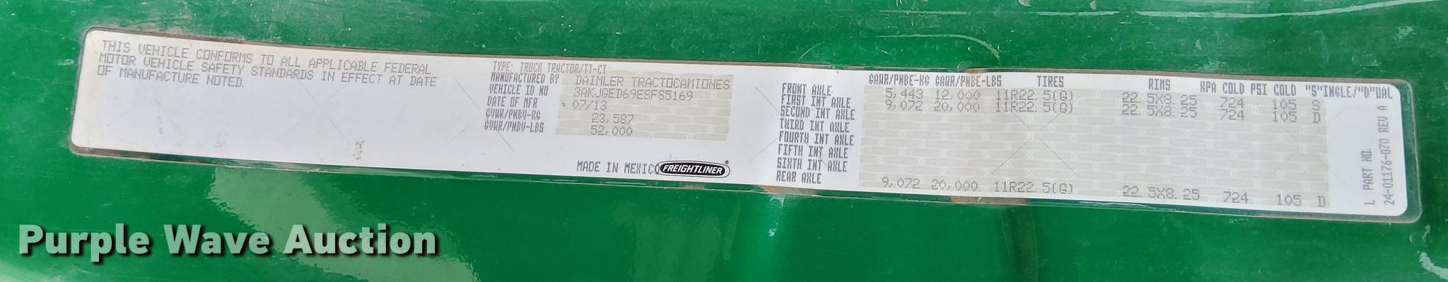 - VIN: 3AKJGED69ESFS5169