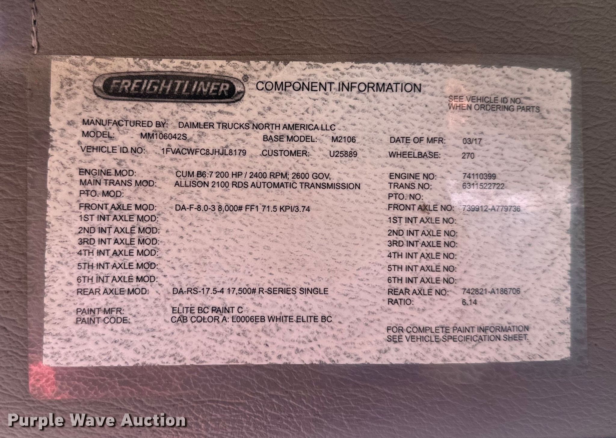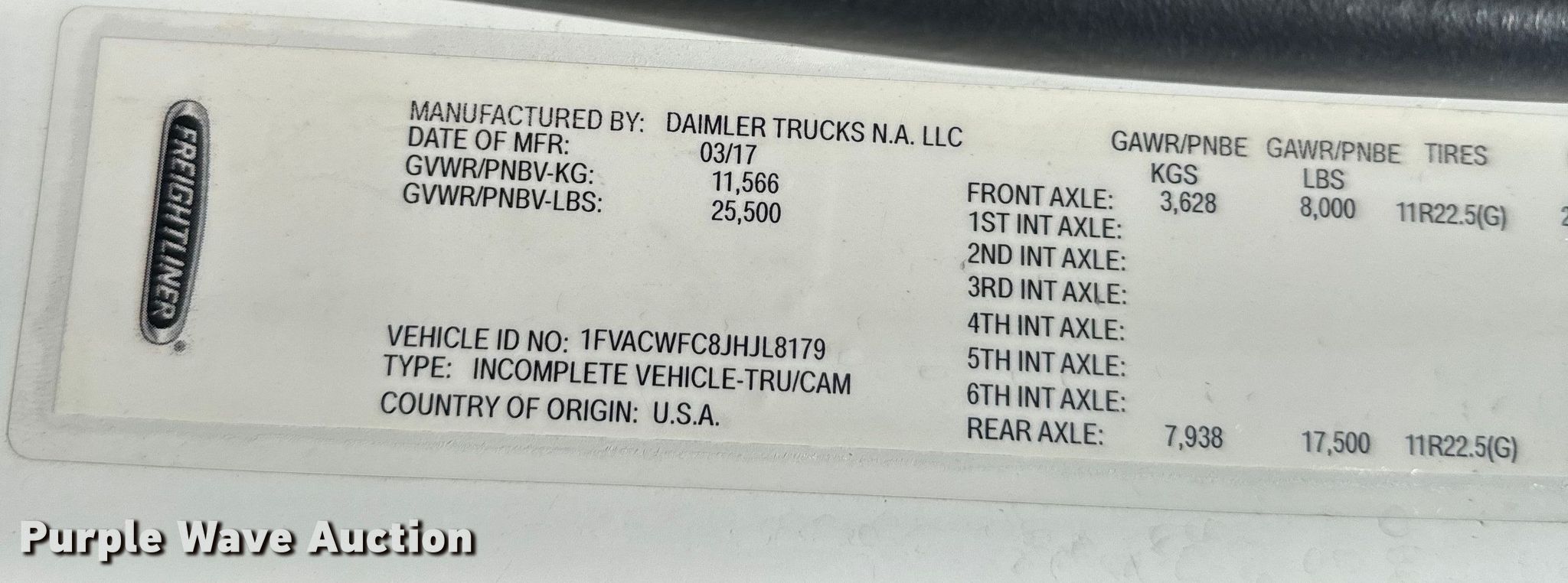 - VIN: 1FVACWFC8JHJL8179