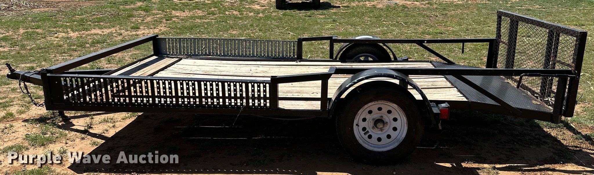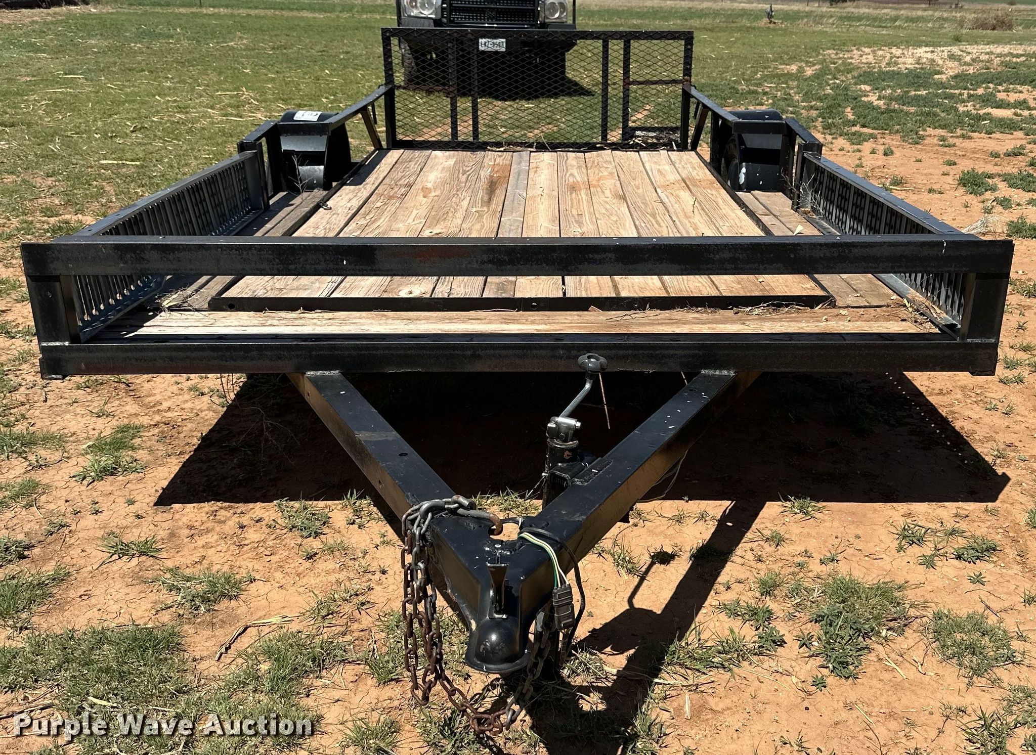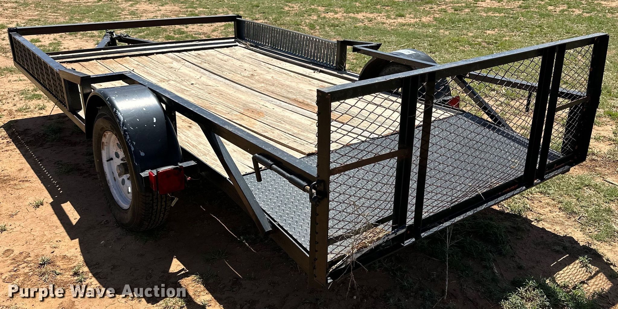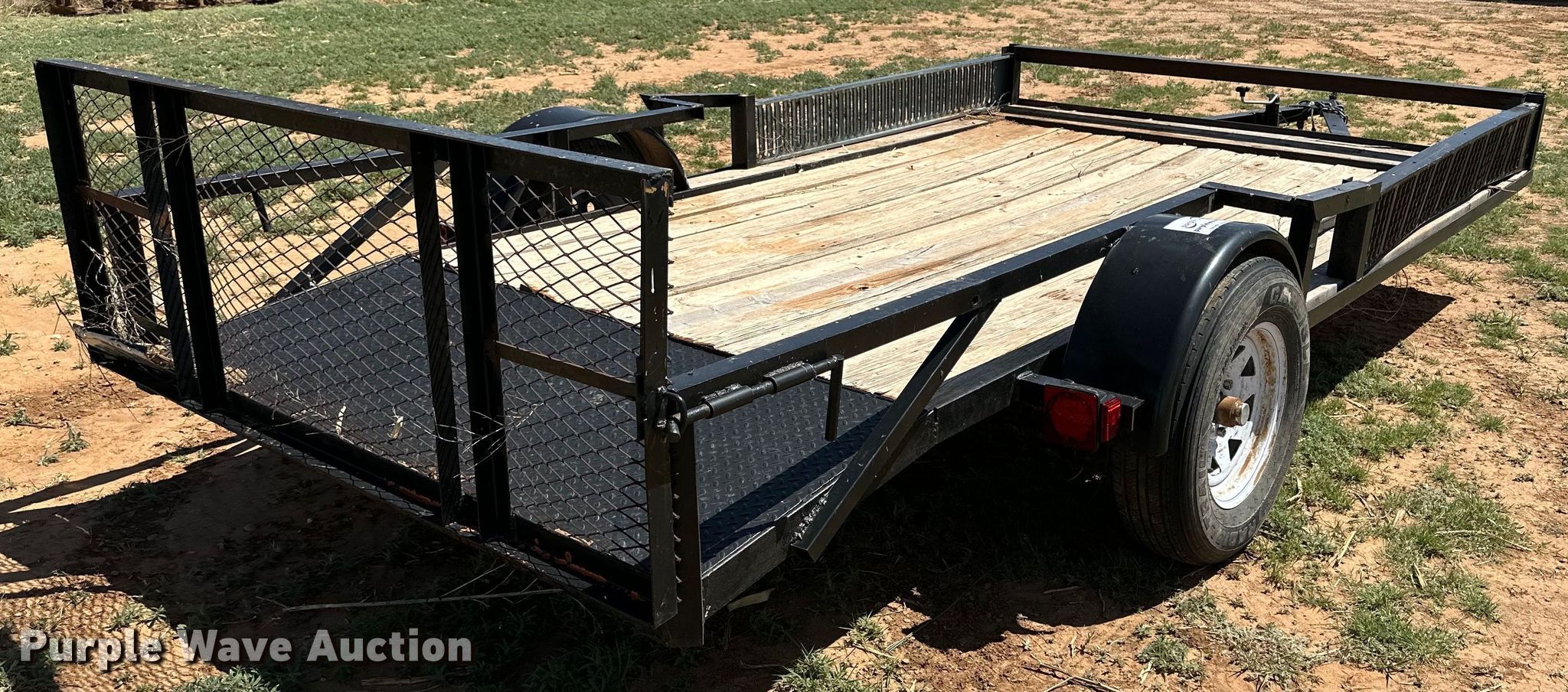 Purple Wave is selling a used Car or Utility Trailer in Texas. This item is a Shop built utility trailer with the following: Overall: 18' L x 88" W, Deck: 13' 6" L x 88" W, Tail length: 2' 6", Ramps: Manual, Length: 2'