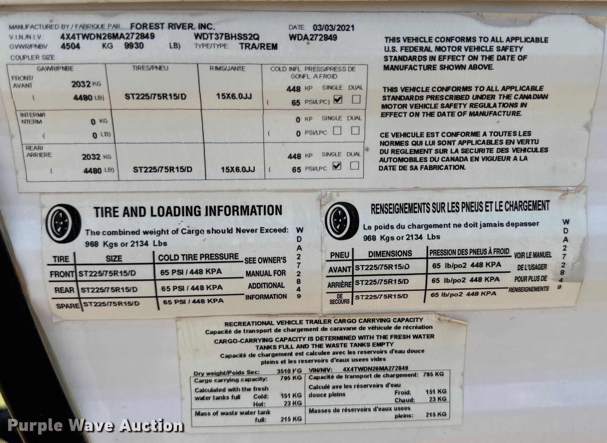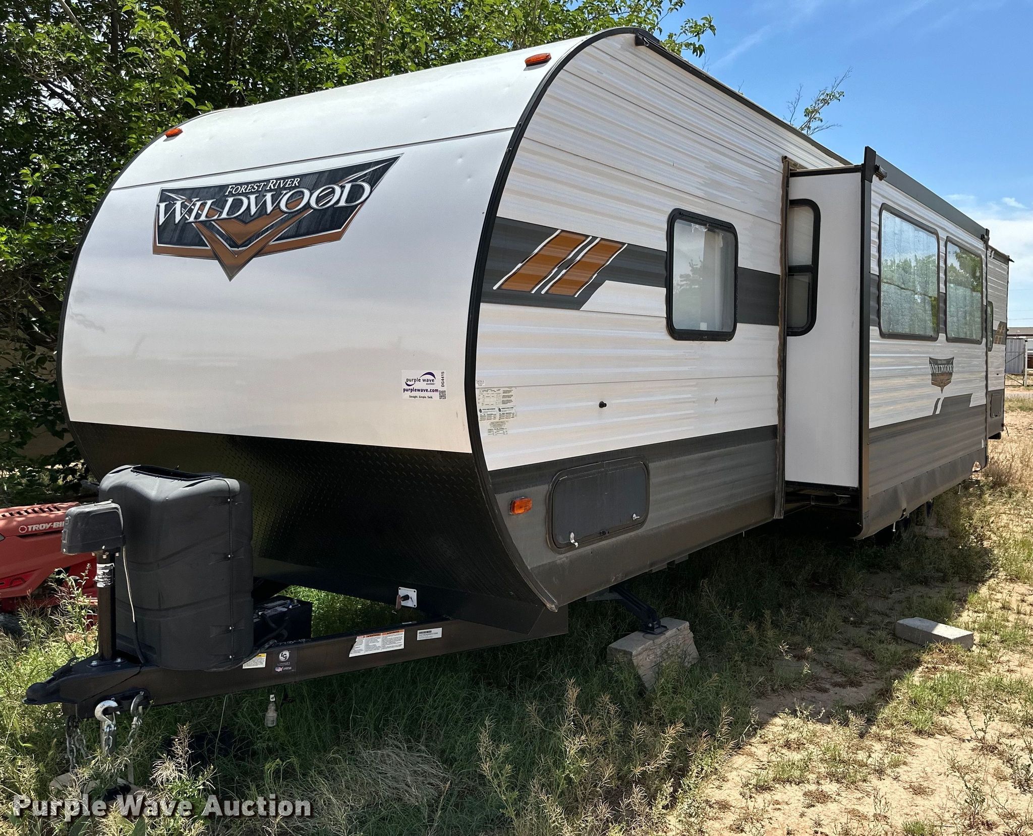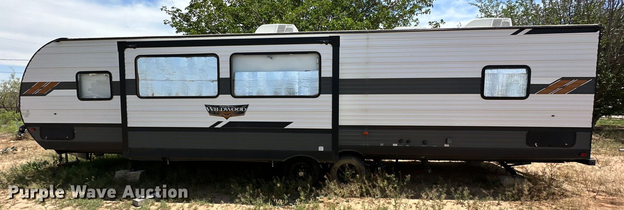 Purple Wave is selling a used RV or Camper in Texas. This item is a 2021 Forrest River Wildwood camper with the following: Camper length: 38', VIN: 4X4TWDN26MA272849
