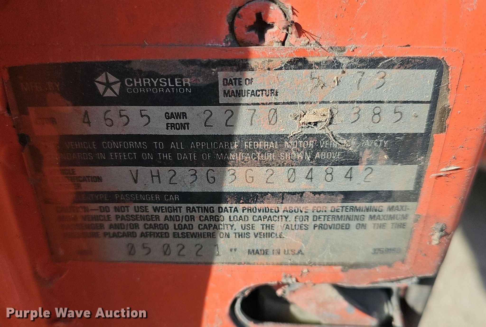 1973 Plymouth Scamp 2D. Miles: 56,087 on odometer, Miles: Unknown, VIN: VH23G3G204842. Engine Cylinders: 8, Fuel type: Gas. Transmission Automatic. Interior Heat. Tires Size: 195/70R14. Notes Battery missing, Unknown operating condition. Kansas antique title. Title distribution may be delayed up to 14 days from verification of funds. Manhattan, KS 66502