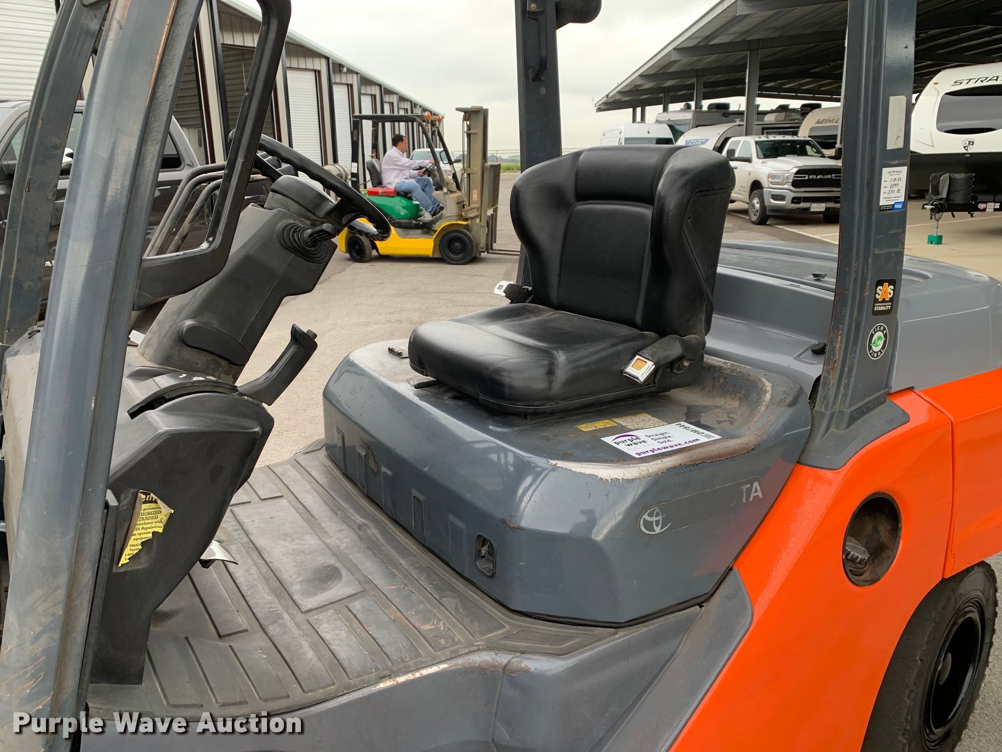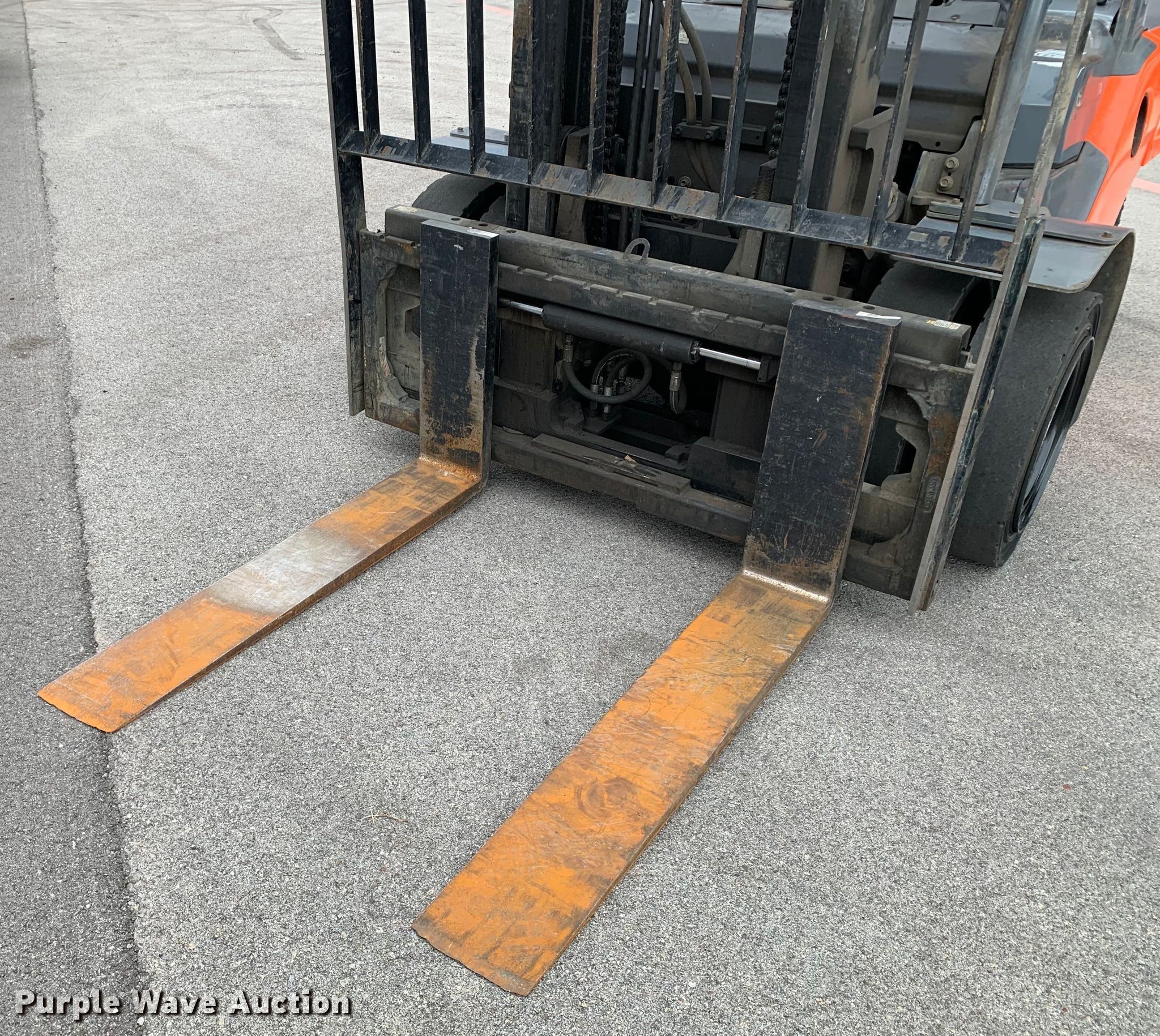 Purple Wave is selling a used Warehouse Forklift in Texas. This item is a Toyota 8FD35U forklift with the following: Hours: 9,093 on meter, Serial: 10571