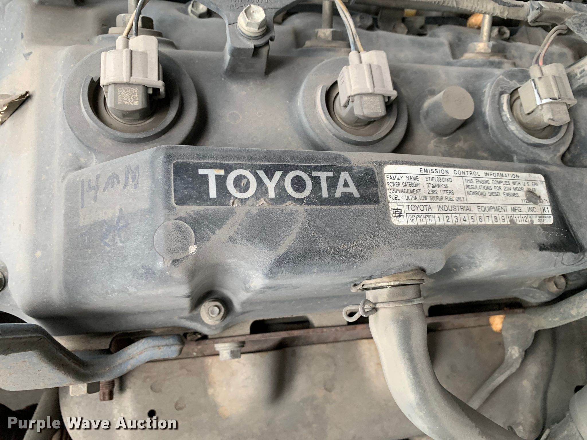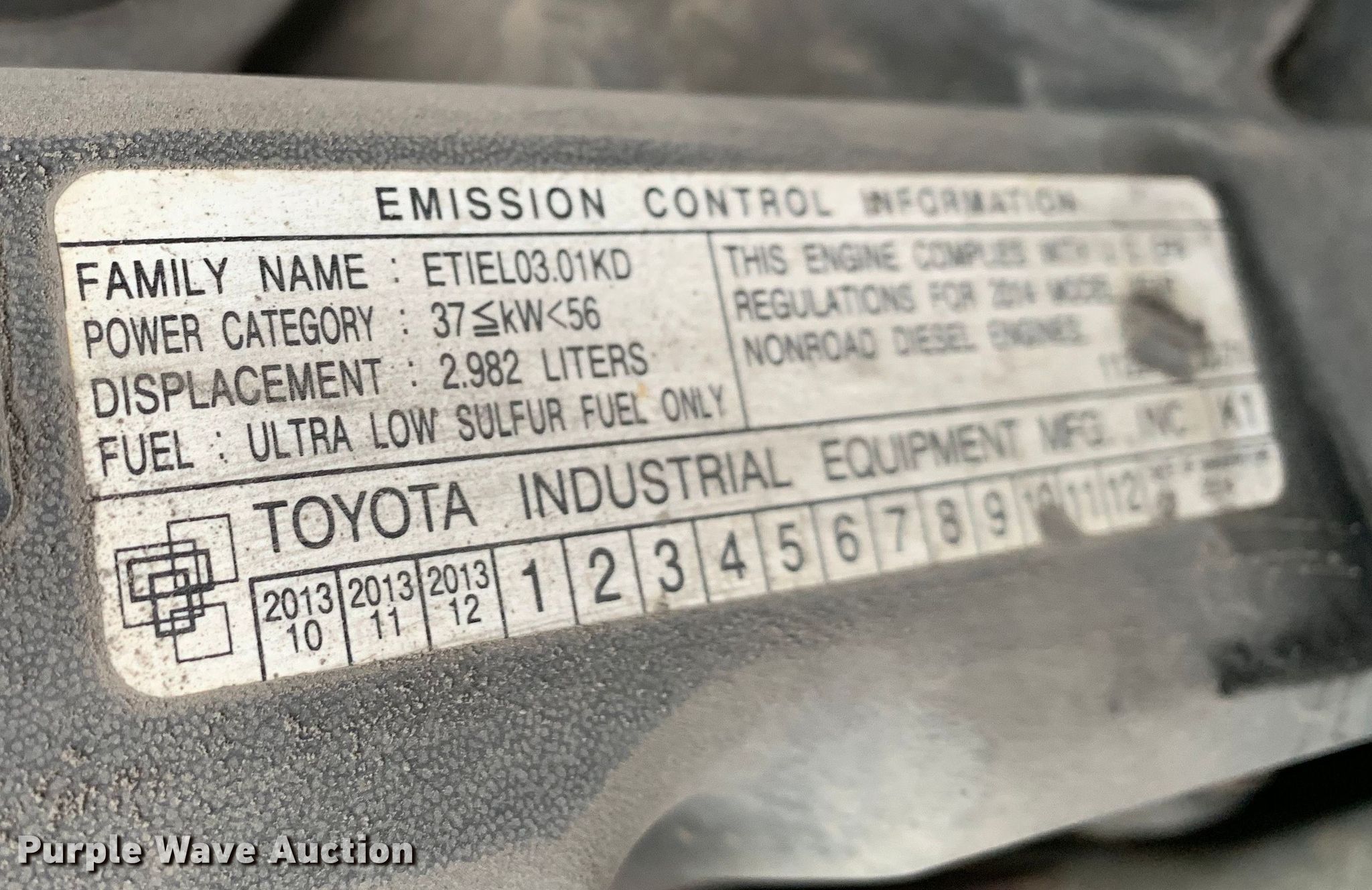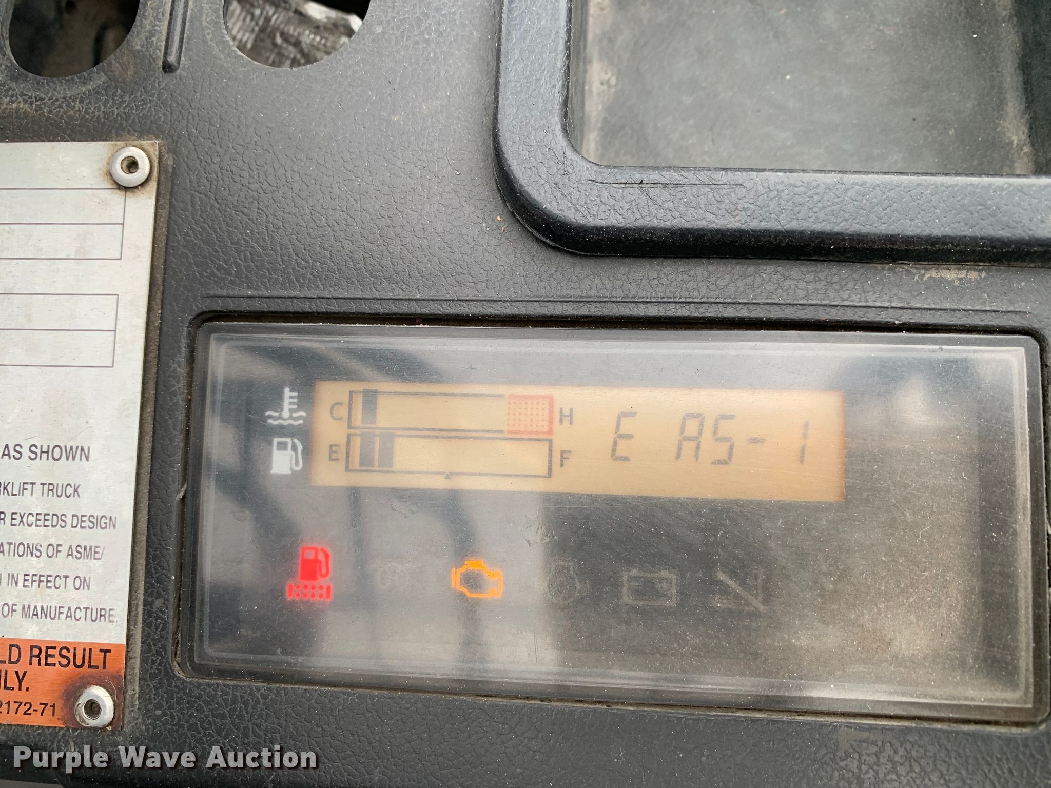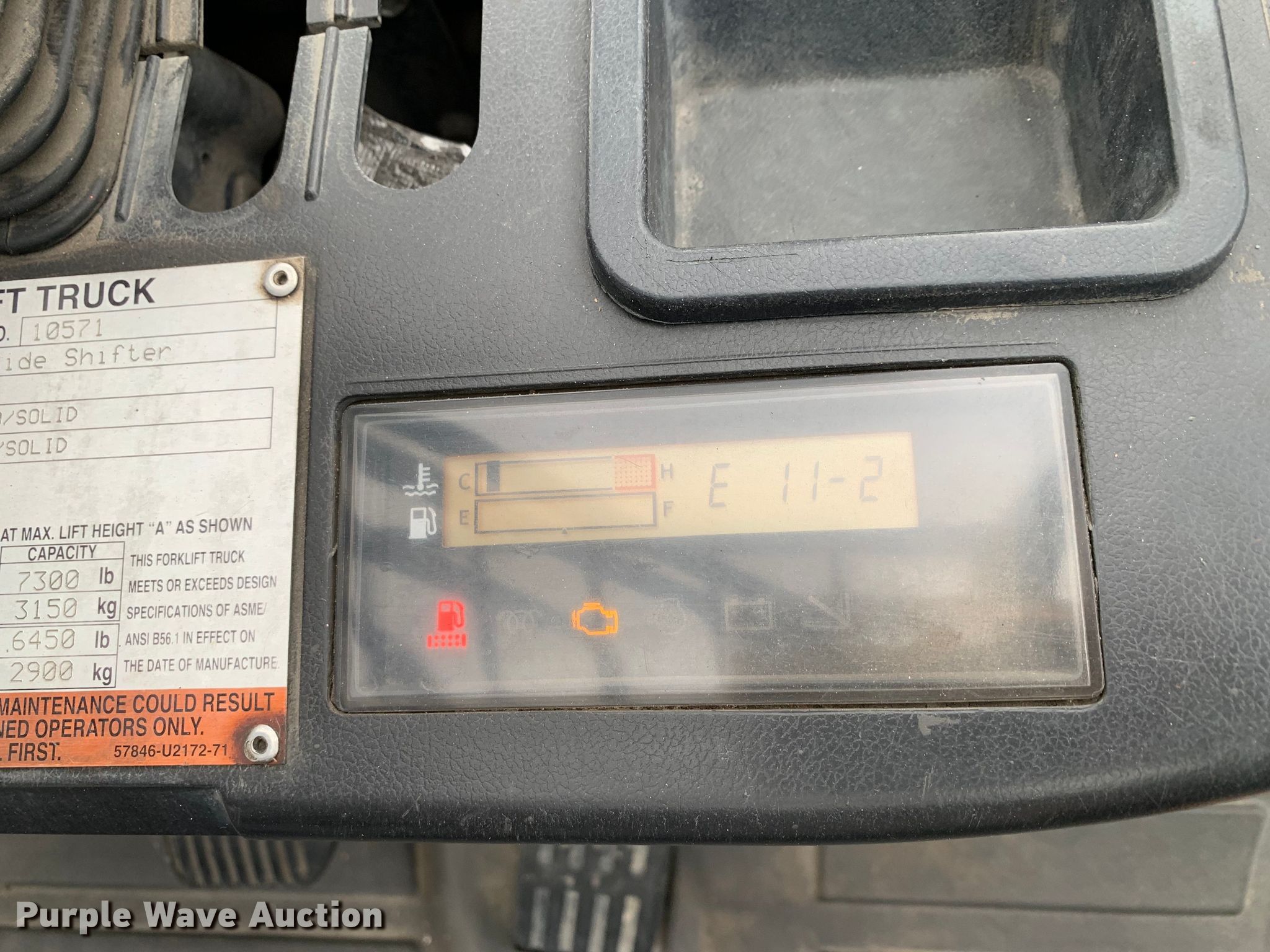 Toyota 8FD35U forklift. Hours: 9,093 on meter, Serial: 10571. Engine Toyota, Displacement: 2.982L, Cylinders: 4, Fuel type: Diesel. Transmission Powershift. Operators station OROPS. Features Maximum lift capacity: 7,300 lbs, Maximum lift height: 159.5", Mast stages: 2, Side shift, Mast tilt, Fork length: 48". Tires Front: 7.00-15, Rear: 7.00-12, Solid. Notes Dash warning indicator: Check engine Engine code: E 11-2, E A5-1. Haslet, TX 76052