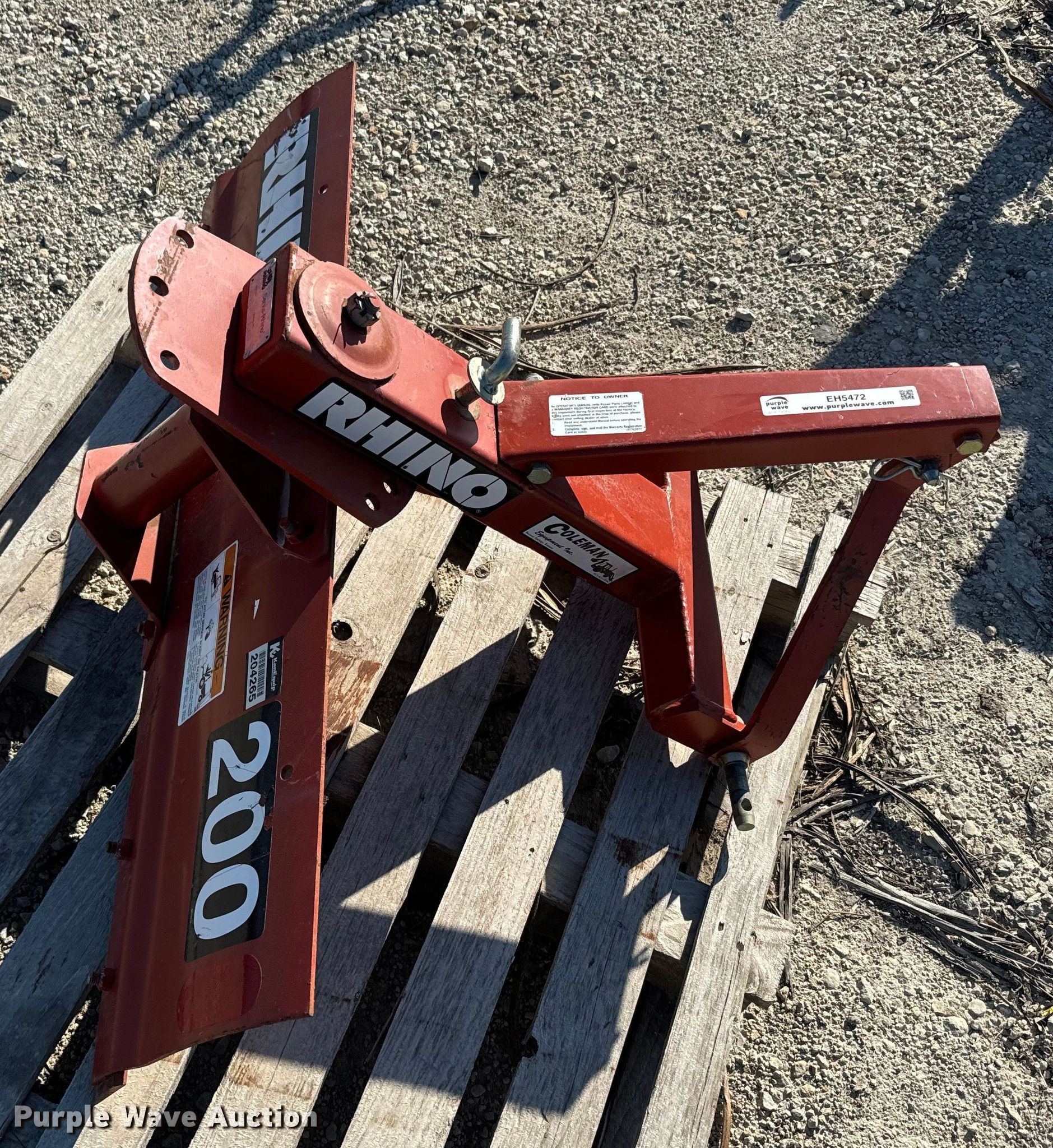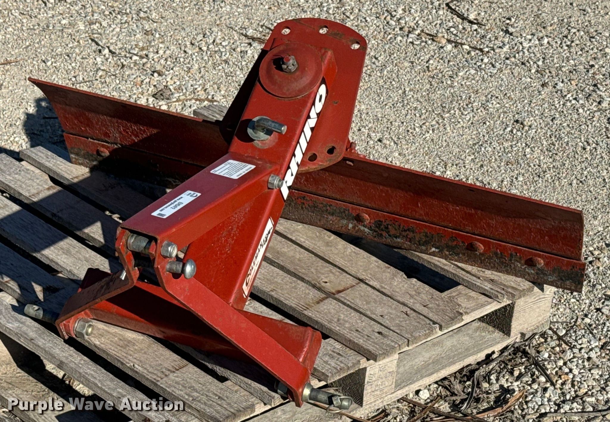 Purple Wave is selling a used Ag Equip. Other in Kansas. This item is a Rhino R200 blade with the following: Width: 48", Hitch: Three point, Adjustable angle